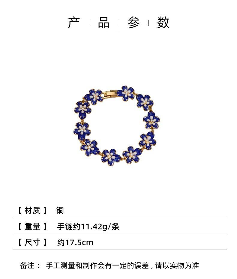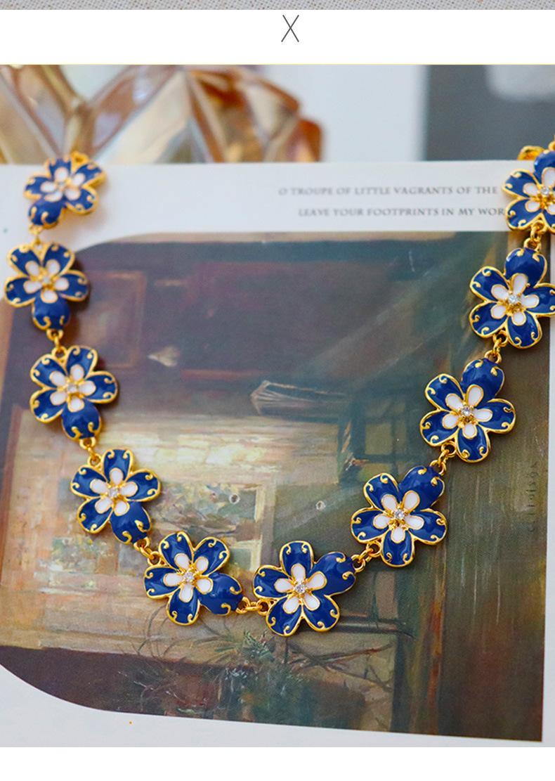 Pulsera de Flores Azules Retro de Moda Personalizada de Lujo Ligero Europeo y Americano para Mujer, Versátil, de Alta Gama, Simple, Nicho