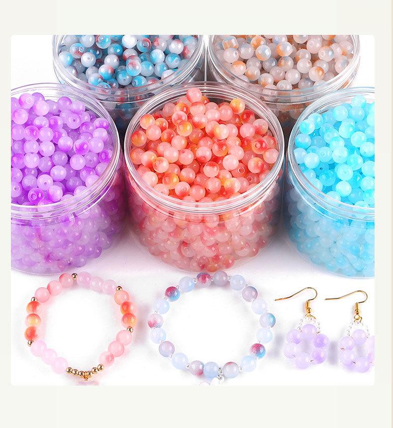 Pulsera de cuentas de vidrio de 8 mm, cuentas sueltas, material artesanal, lindas cuentas de vidrio frescas y dulces, cuentas redondas al por mayor