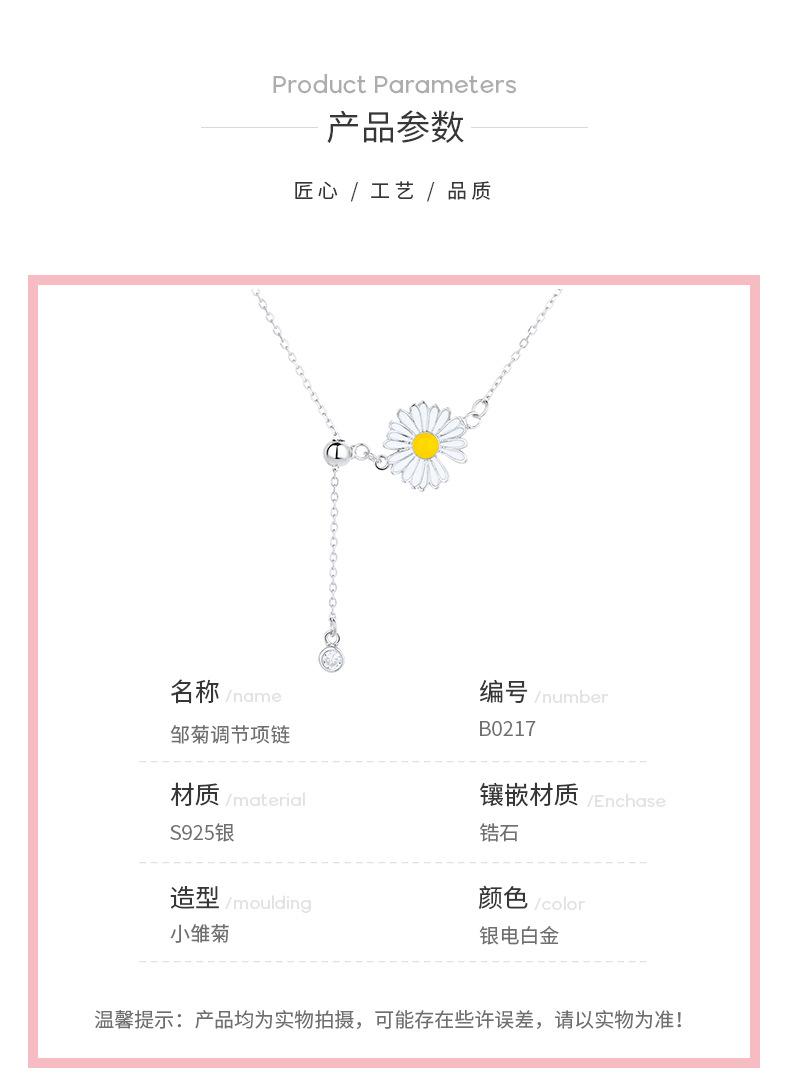 Collar de clavícula de margaritas en plata de ley, recién llegado, joyería elegante que combina con todo, estilo coreano, joyería de estilo ins, colgante de alta gama de moda.