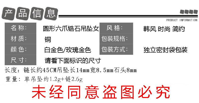 Nuevo collar de diamantes de imitación de estilo coreano con seis garras y un solo diamante, colgante de moda simple para mujer, cadena de clavícula, joyería para mujer