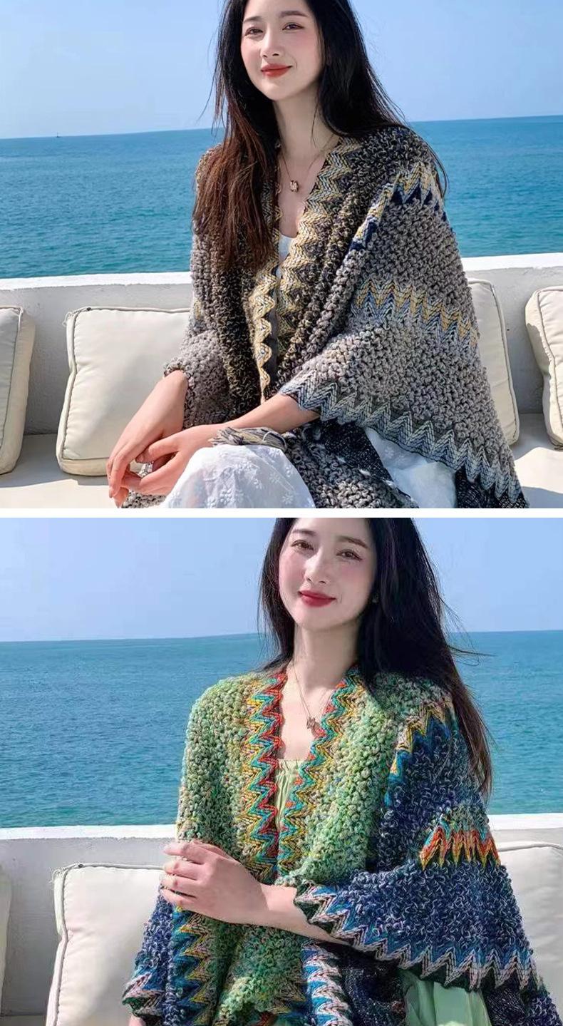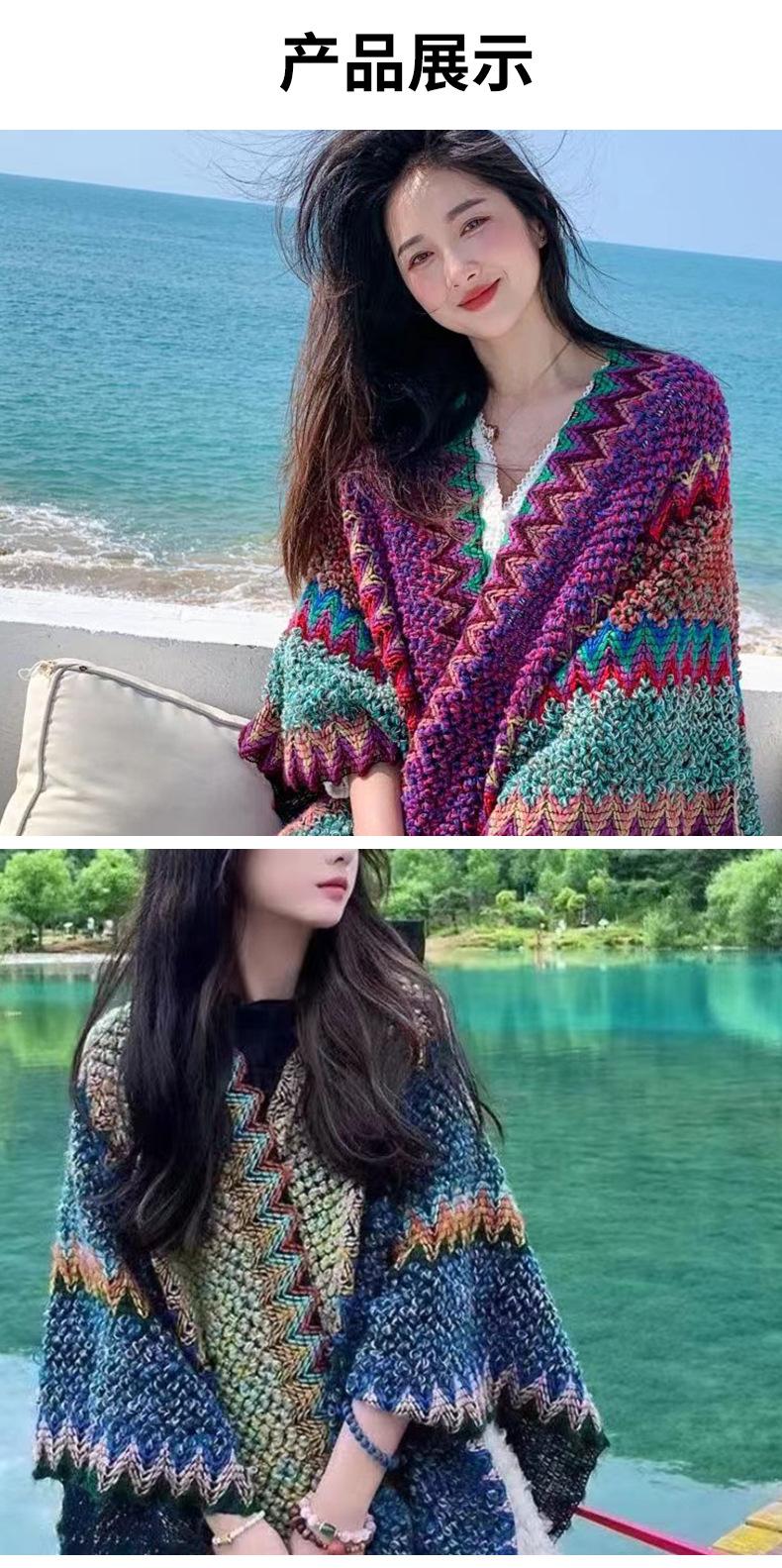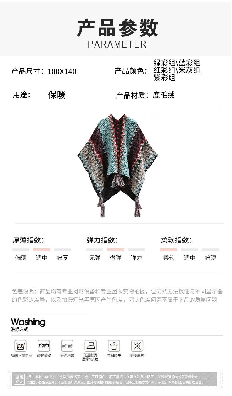 Capa Chal Étnica de Piel de Ciervo para Viaje para Mujer, Capa Tejida Yunnan Lijiang, Ropa Exterior Elegante y Cálida