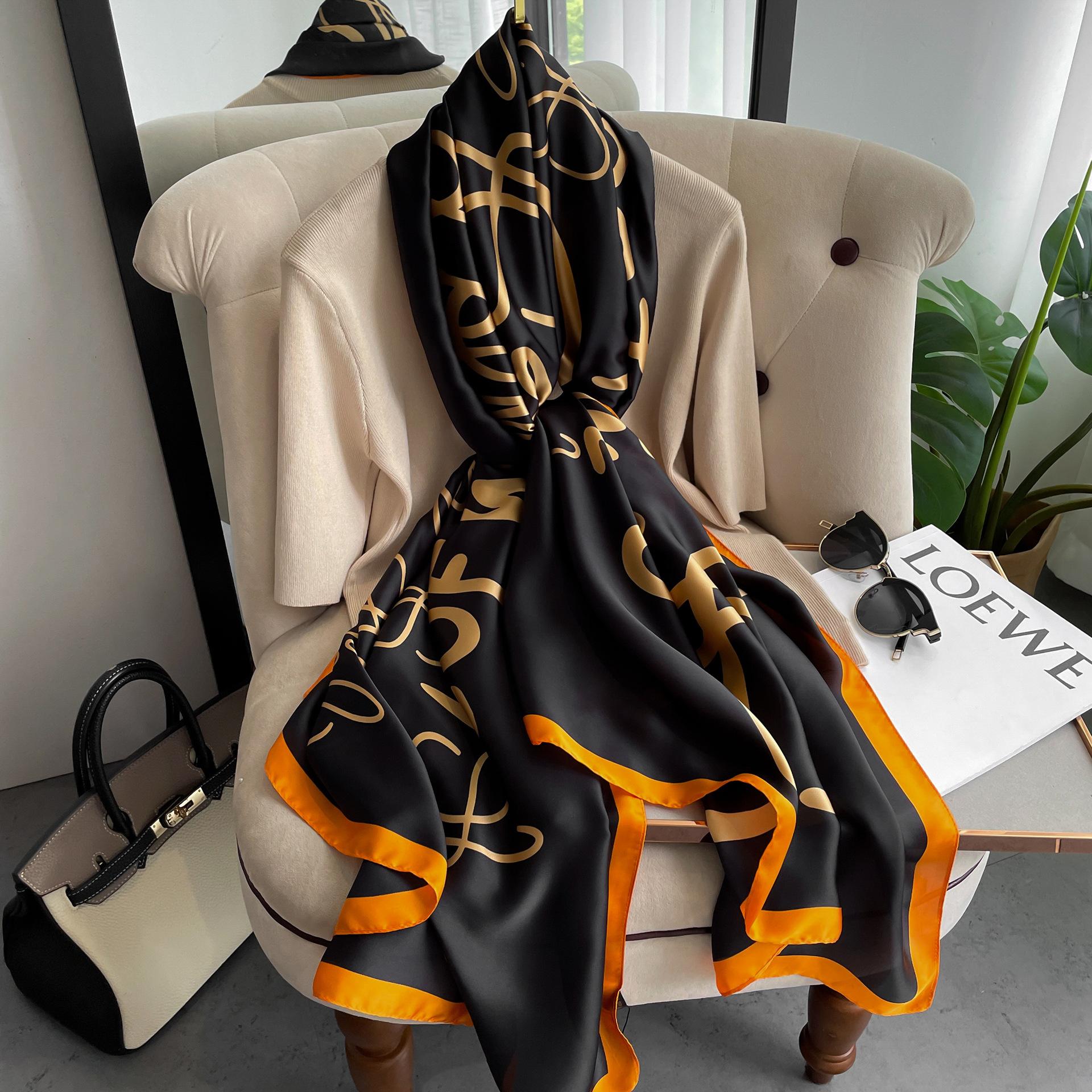 Bufanda de satén de seda nueva y larga con costuras de estilo coreano, chal exterior cálido de seda de imitación, moda para mujer, venta al por mayor