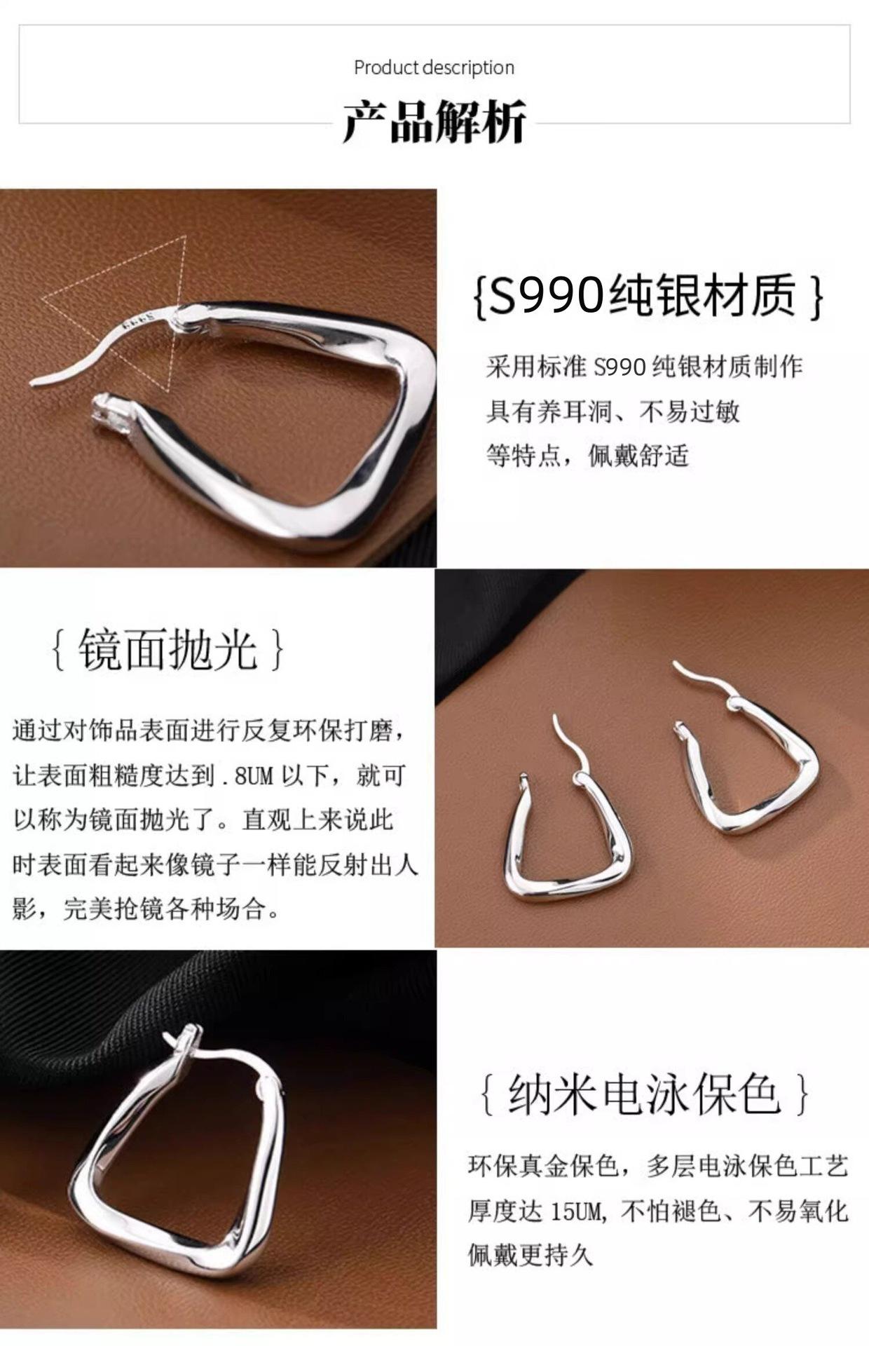 Pendientes de plata de ley 999 con forma de cuadrado francés, ligeros, lujosos y de alta calidad, 2023, nuevos y populares.