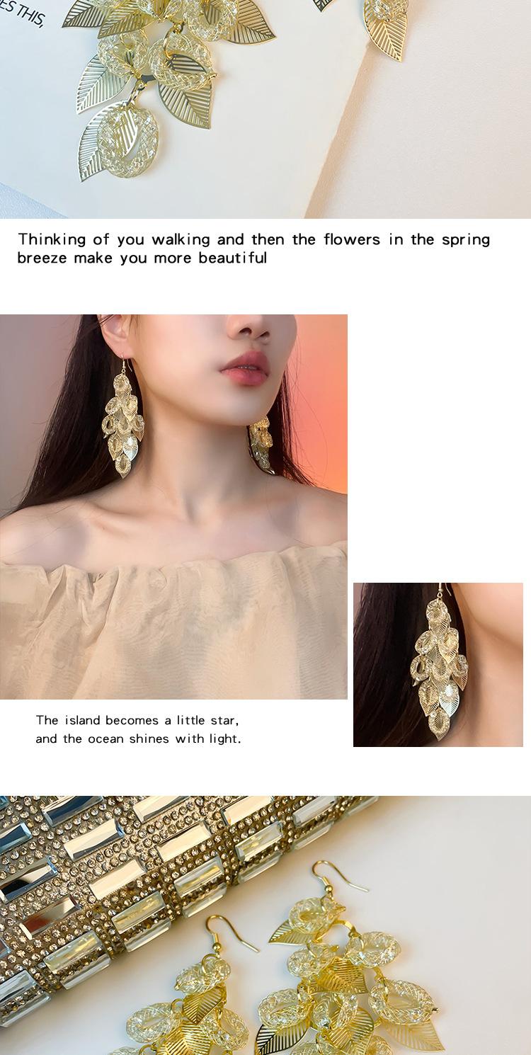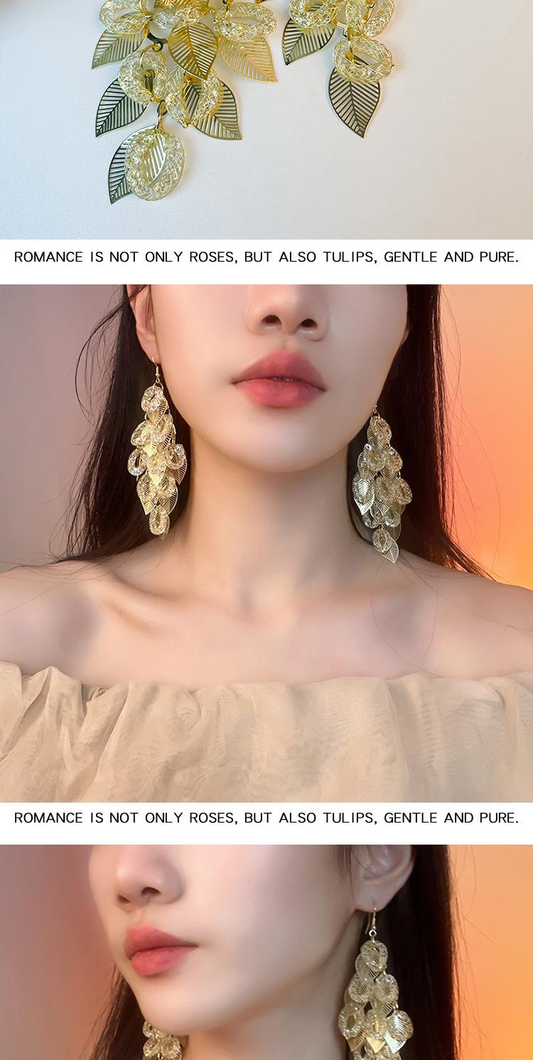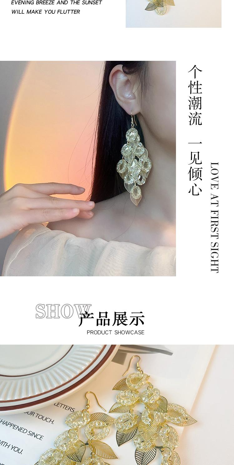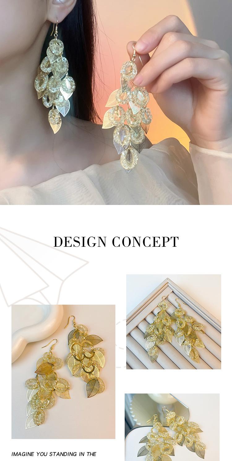 Pendientes de hoja de malla con borlas, estilo retro, de cristal hueco, de metal, con gancho para la oreja, de alta gama, ligeros y de lujo, combinables con todo.