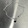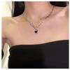 Collar de amor negro con incrustaciones de diamantes para mujer, con alfileres de diamantes completos, estilo retro de lujo ligero y de alta calidad, con costuras en la cadena de clavícula.