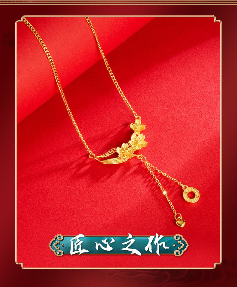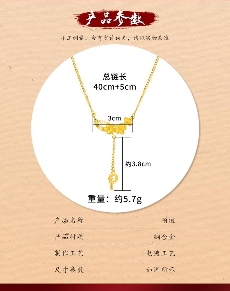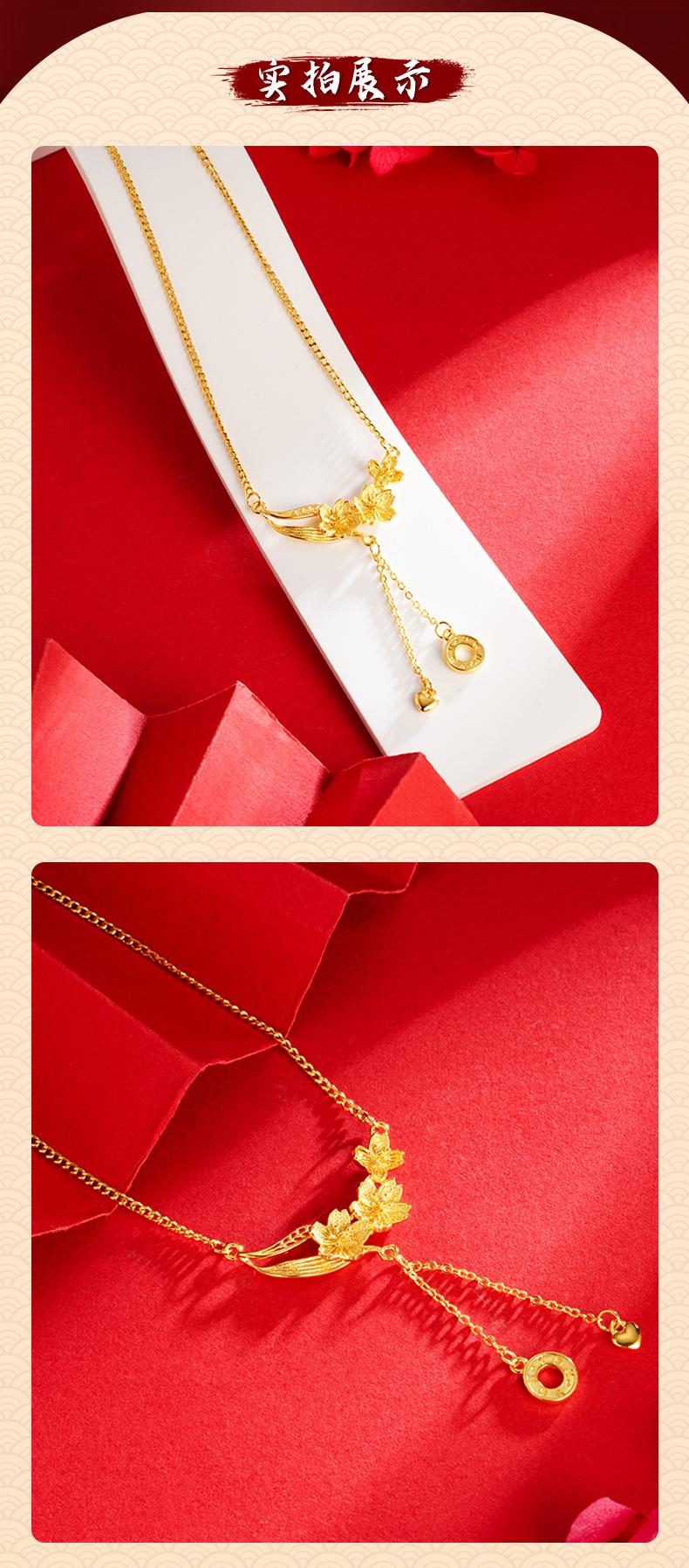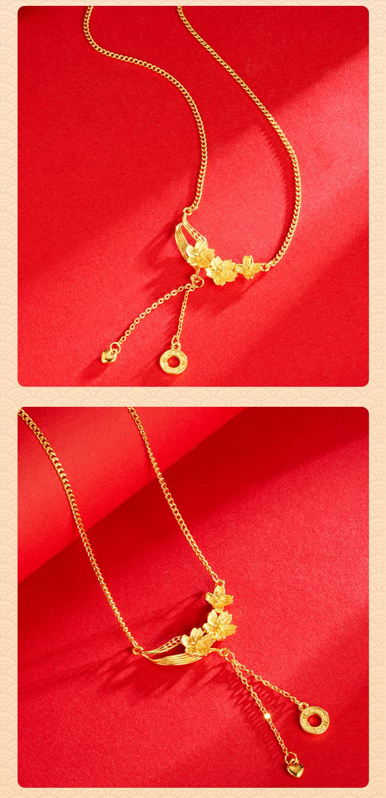 Collar de flor de Bauhinia nicho para niña Yue Nansha oro tres flores aleación de cobre borla joyería cadena clavícula lujo ligero Avanzado