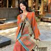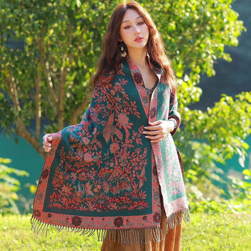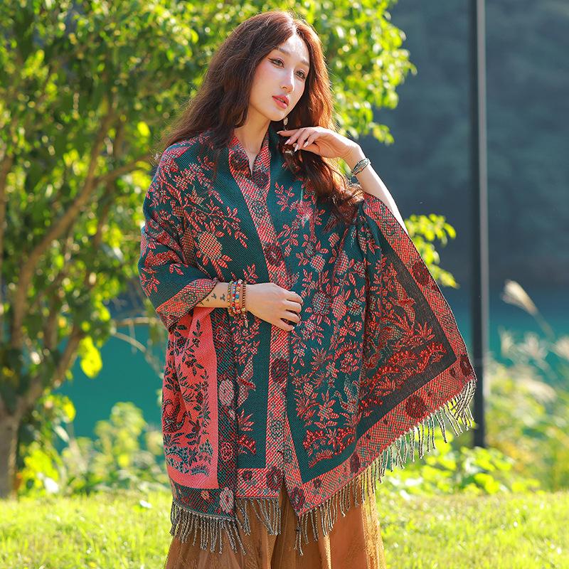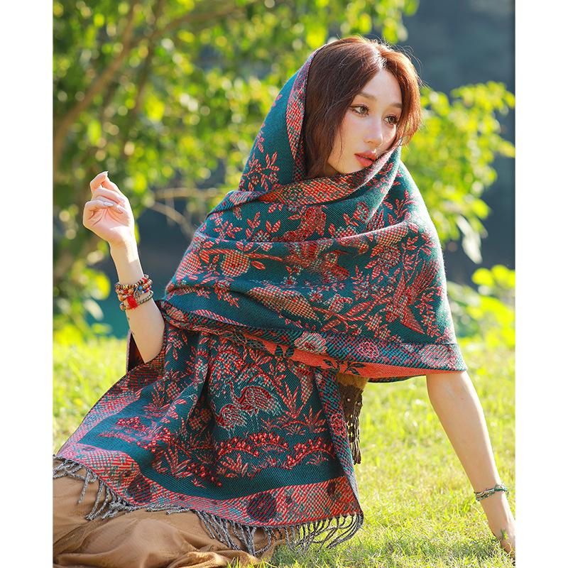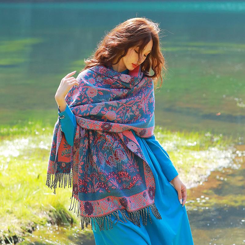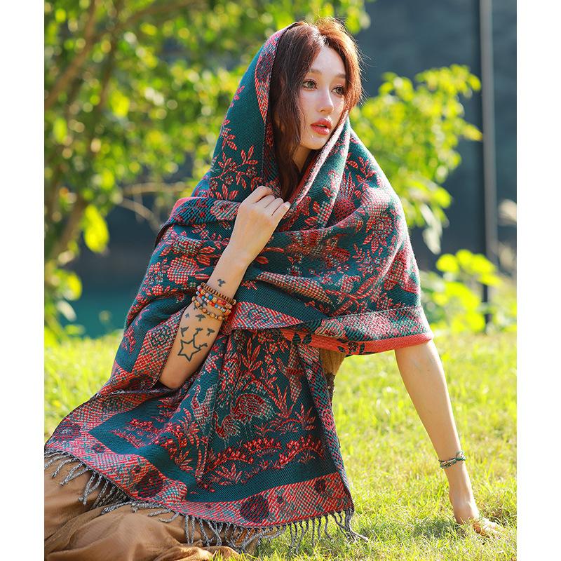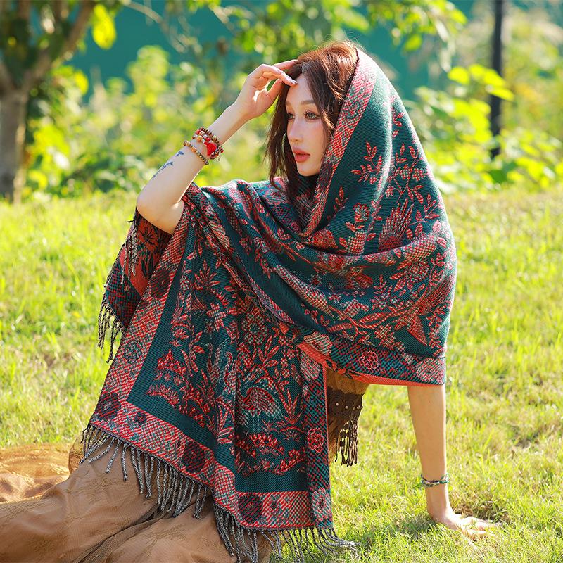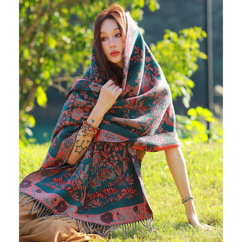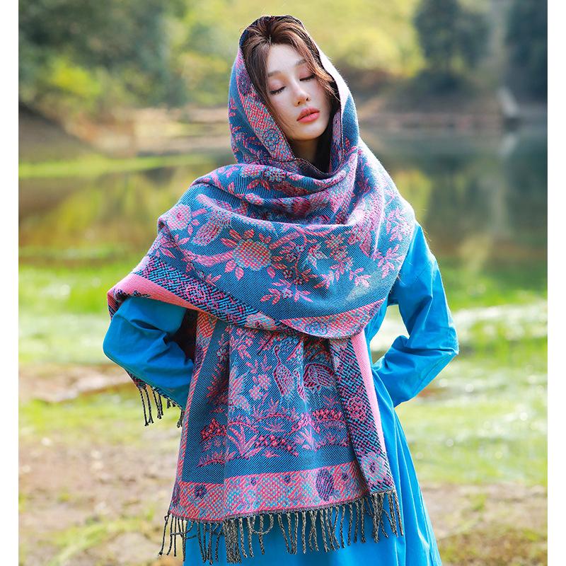 Capa de estilo étnico de invierno para mujer, nueva bufanda artística de turismo de Yunnan Erhai, bufanda gruesa y cálida que combina con todo.