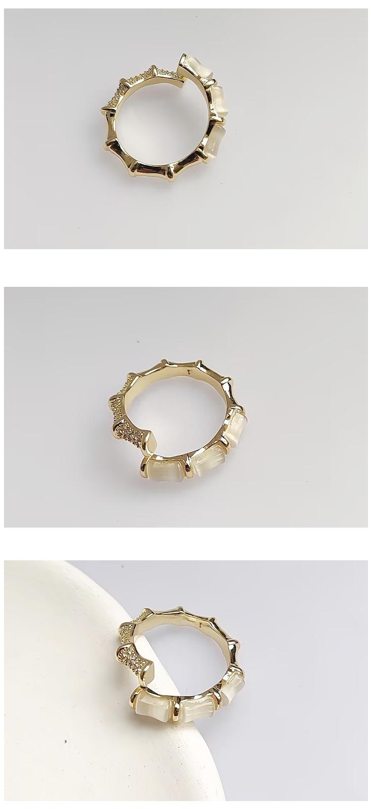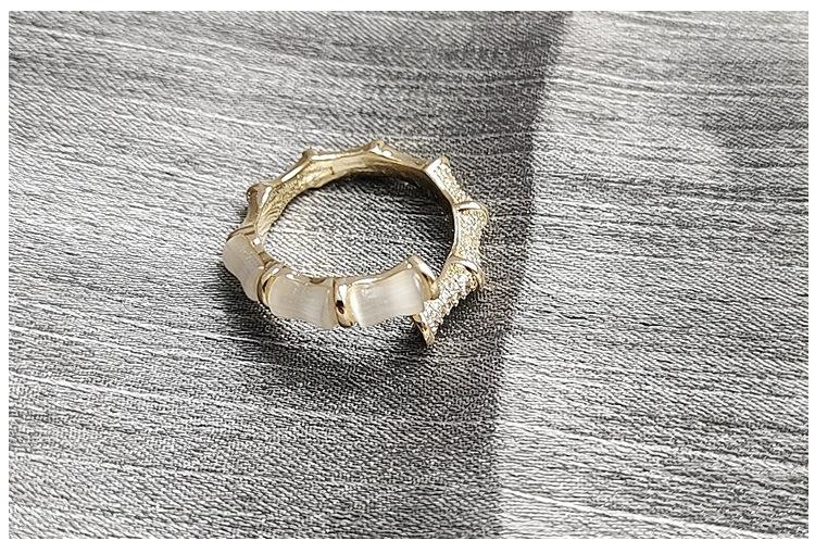 Nuevo anillo de moda con calcedonia blanca, anillo de bambú de gran altura, nuevo anillo de plata de estilo chino retro.