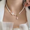 Collar de perlas naturales con costuras de concha de bambú, diseño simple coreano, cadena de clavícula de alta gama para mujer, combinable con todo.