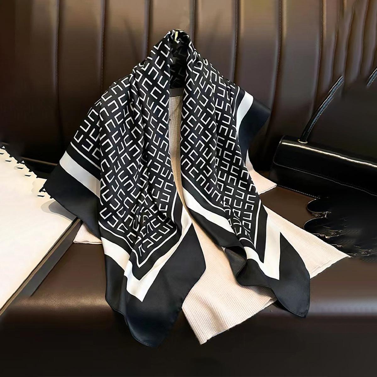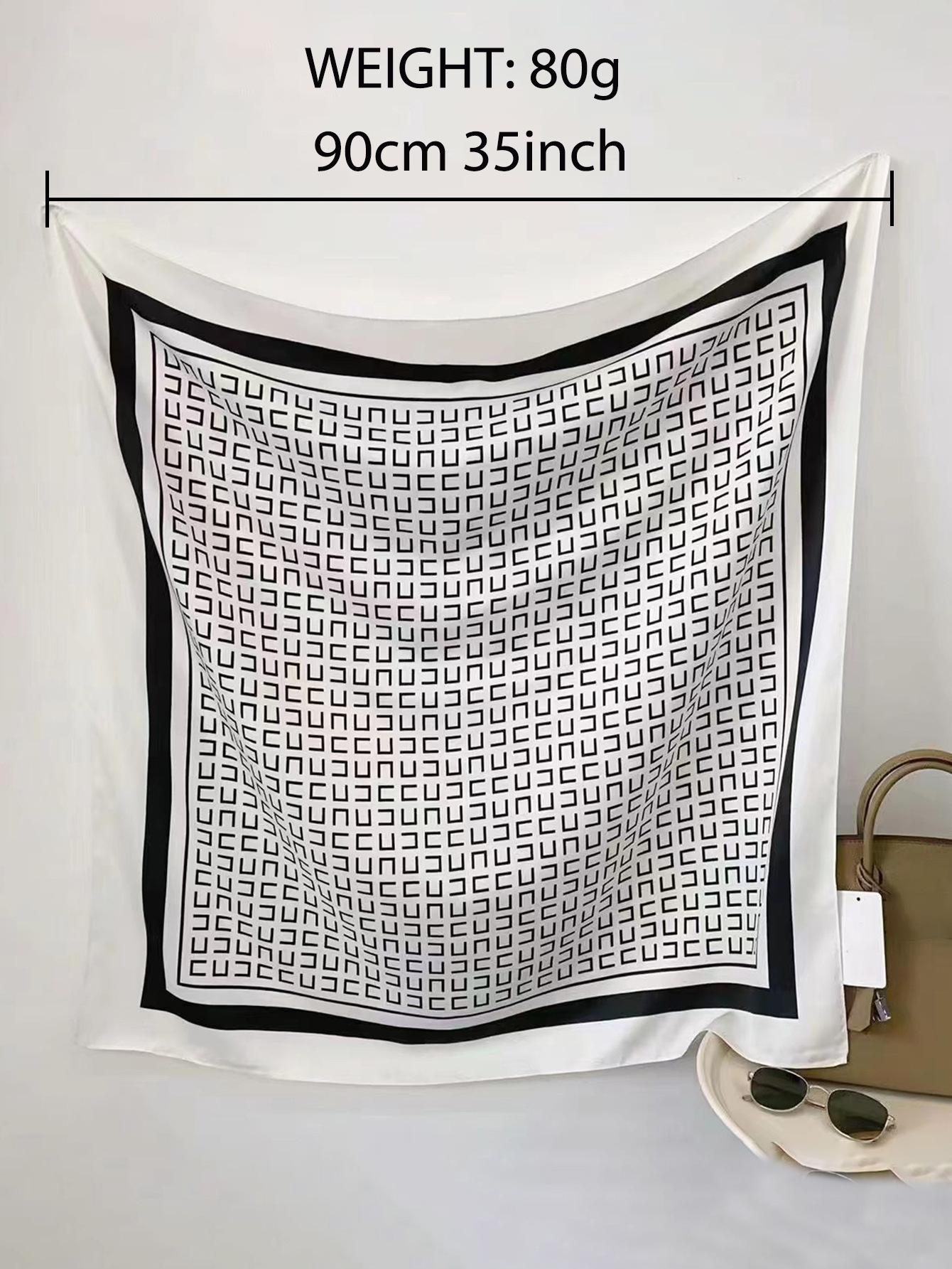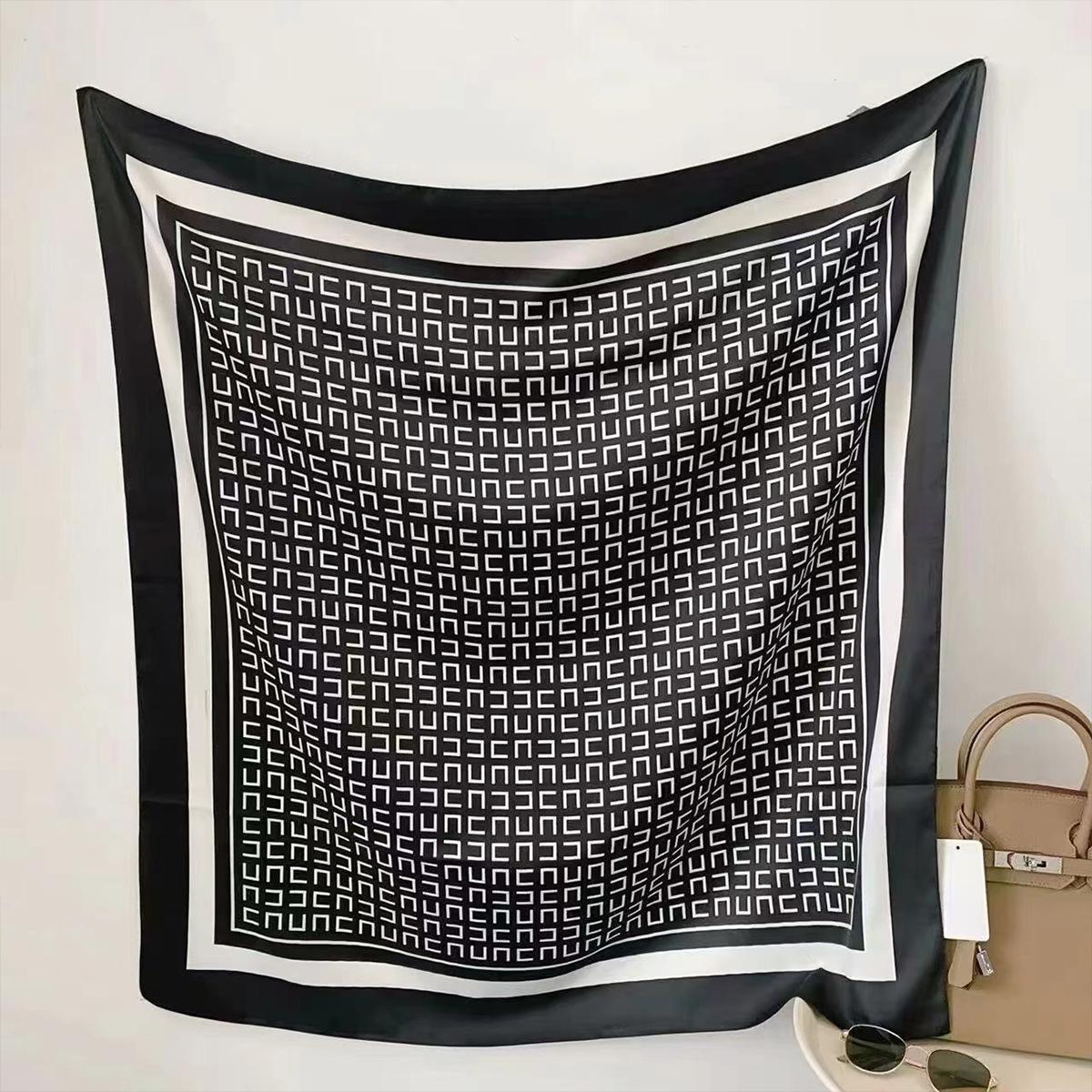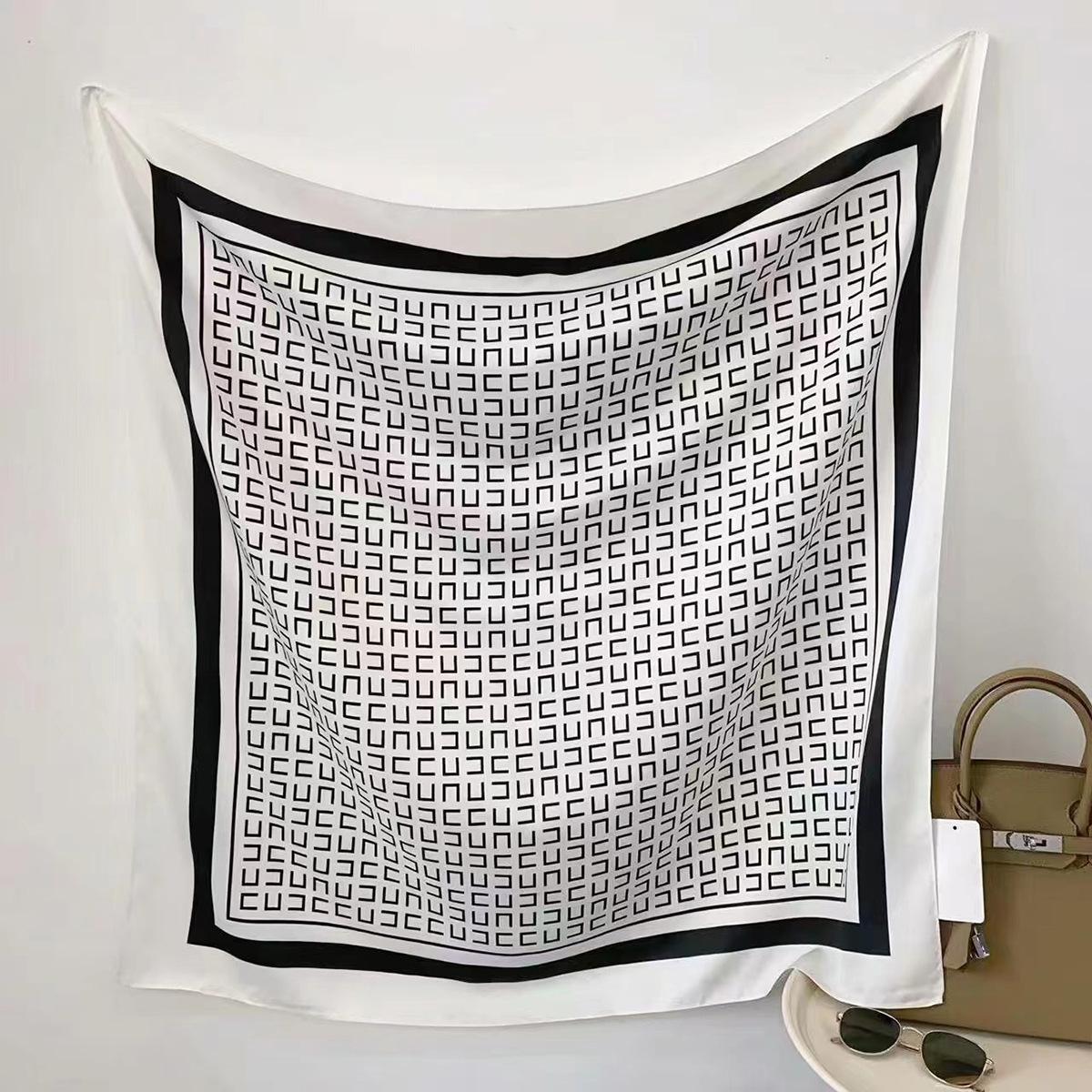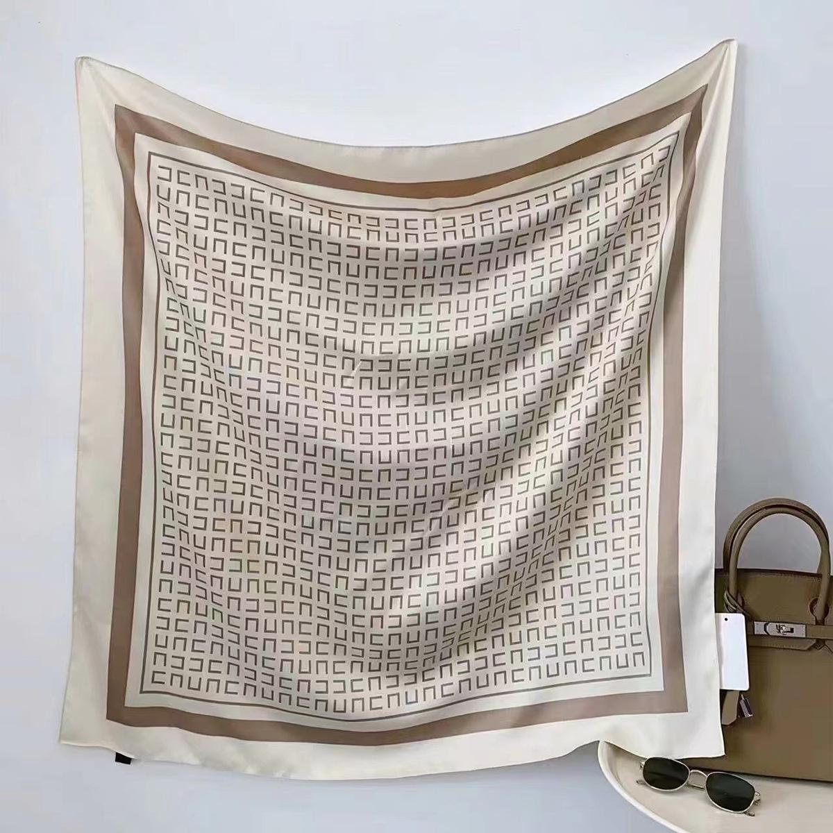 Moda de primavera y verano Joker bufanda de seda lisa geométrica para mujer bufanda retro de alto sentido 90*90cm bufanda de regalo