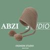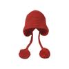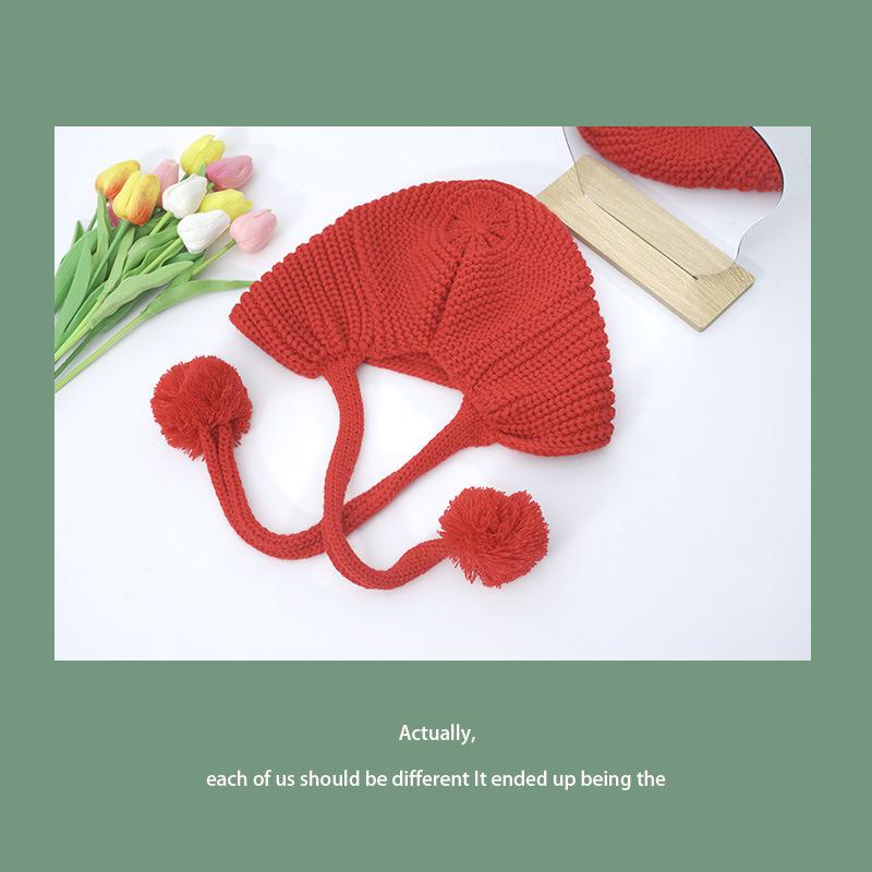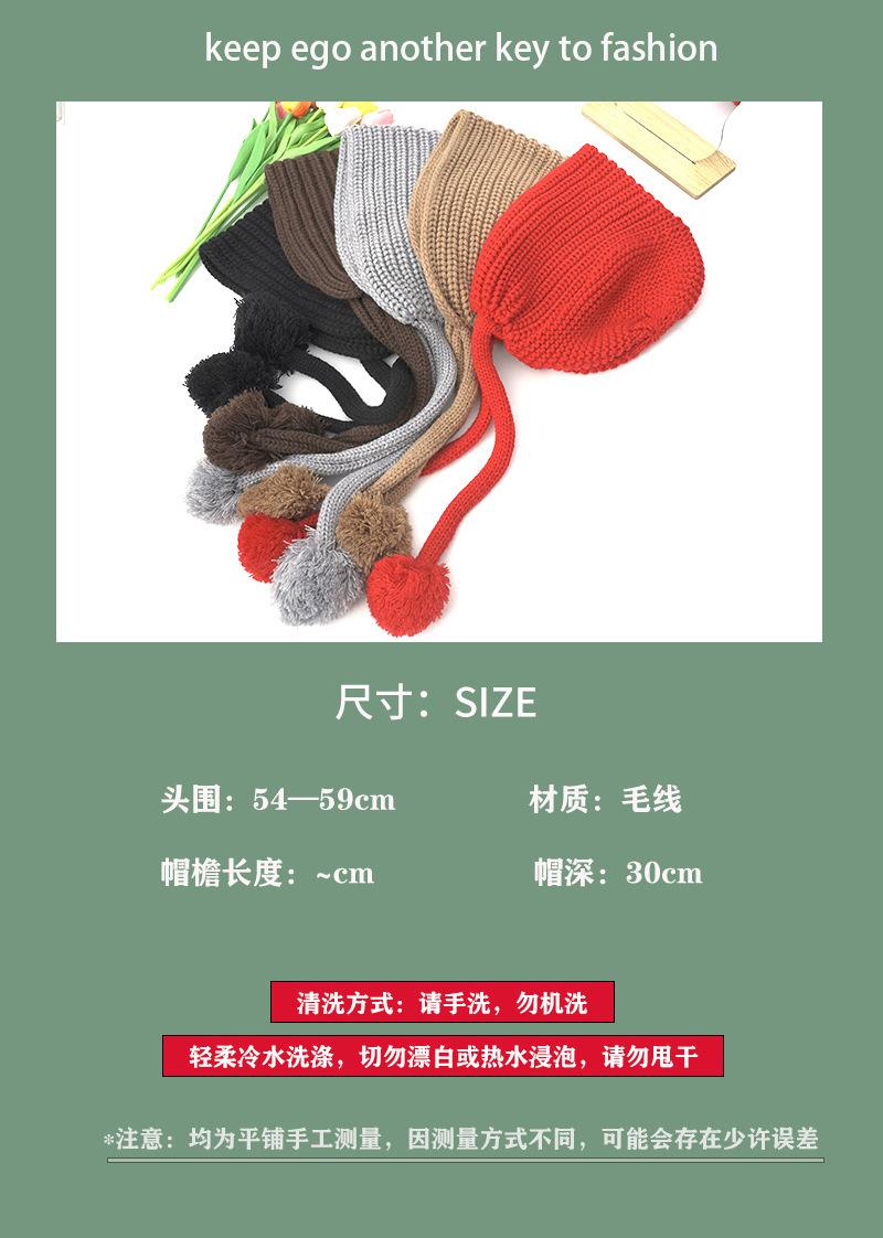 Gorro de punto cálido y transpirable de color sólido para otoño e invierno, con personalidad, bola de pelo de felpa, sencillo, combinable con todo, con punta cerrada y protección para las orejas.