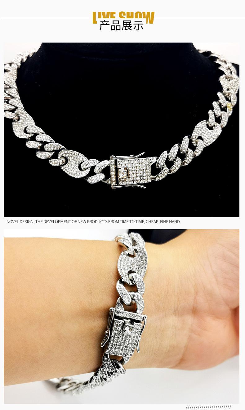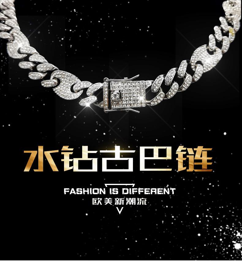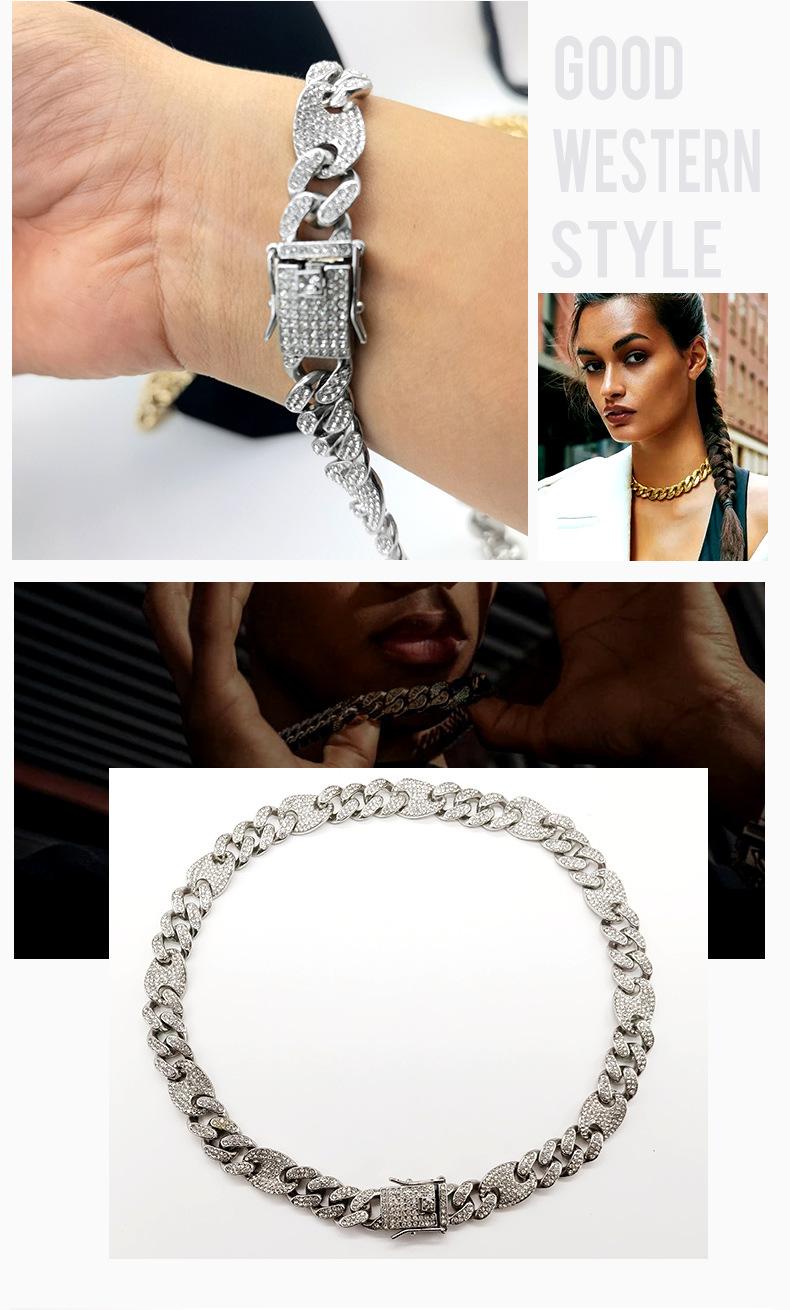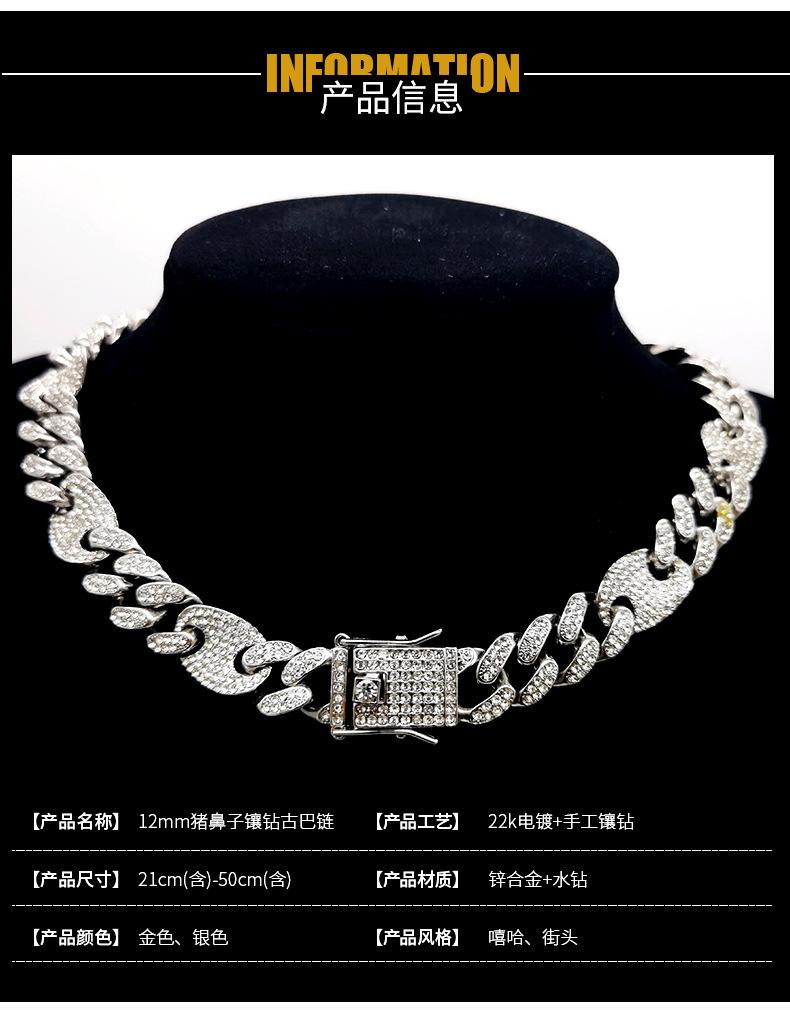 Pulsera de Cadena Cubana de Moda Hip-Hop con Incrustaciones de Diamantes 12 mm Nariz de Cerdo Unisex Collar Hip-Hop de Moda Más Vendido