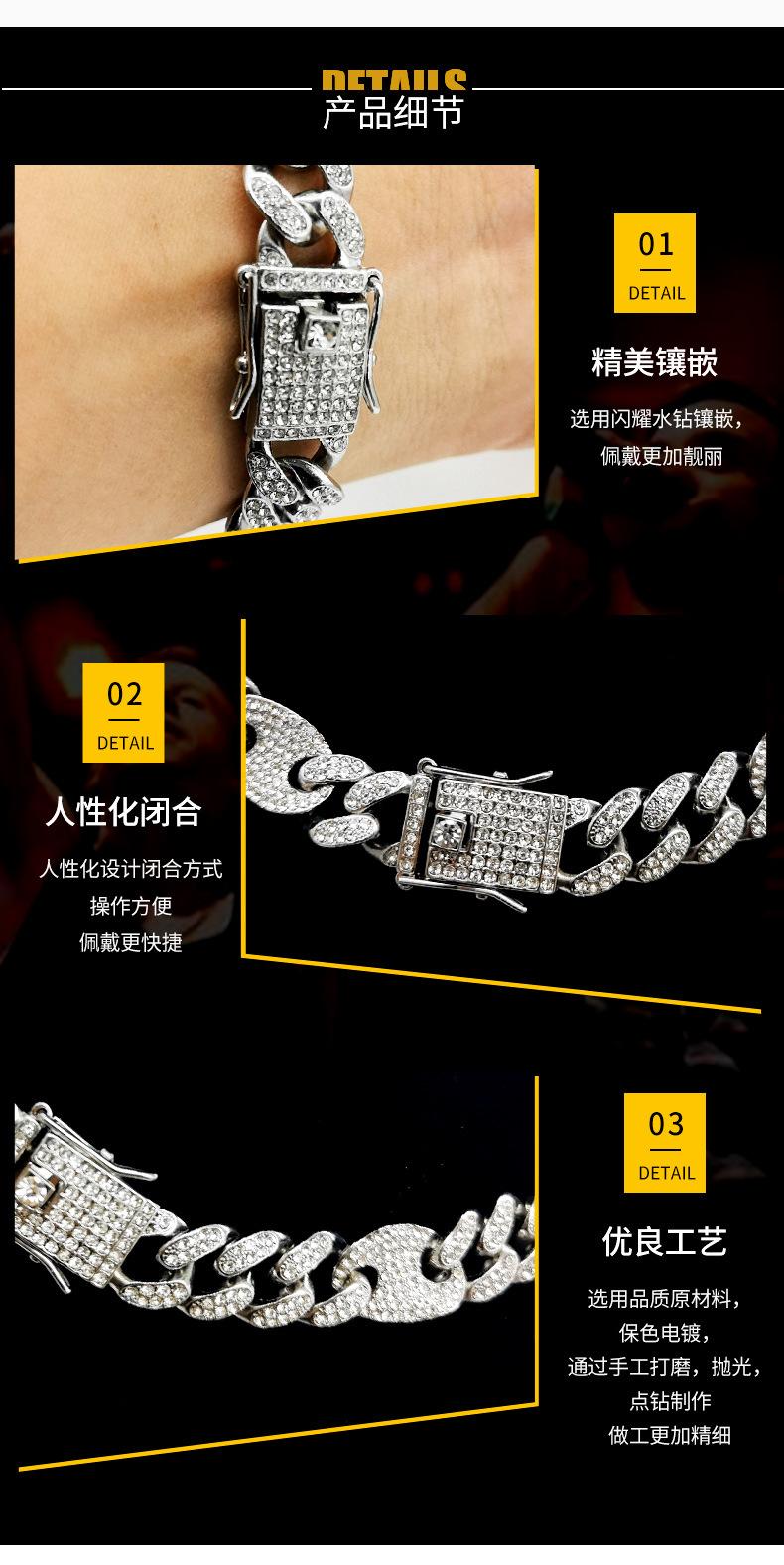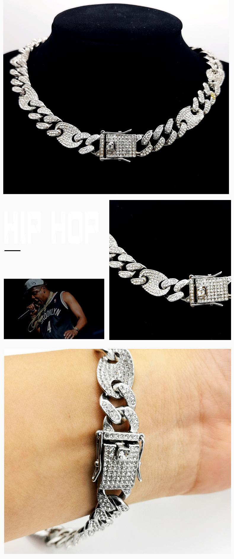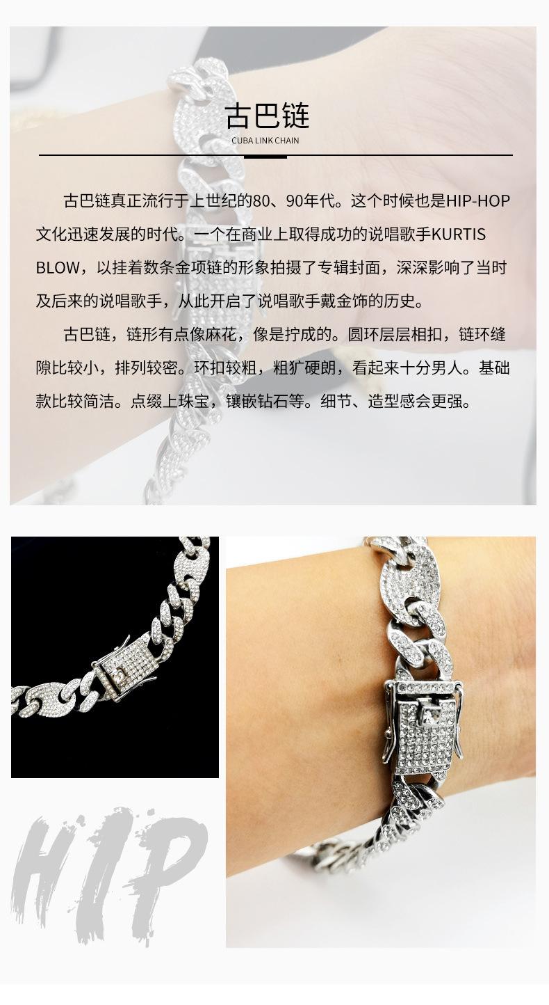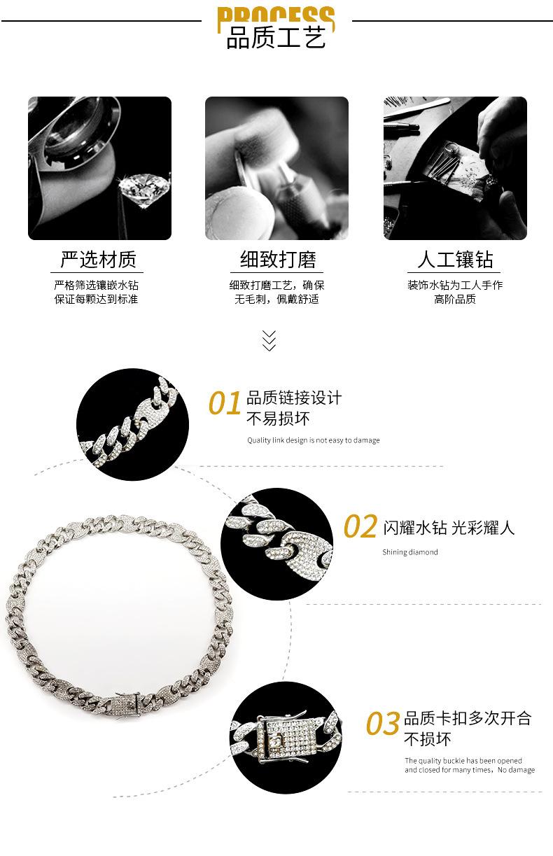 Pulsera de Cadena Cubana de Moda Hip-Hop con Incrustaciones de Diamantes 12 mm Nariz de Cerdo Unisex Collar Hip-Hop de Moda Más Vendido