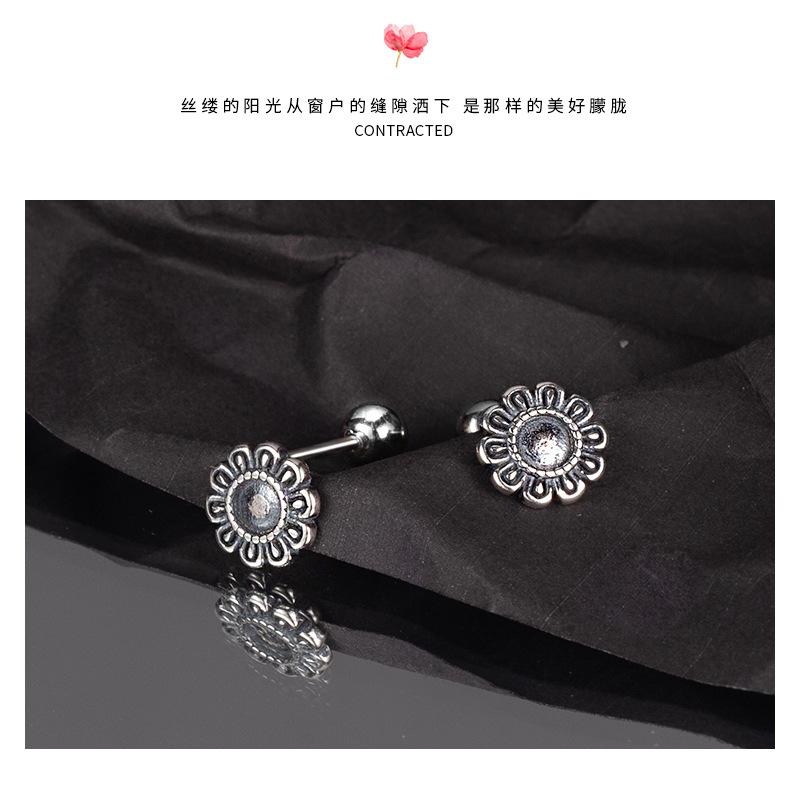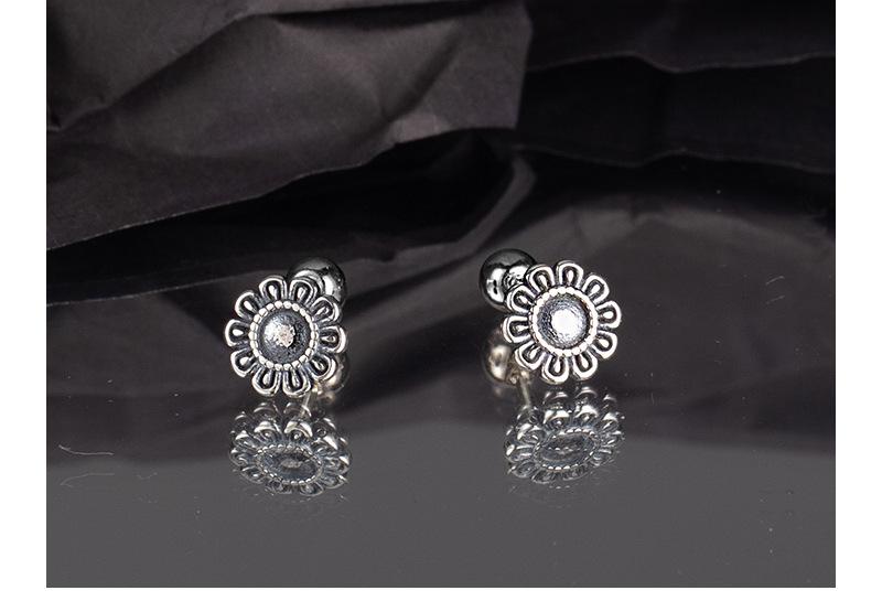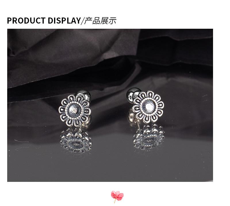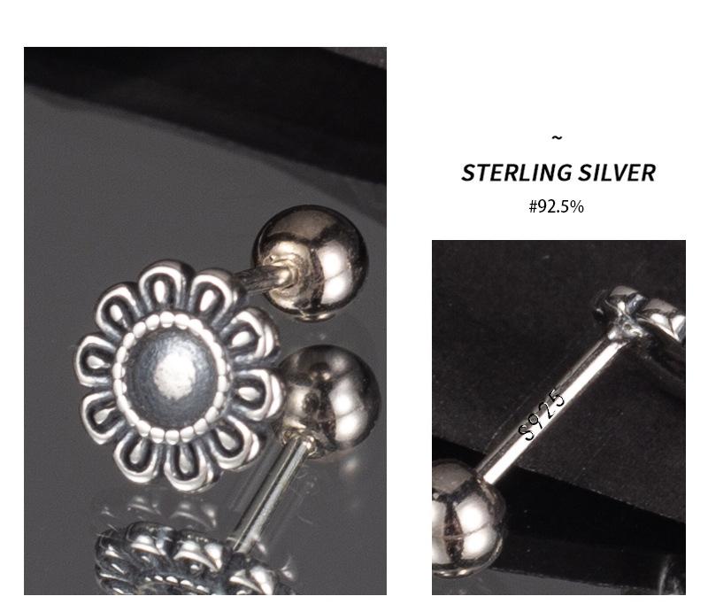 Clavo de oreja de verano de plata s925 personalizado, nuevo estilo oscuro, nuevo, vintage, antiguo, flor, tornillo, joyería para oreja