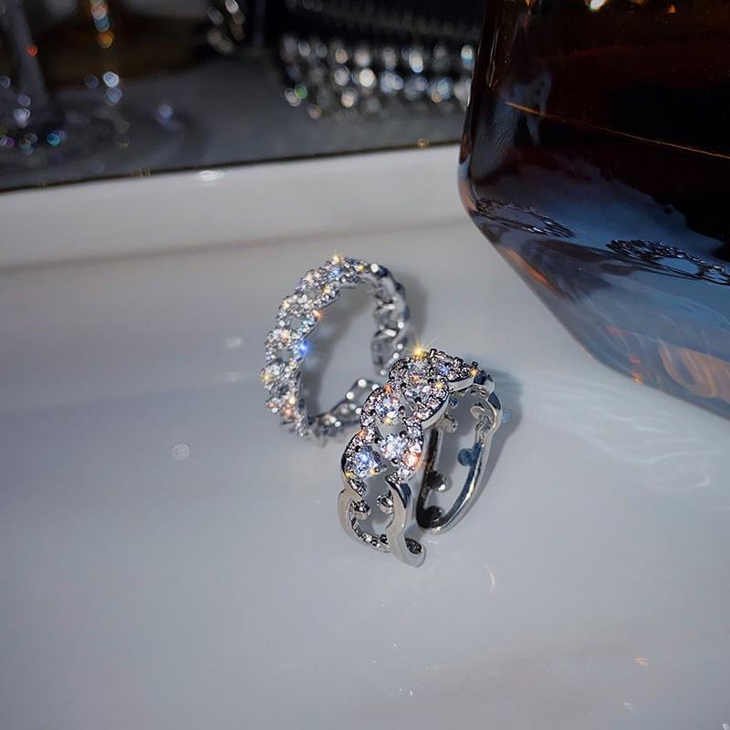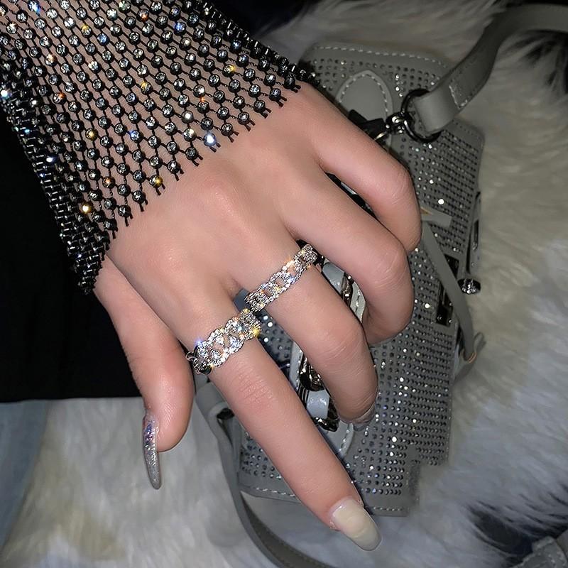 Estilo Frío Sentido de Alta Gama Lujo Ligero Diseño Nicho Moda Personalidad Celebridad de Internet Anillo de Dedo Abierto Diamante Flash Anillo para Mujer ins Trendy