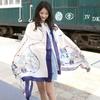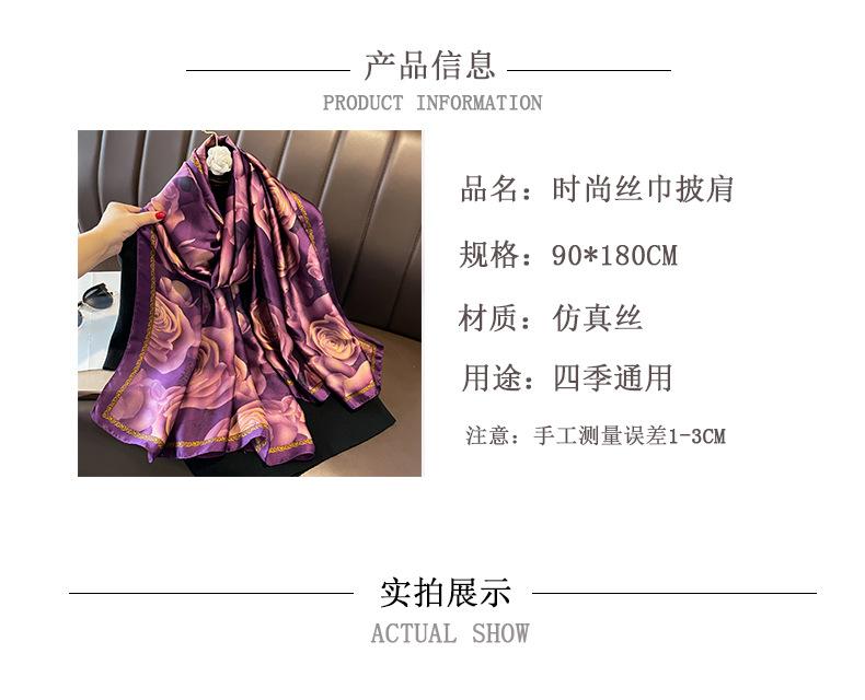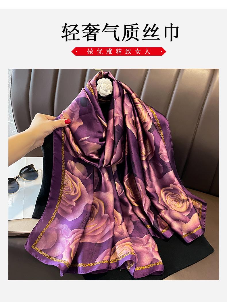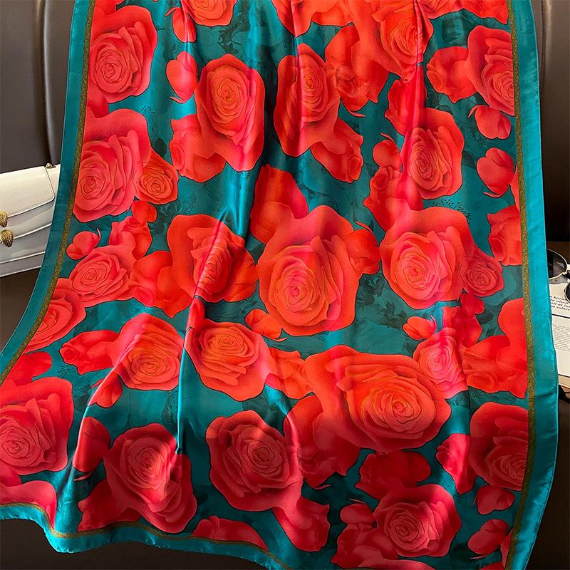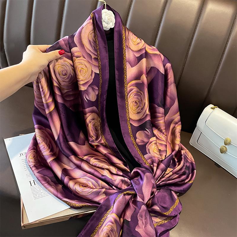 Bufanda de protección solar estampada para mujer, chal de seda estilo coreano para vacaciones de verano, elegante bufanda de playa