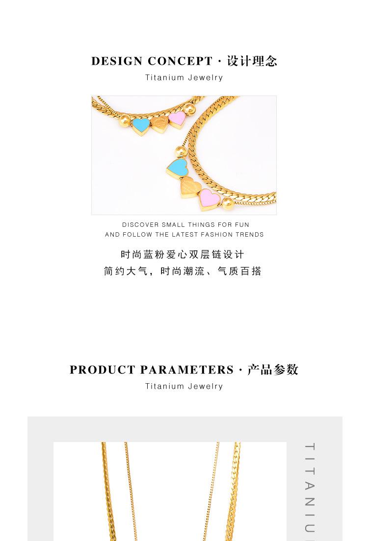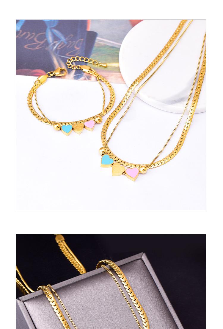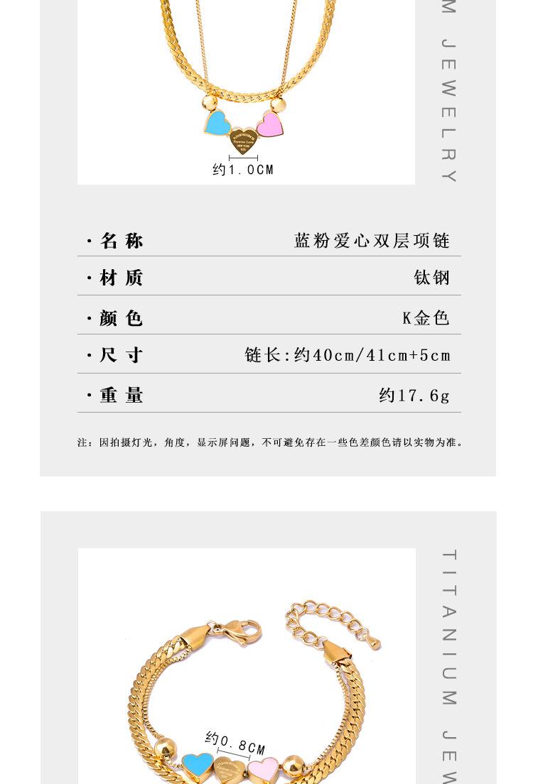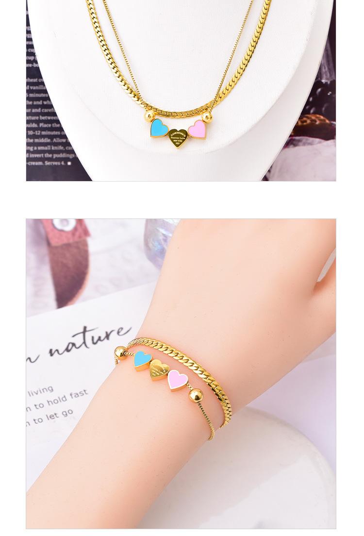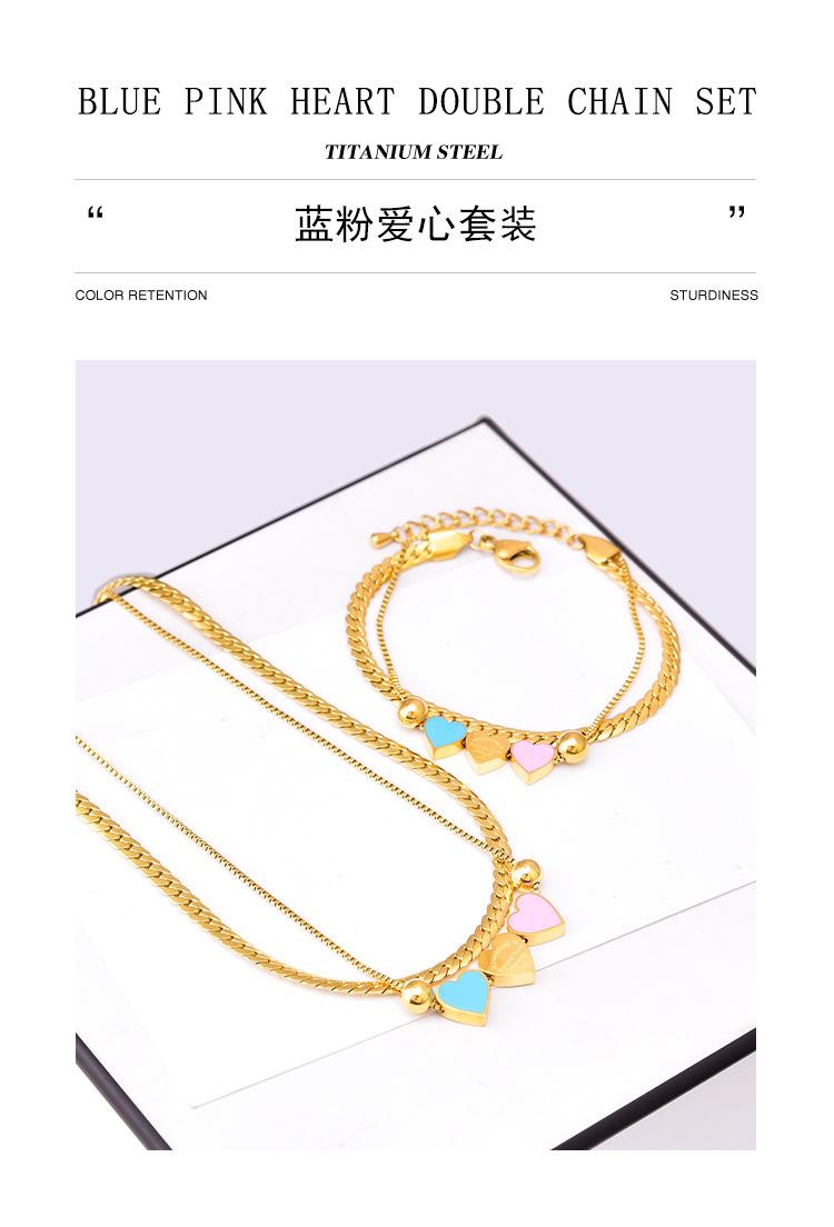 Acero Titanio Moda Tres Rosa Azul Amor Collar Doble Capa Cadena Hueso de Serpiente Pulsera Corazón Durazno Joyería de Mano Geométrica Sólida