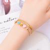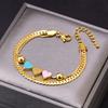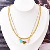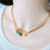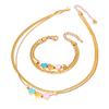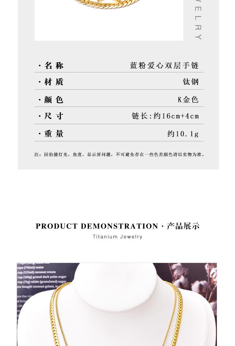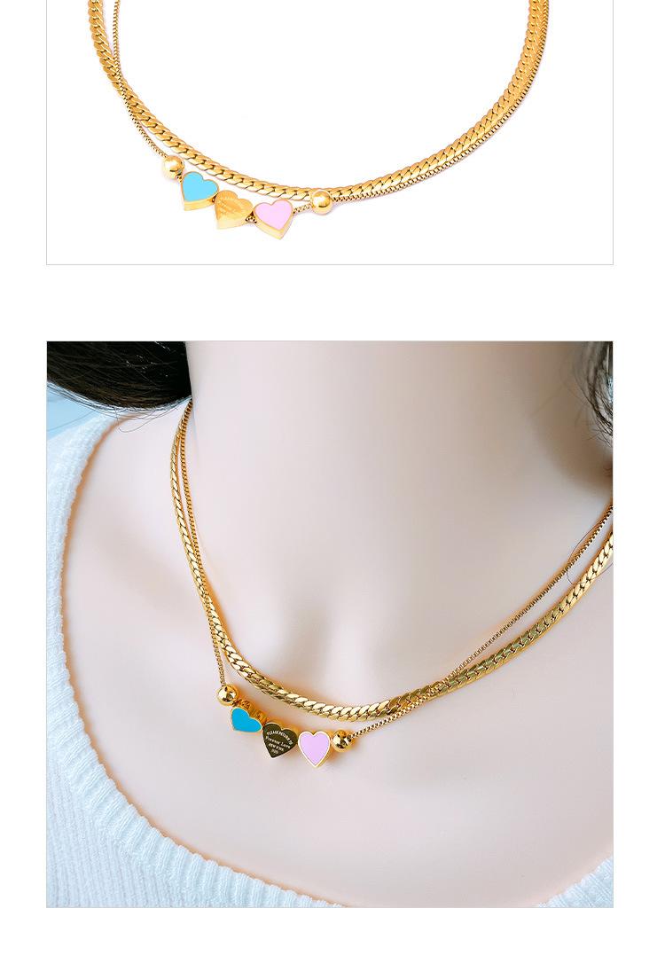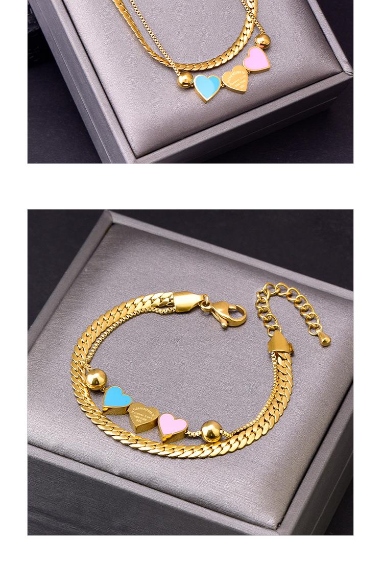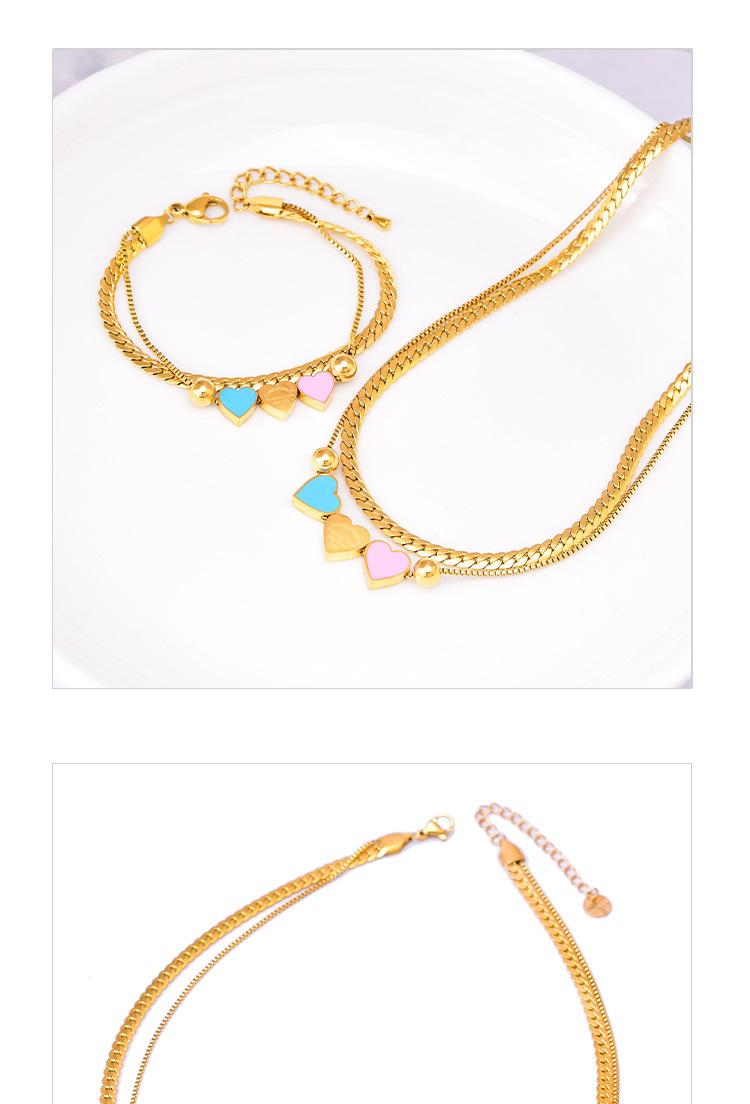 Acero Titanio Moda Tres Rosa Azul Amor Collar Doble Capa Cadena Hueso de Serpiente Pulsera Corazón Durazno Joyería de Mano Geométrica Sólida