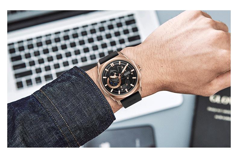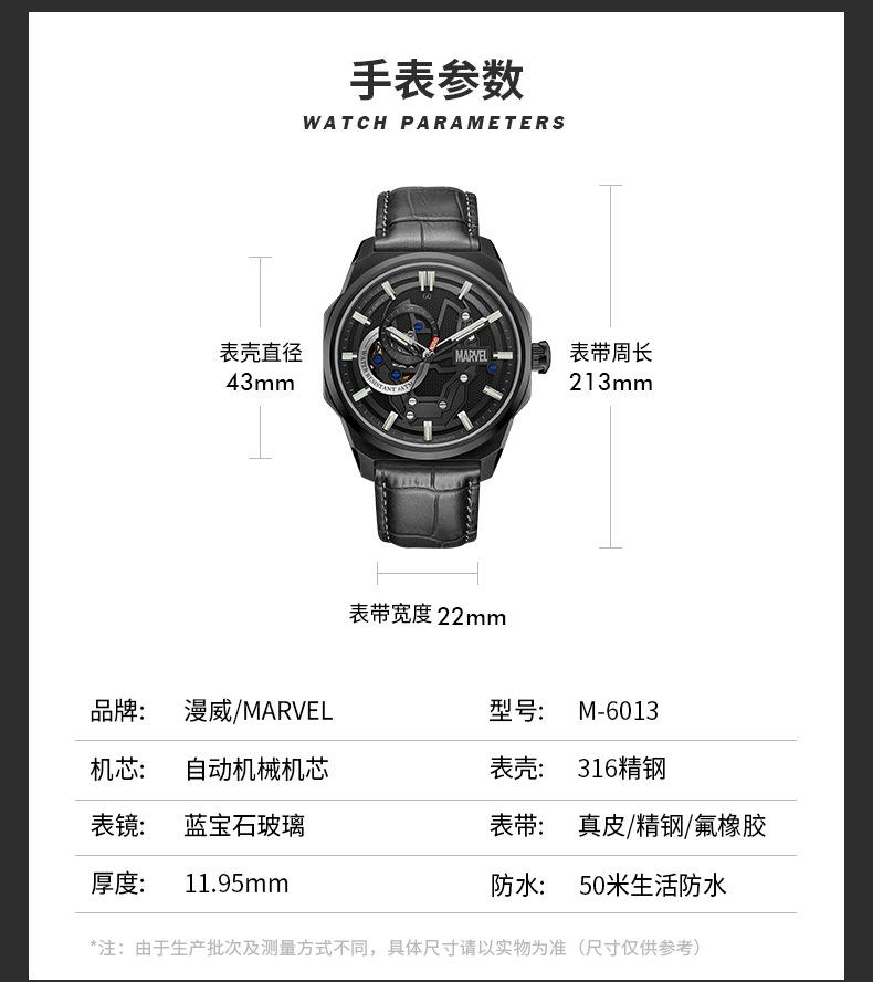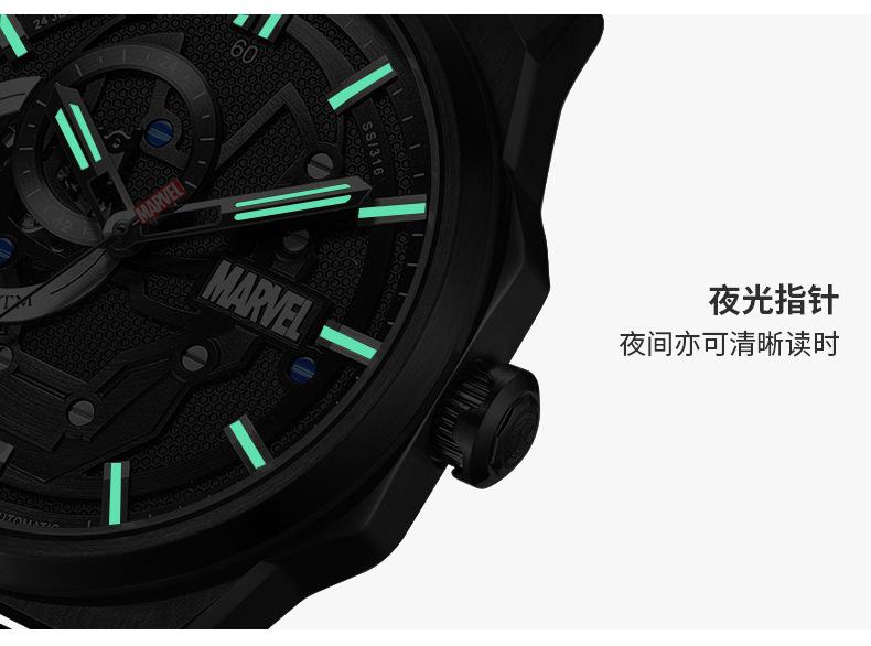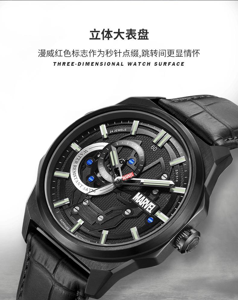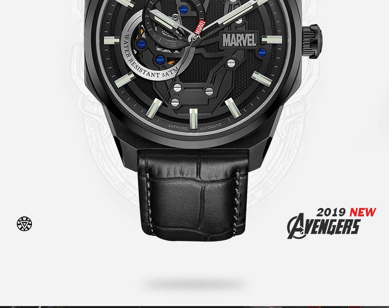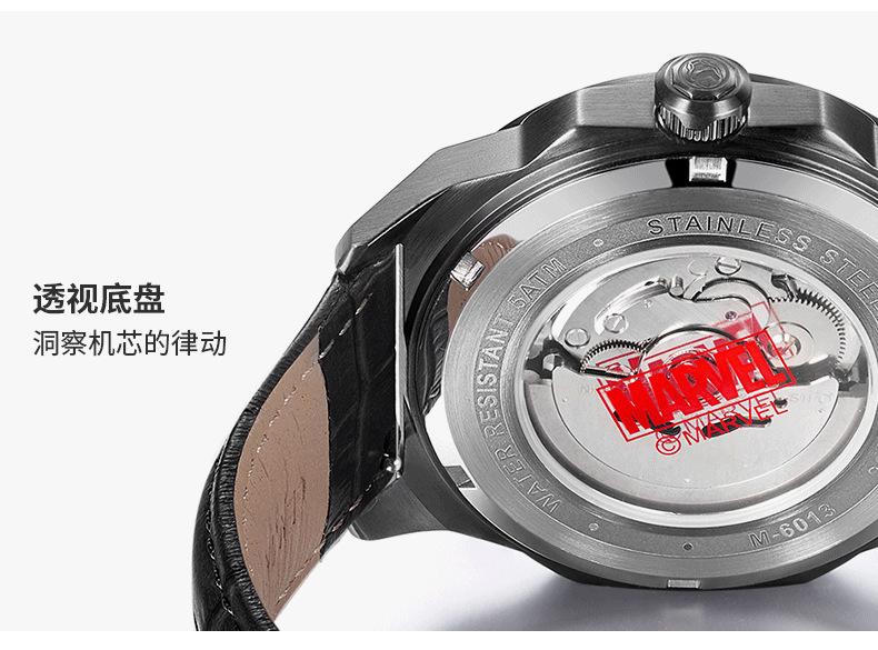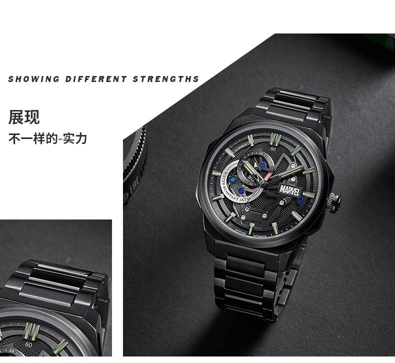 Reloj Marvel para hombre, mecánico, automático, hueco, con correa de acero, estilo asesino, tendencia urbana, 1988