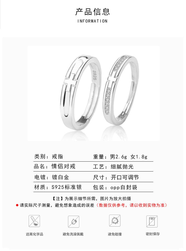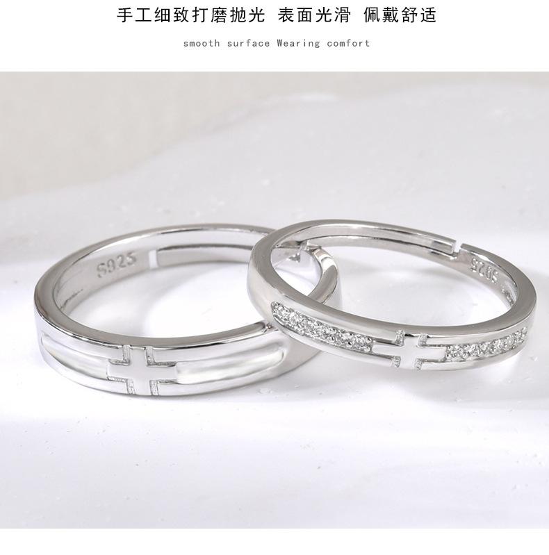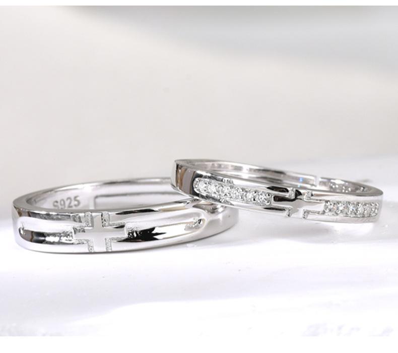 Anillo de Pareja de Cruz de Plata Esterlina S925 para Hombre y Mujer Anillo de Pareja de Alta Gama Joyería Abierta para Mano Joyería Transfronteriza para el Día de San Valentín
