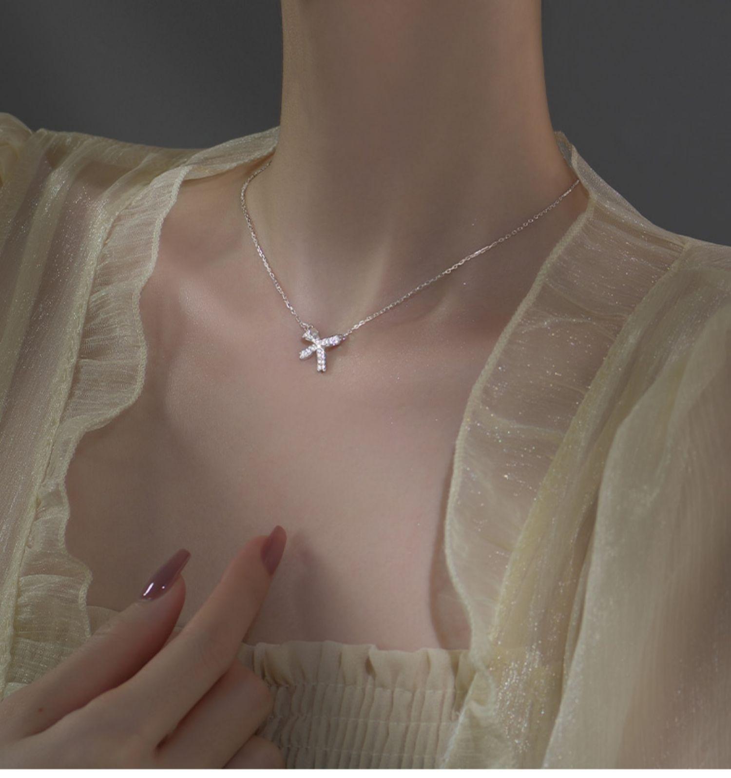 Collar de lazo de plata para mujer de alta calidad 2021 Nueva cadena de clavícula de verano diseño simple ligero de lujo nicho