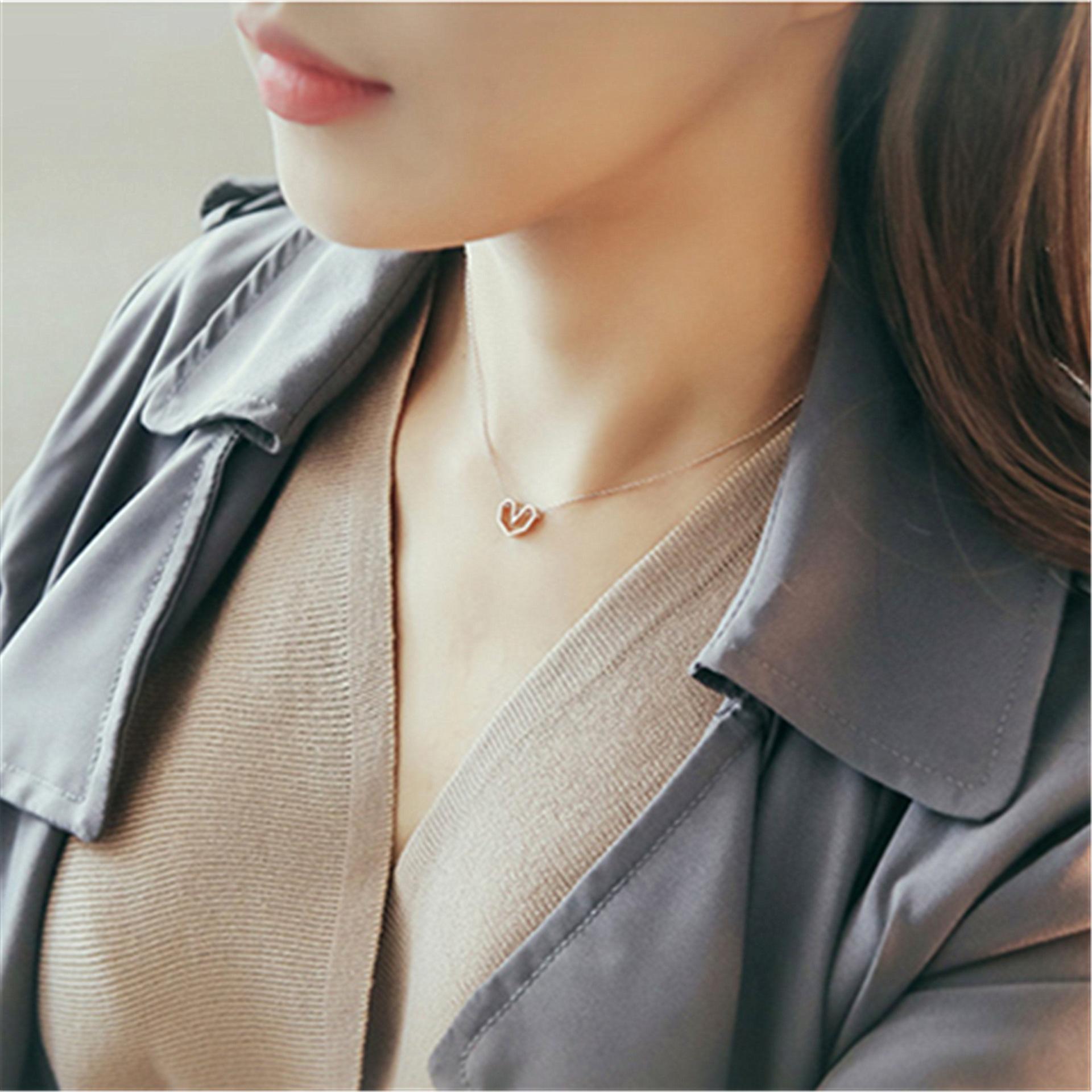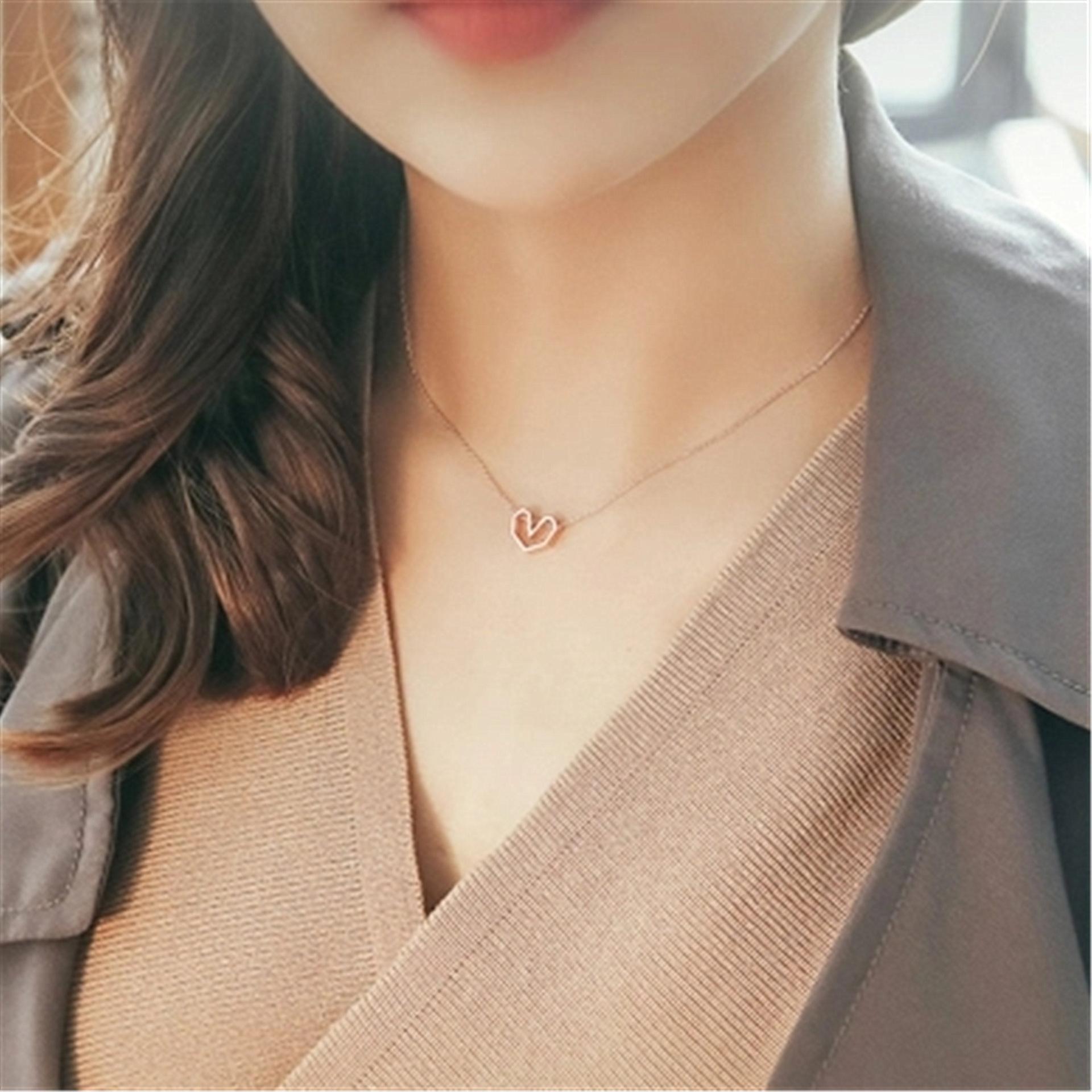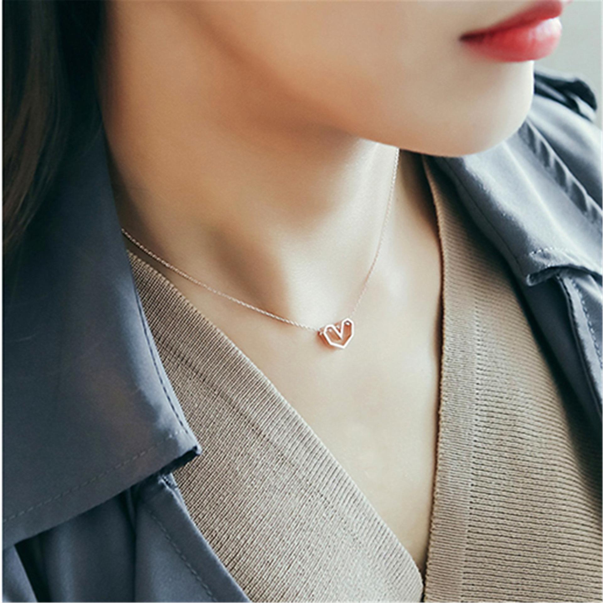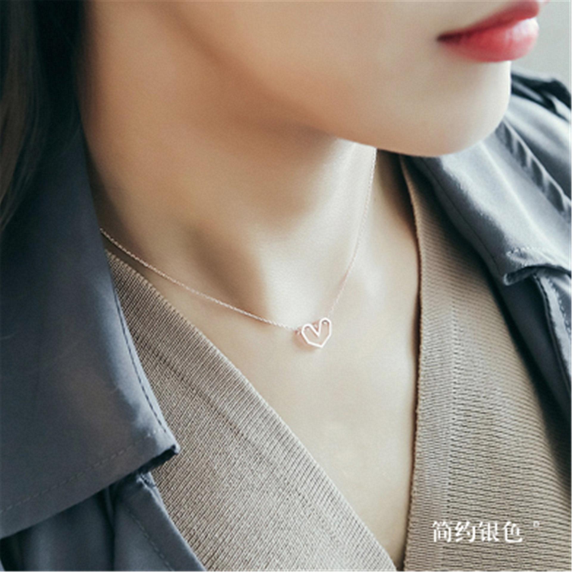 Cadena de clavícula chapada en plata 925 de estilo coreano, colgante de amor hueco, sencillo y novedoso, collar corto de moda, regalo para mujer.