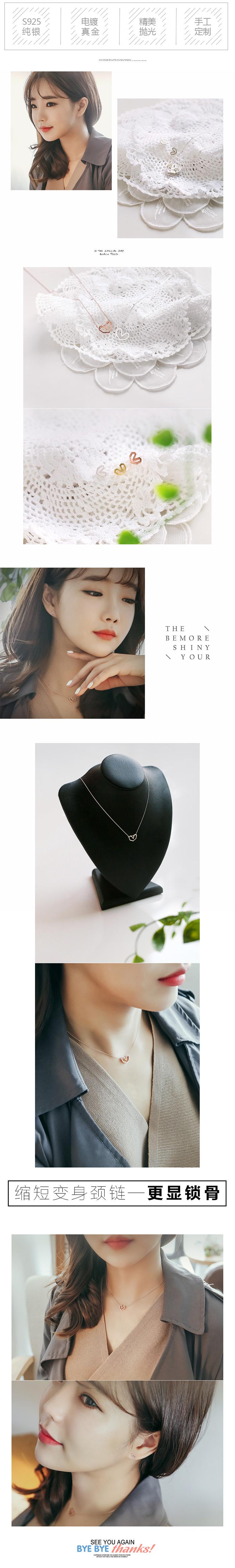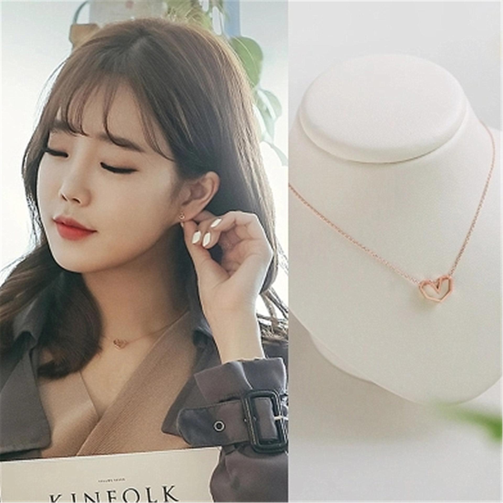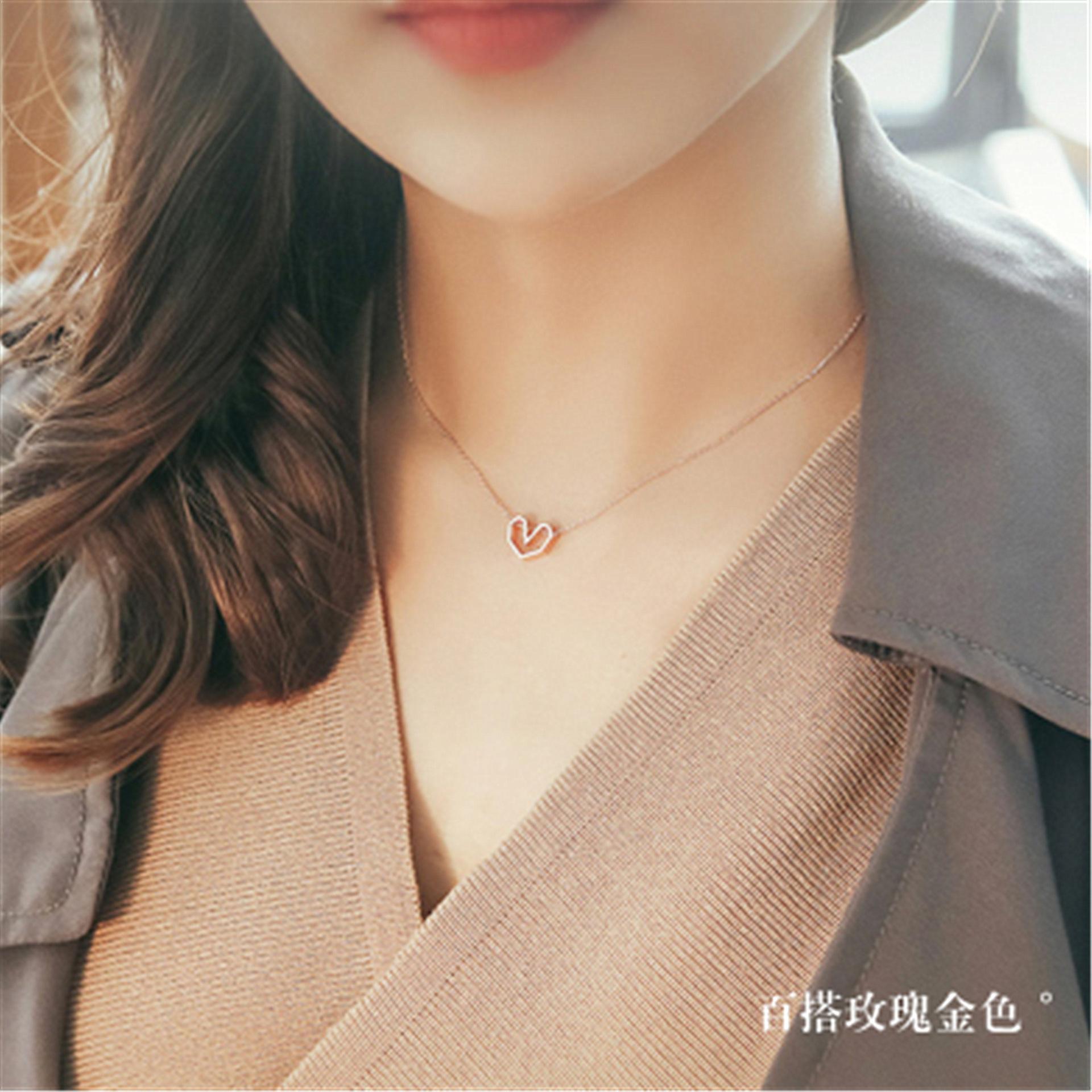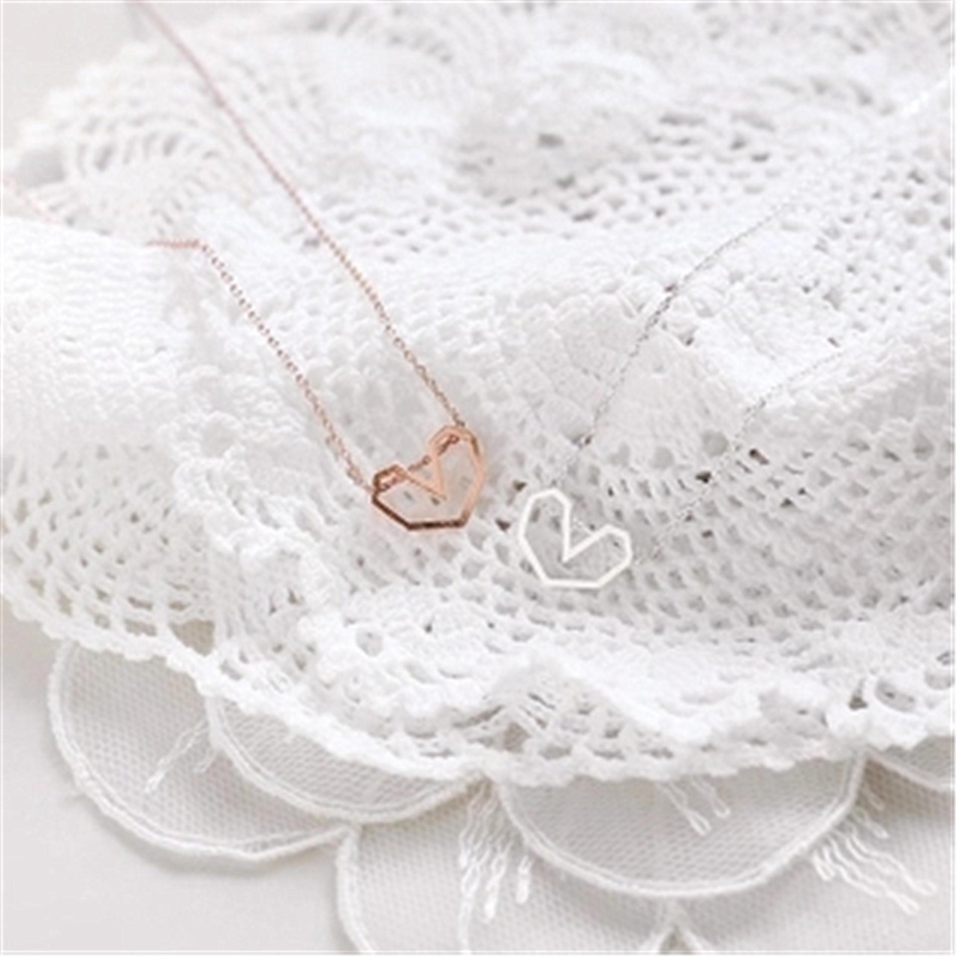 Cadena de clavícula chapada en plata 925 de estilo coreano, colgante de amor hueco, sencillo y novedoso, collar corto de moda, regalo para mujer.