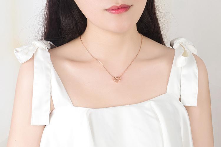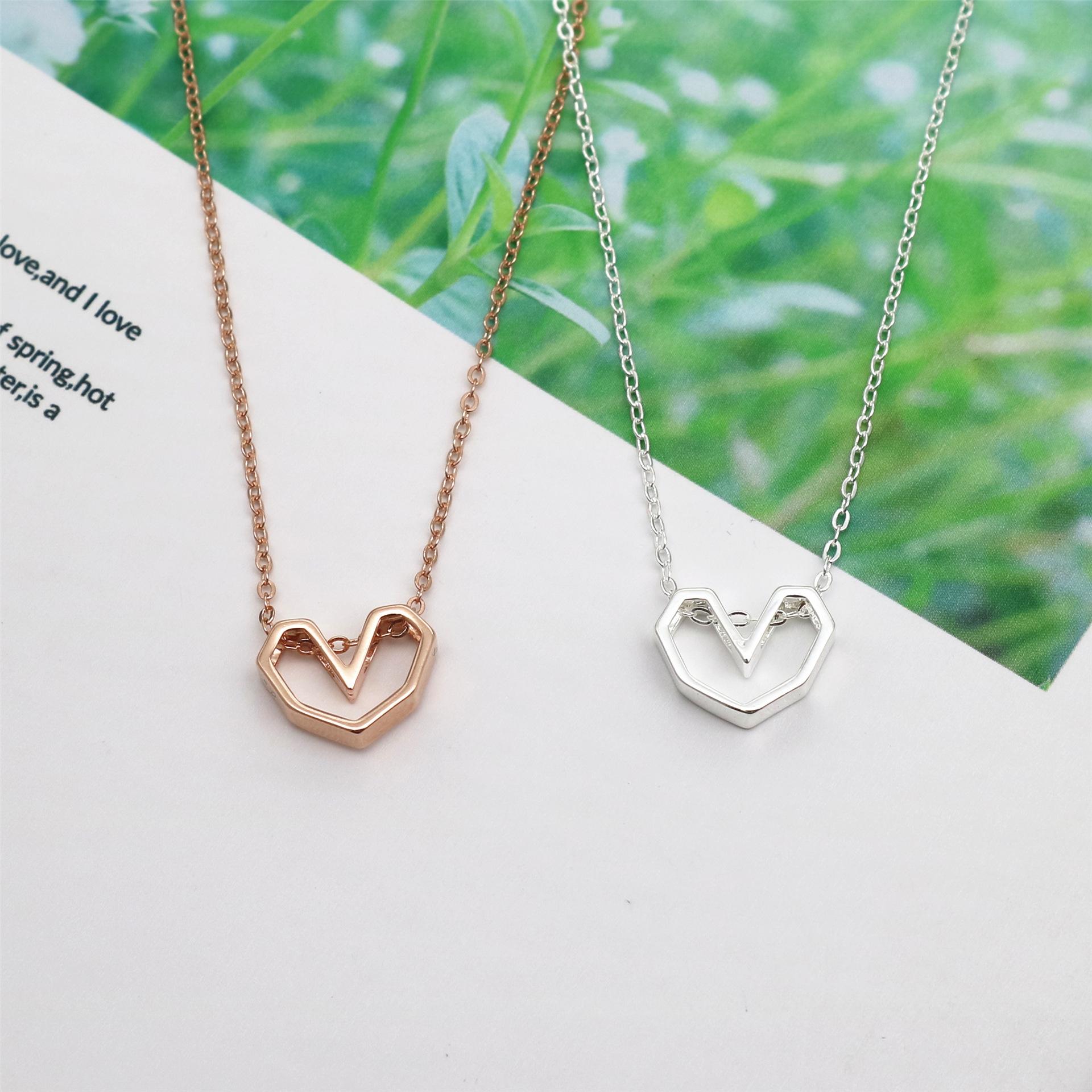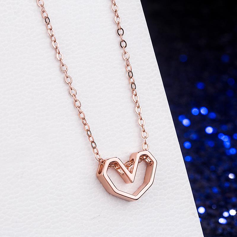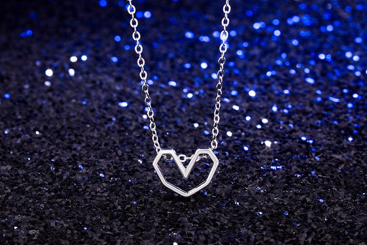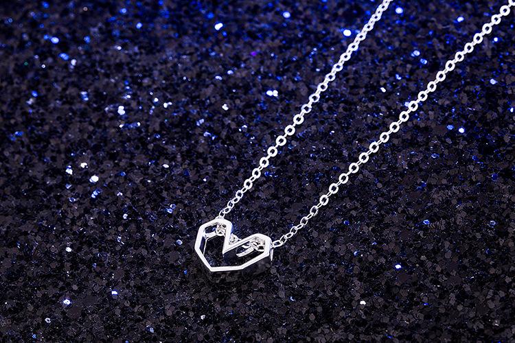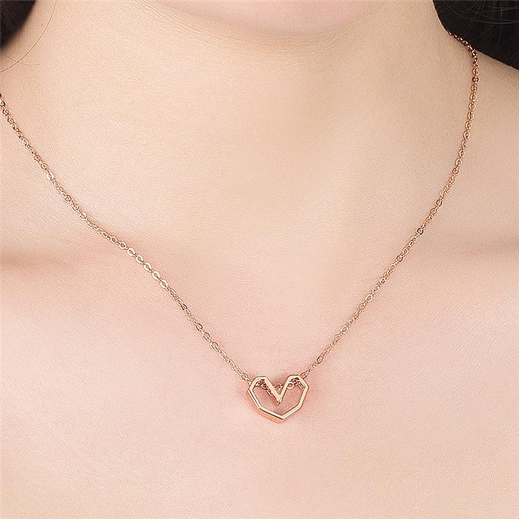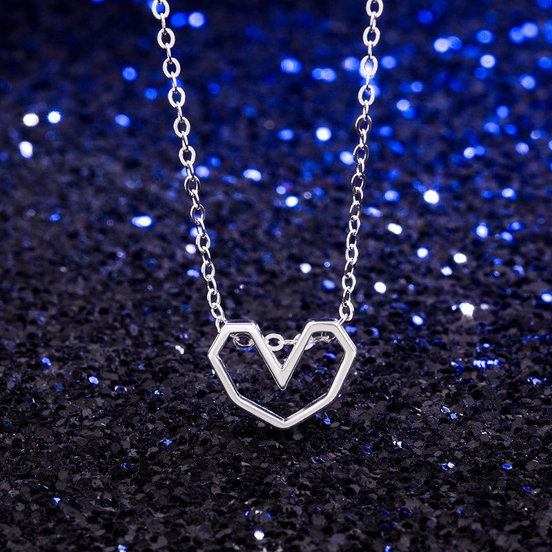 Cadena de clavícula chapada en plata 925 de estilo coreano, colgante de amor hueco, sencillo y novedoso, collar corto de moda, regalo para mujer.