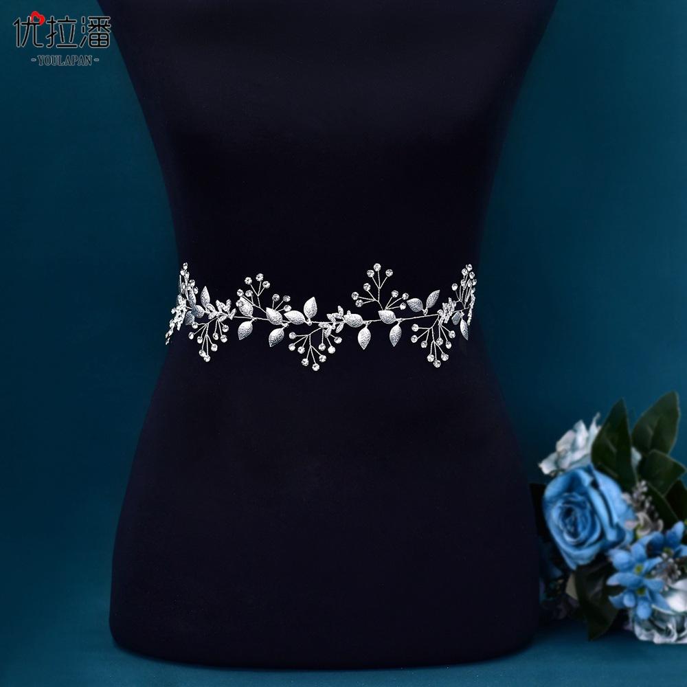 Youlapan Sh537 Export Accesorios de Vestido de Novia de Boda Cinturón de Pedrería Joyería Aleación de Plata Cinturón de Hojas