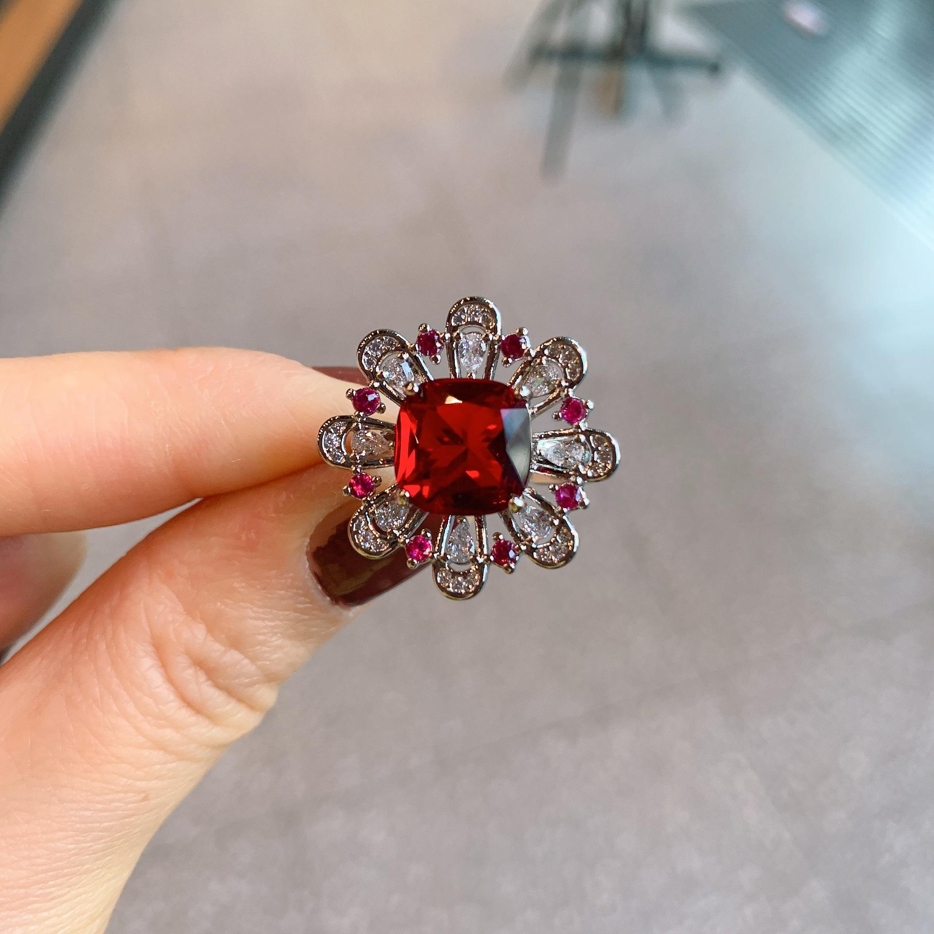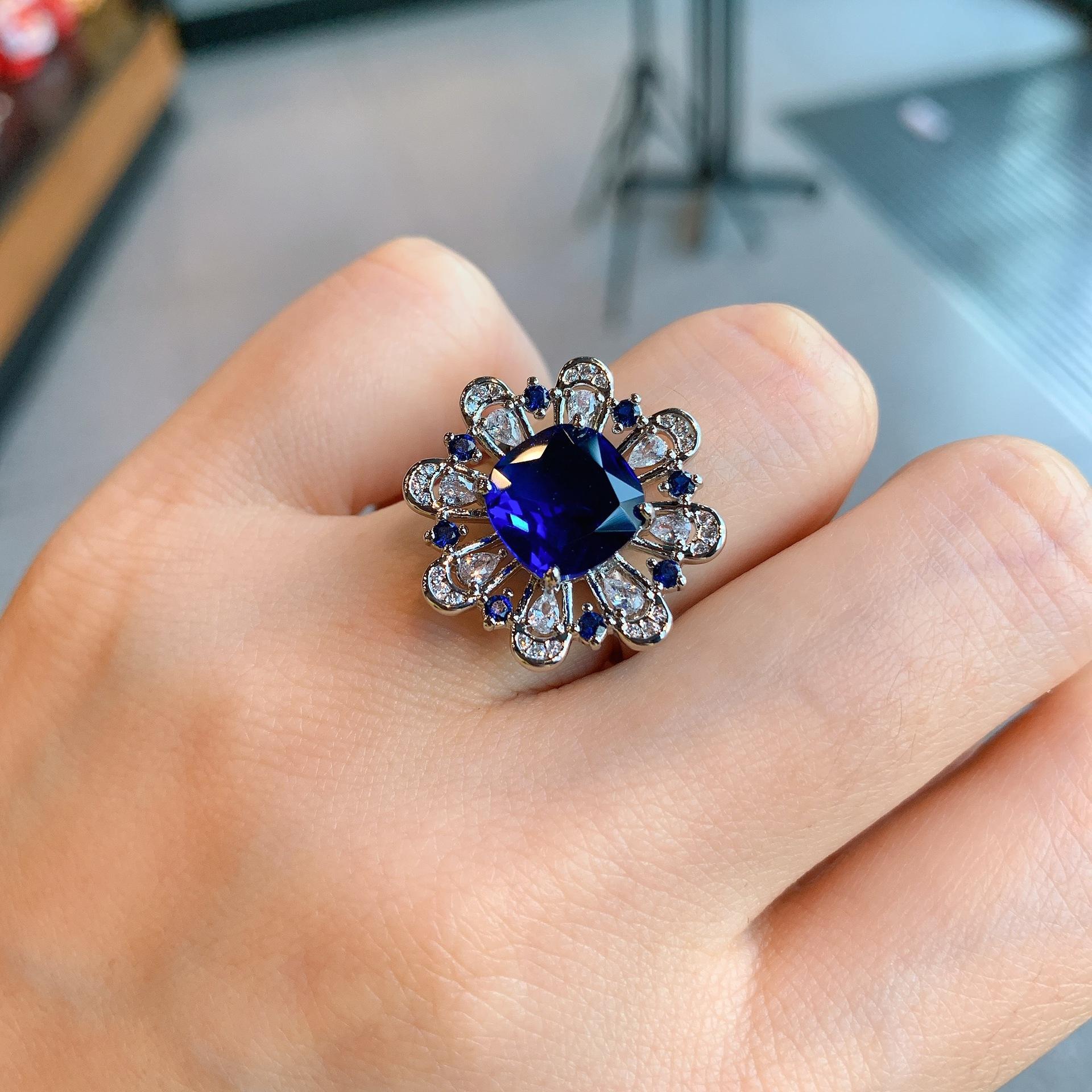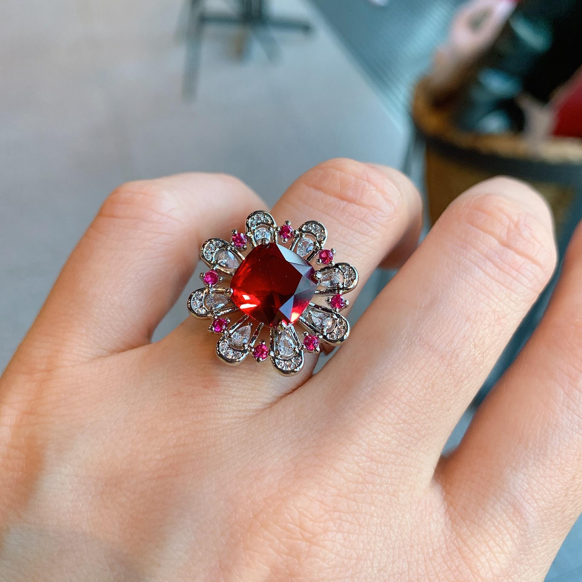 Joyería Huayoumei anillo nuevo transfronterizo de rubí anillo ajustable de zafiro real de imitación europeo y americano AliExpress