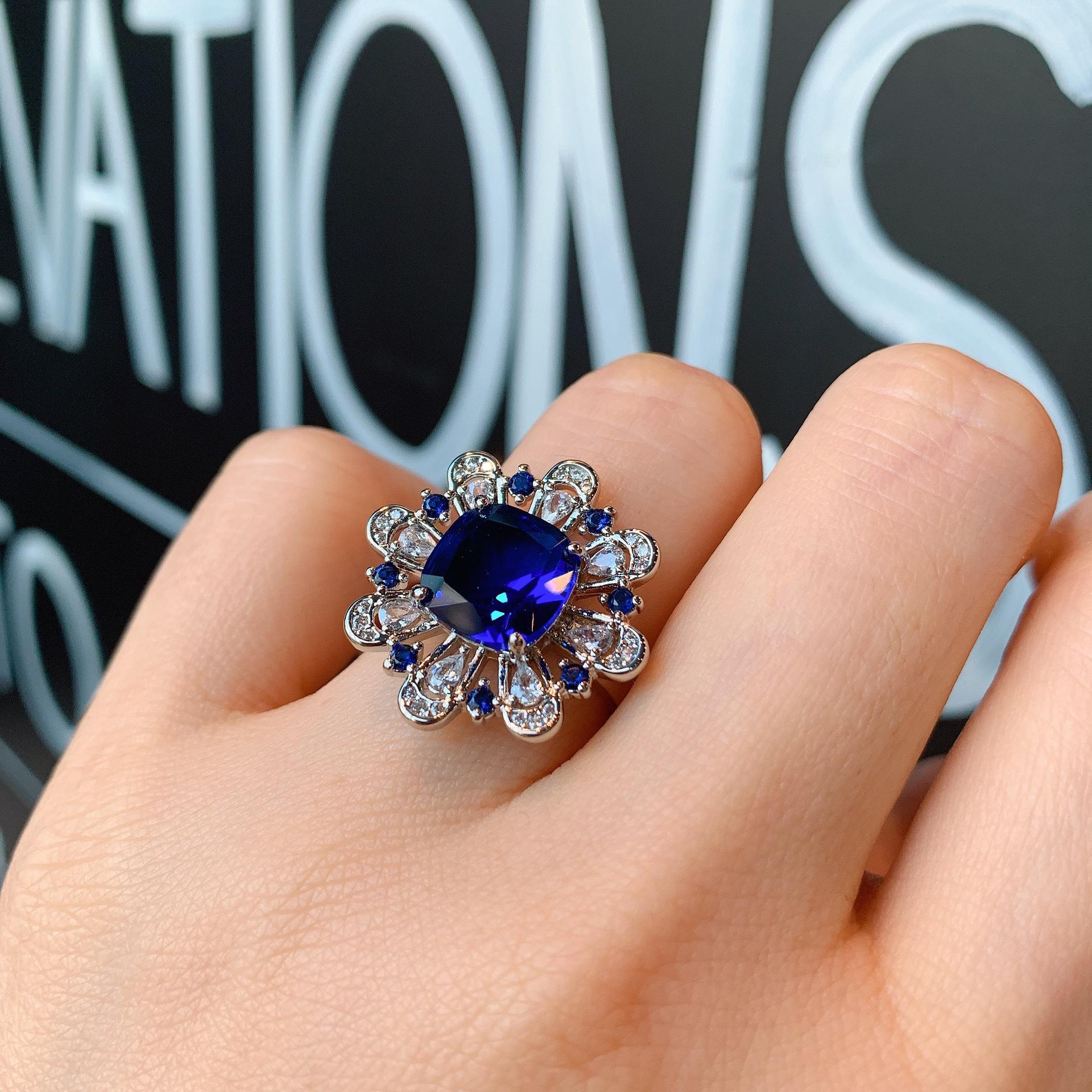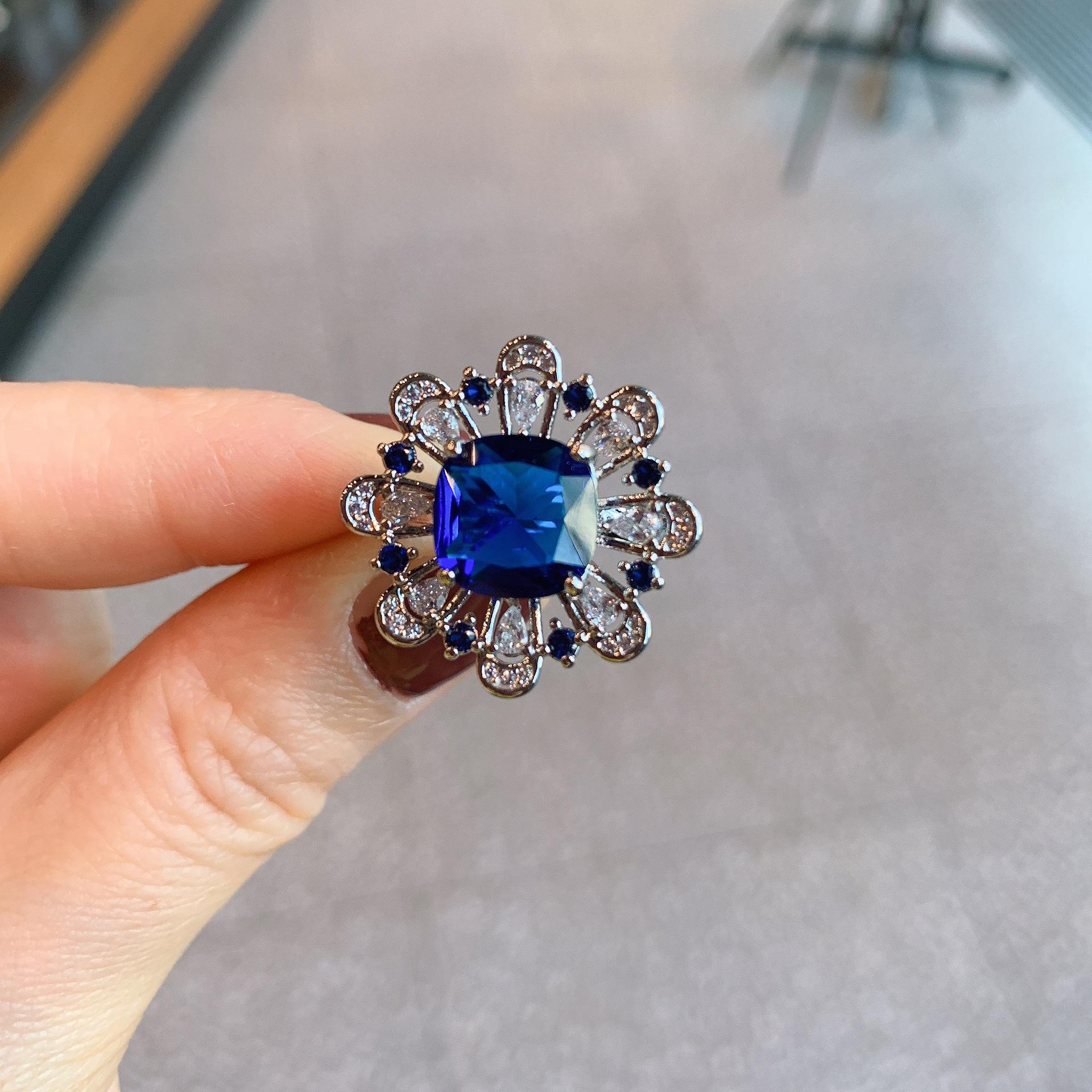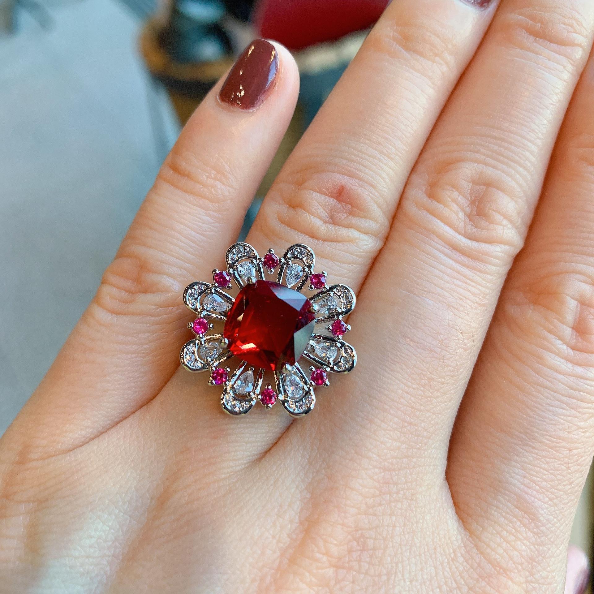Joyería Huayoumei anillo nuevo transfronterizo de rubí anillo ajustable de zafiro real de imitación europeo y americano AliExpress