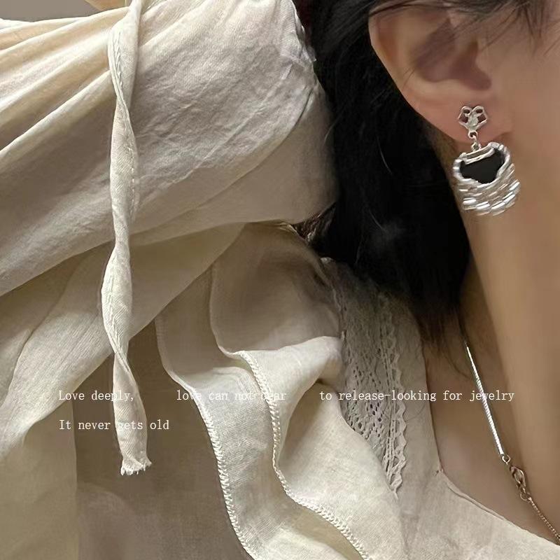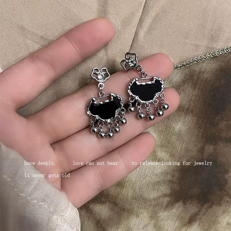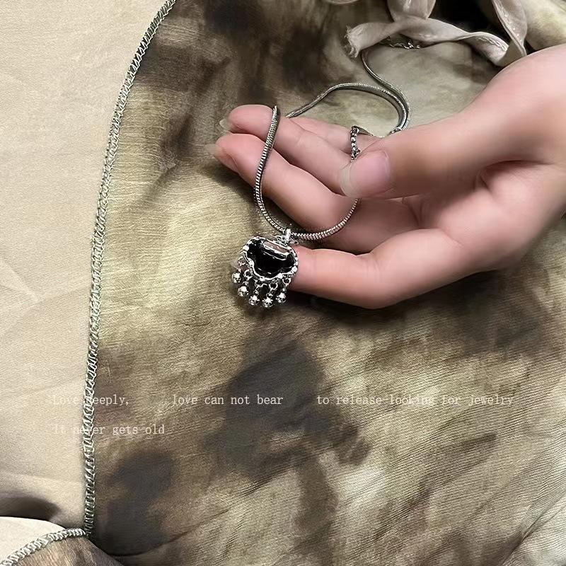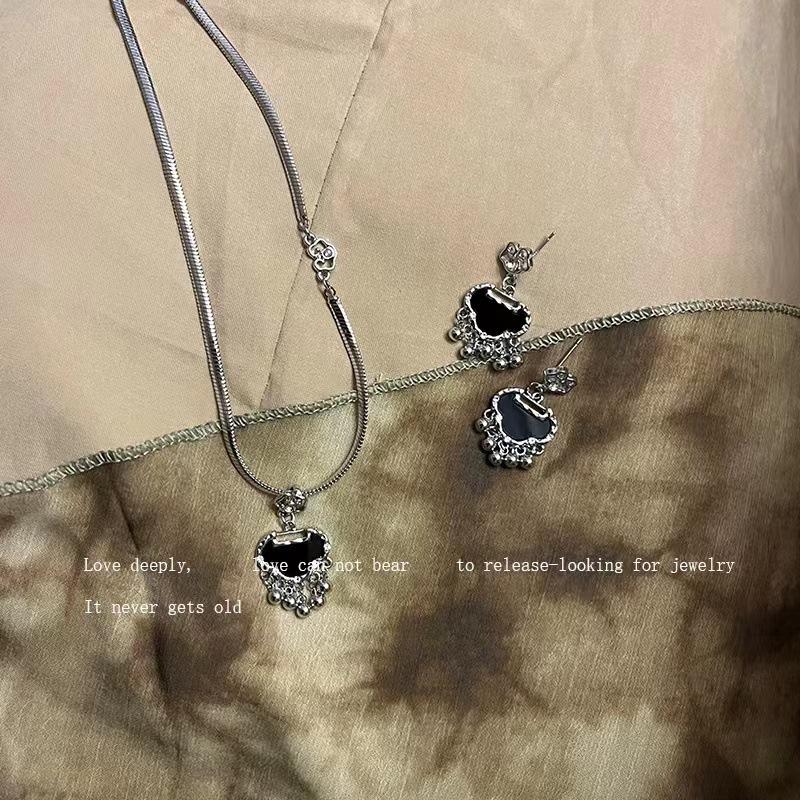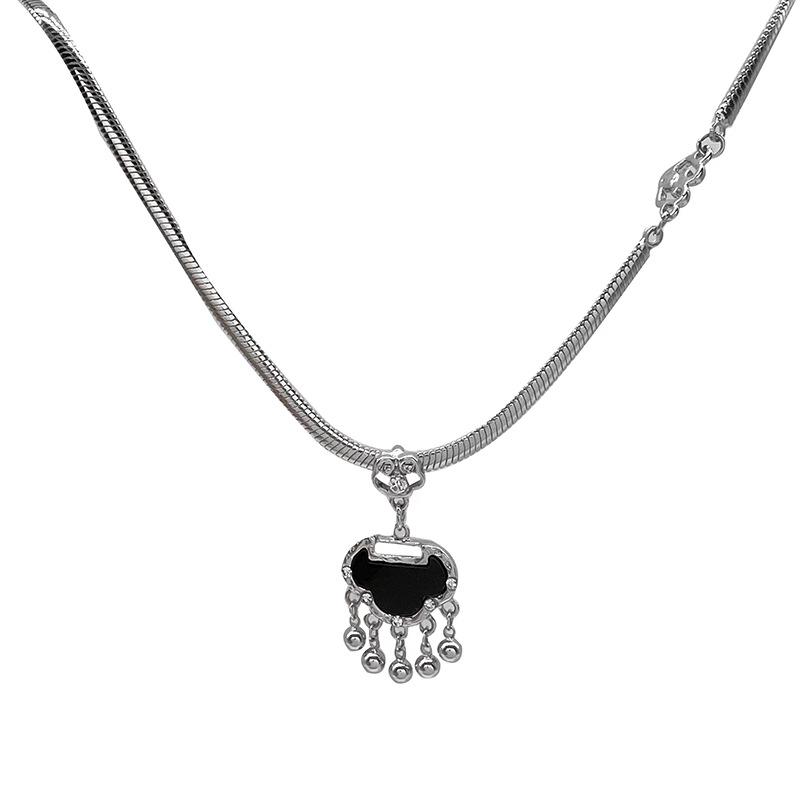 Collar con colgante de candado Ping An negro, pendientes para mujer, nuevos accesorios chinos, cadena de hueso de serpiente, estilo retro de nicho, cadena de lana.