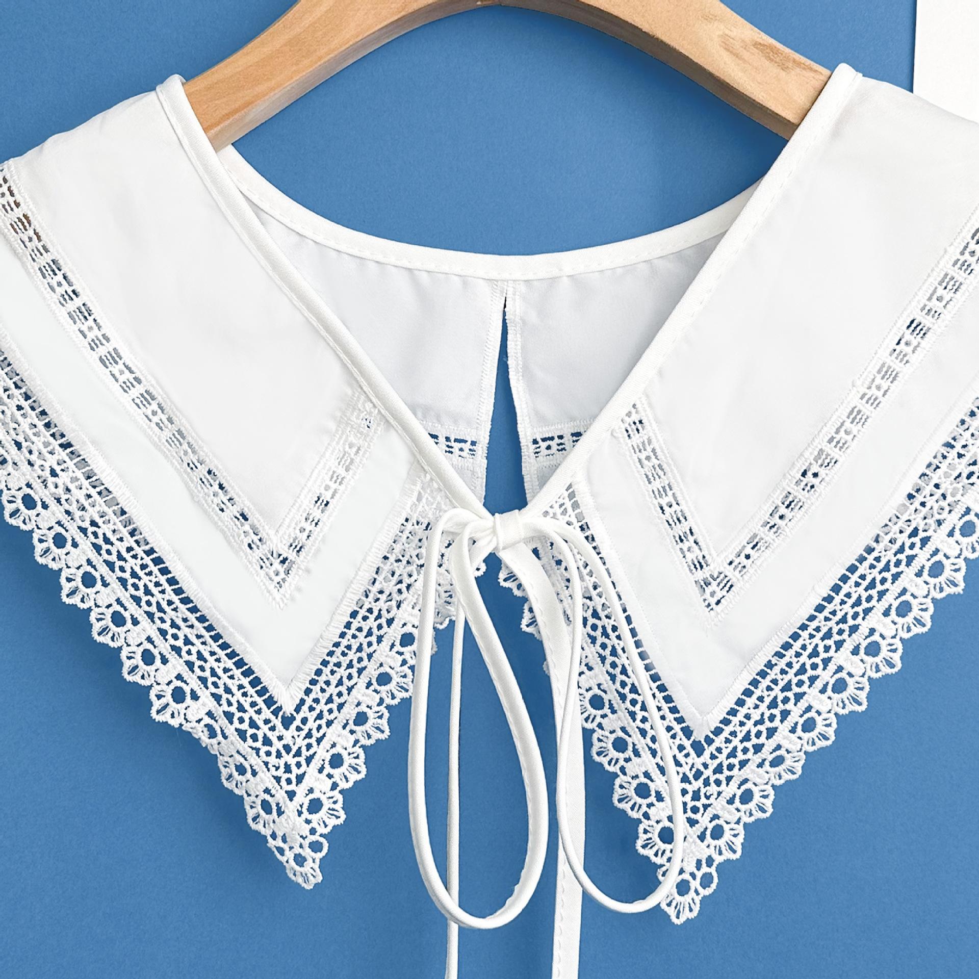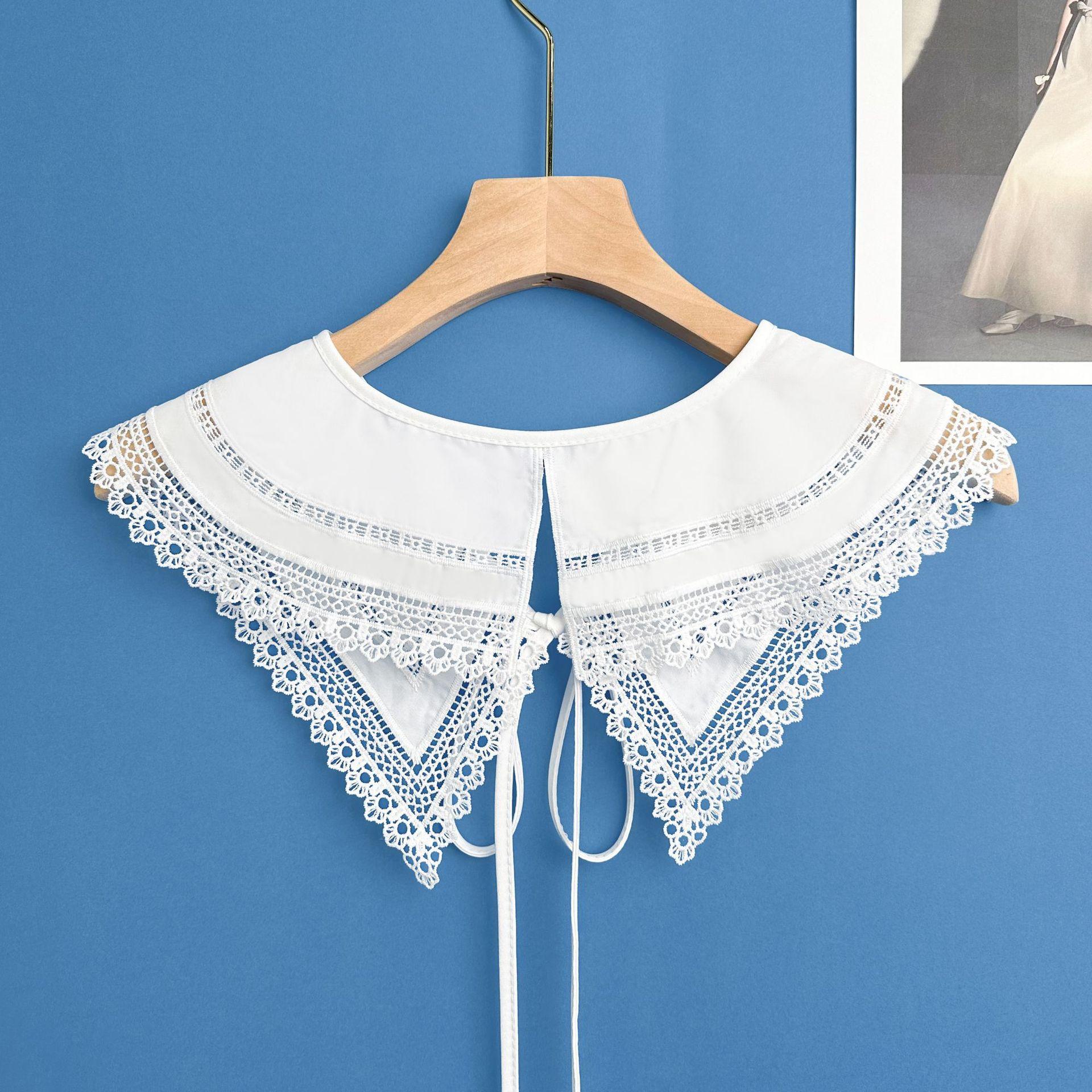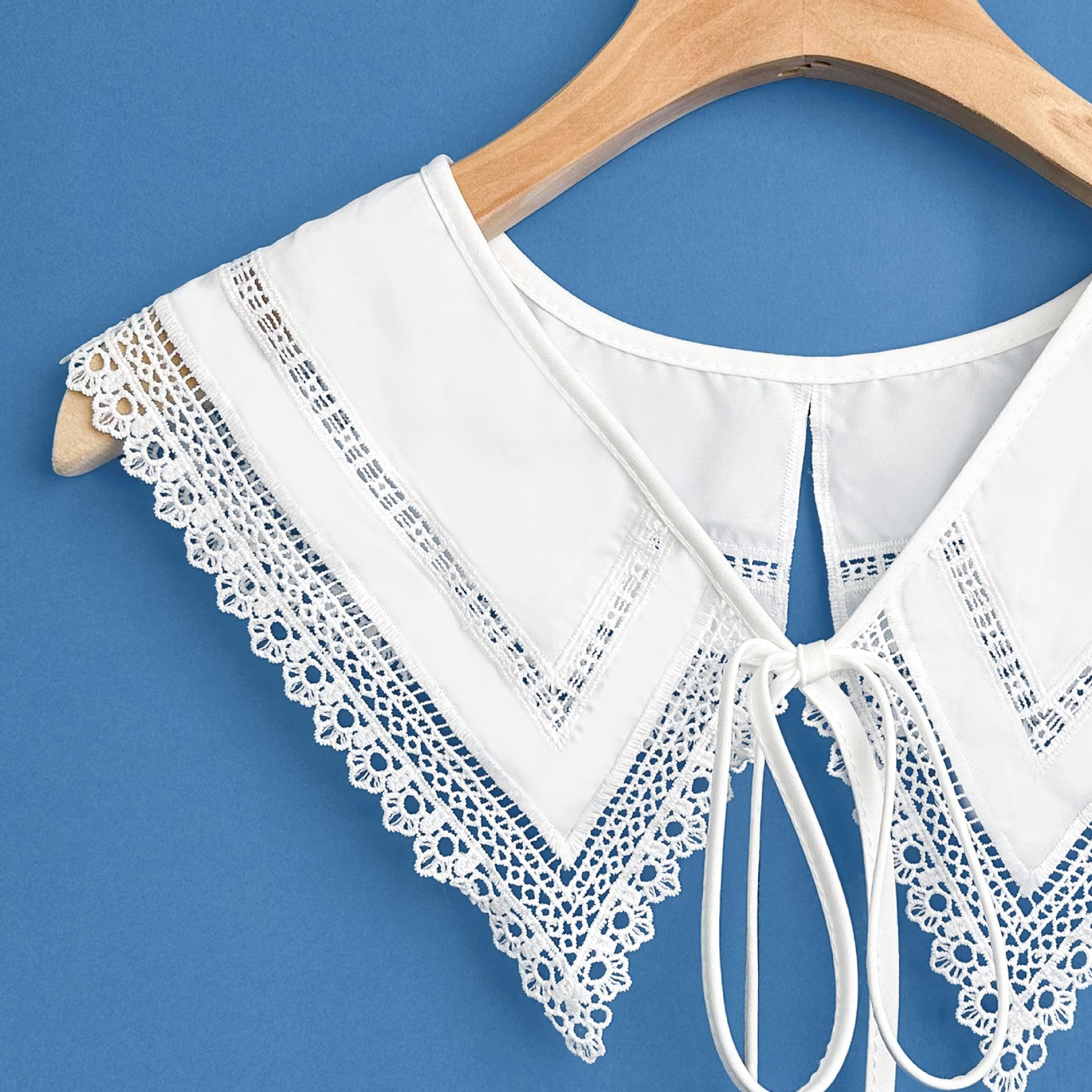 Chal de encaje blanco de estilo coreano, falda exterior a juego con cordones, cuello falso, cuello decorativo multifuncional versátil para mujer