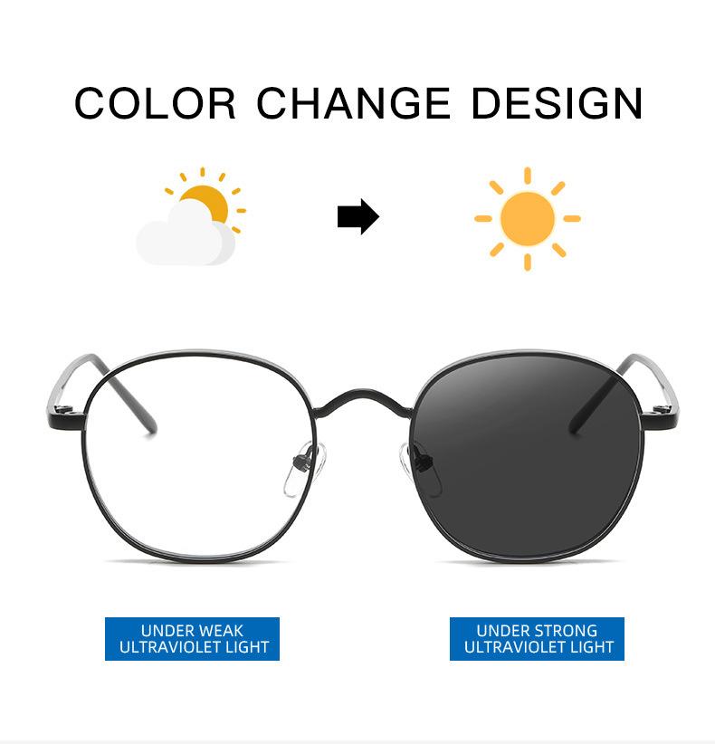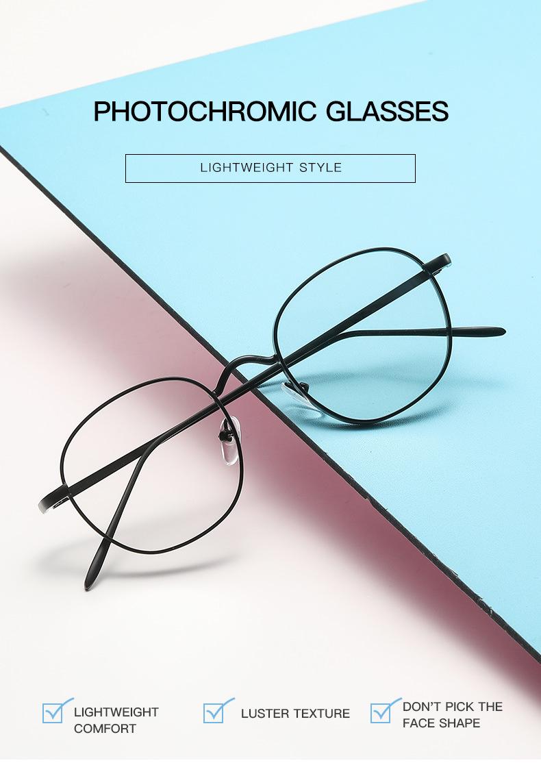 Nuevo Metal Ultraligero de Marco Redondo Transfronterizo Cambiante de Color Anti-Luz Azul Espejo Plano Gafas de Moda de Alta Gama para Hombre