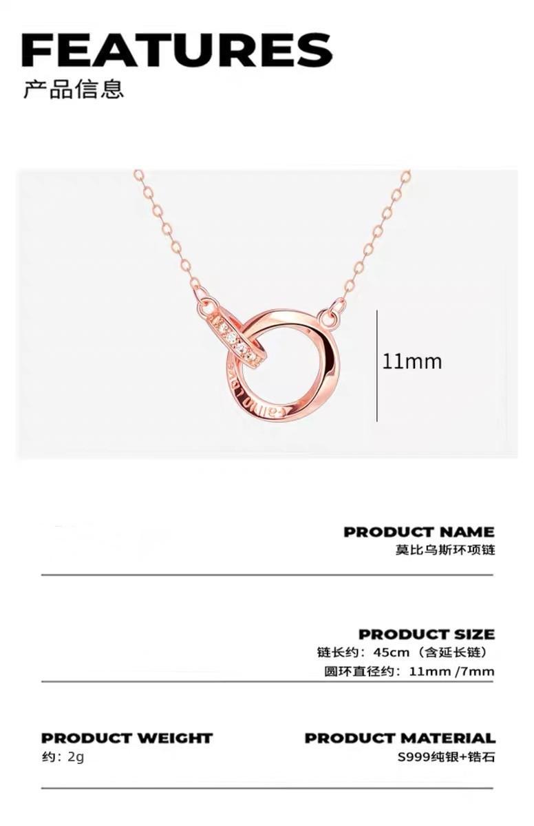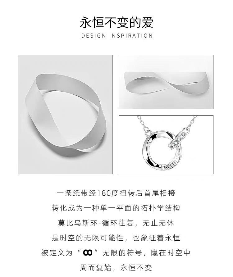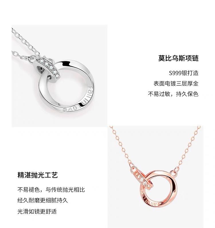 Collar de pareja con anillo Mobius de plata esterlina S999, nuevo colgante de lujo a la moda, cadena de clavícula, joyería al por mayor