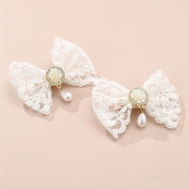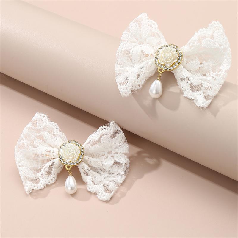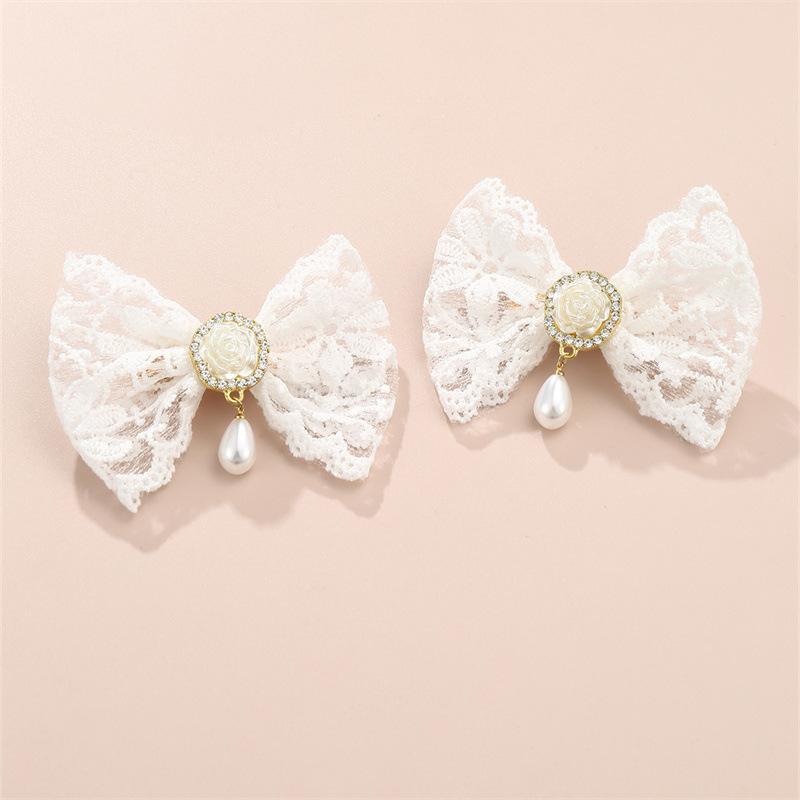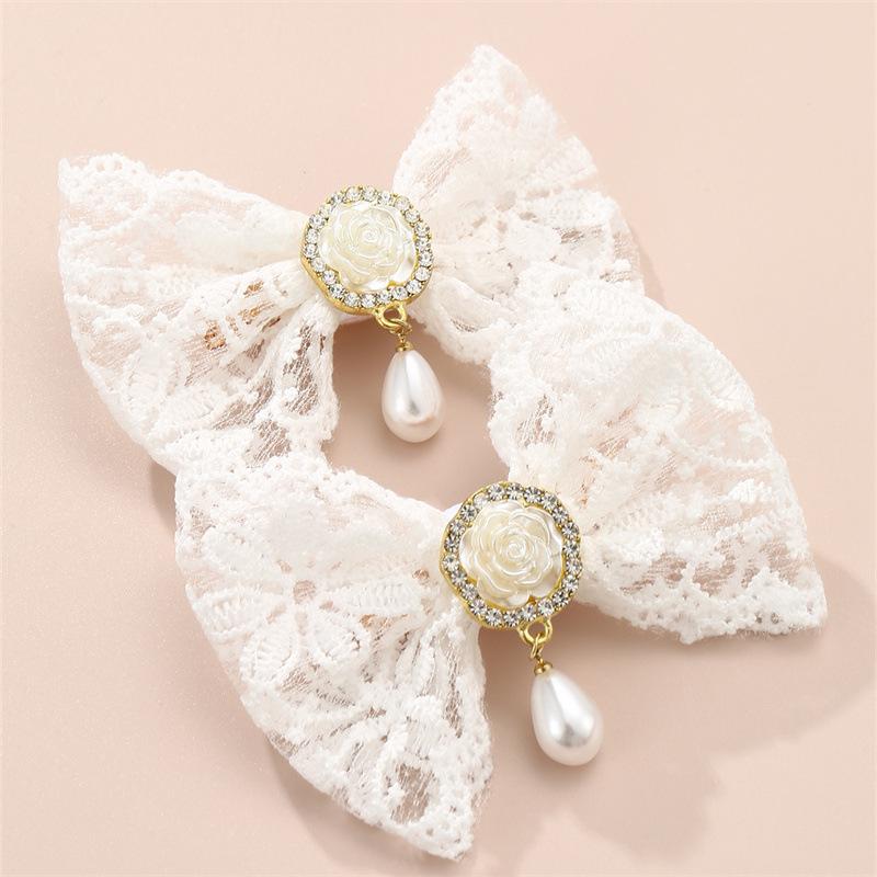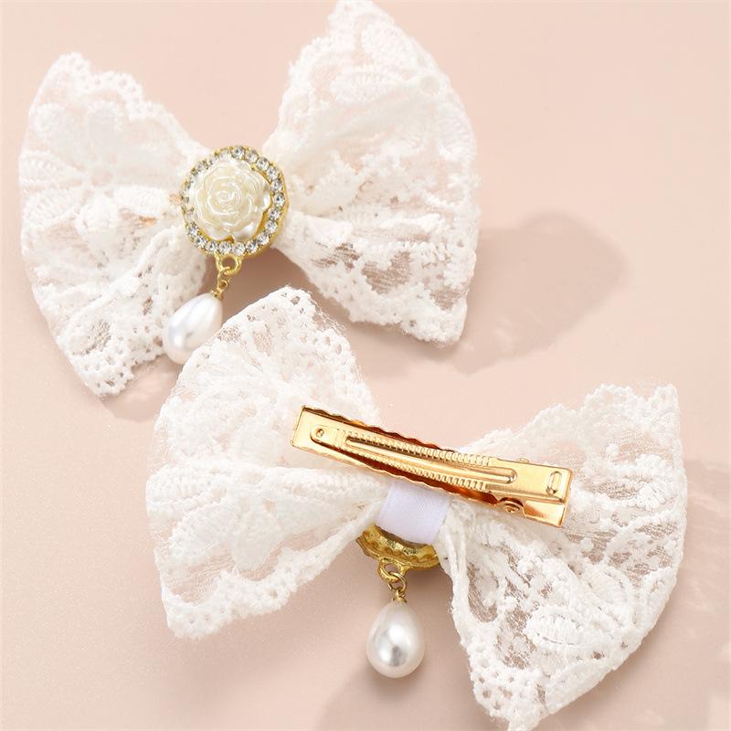 Nuevos accesorios para el cabello transfronterizos, diseño de nicho, lazo de encaje, colgante de gota de agua rosa, horquilla sencilla para niños, traje