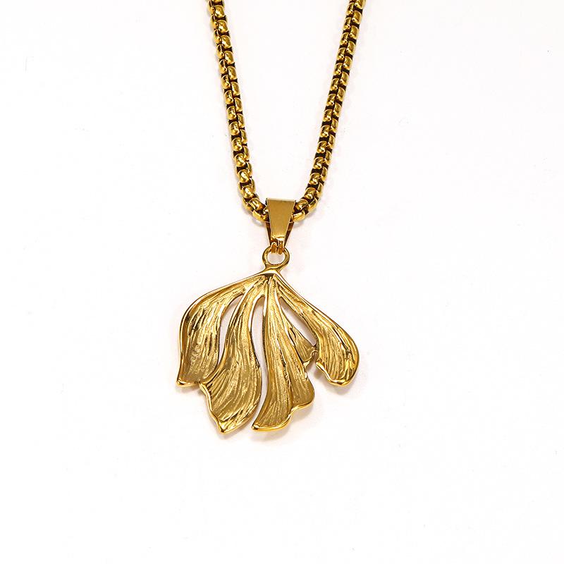 Collar con colgante de hoja de estilo coreano, moda creativa, acero de titanio, oro de 18 quilates, cadena de suéter para hombres y mujeres, venta directa de fábrica