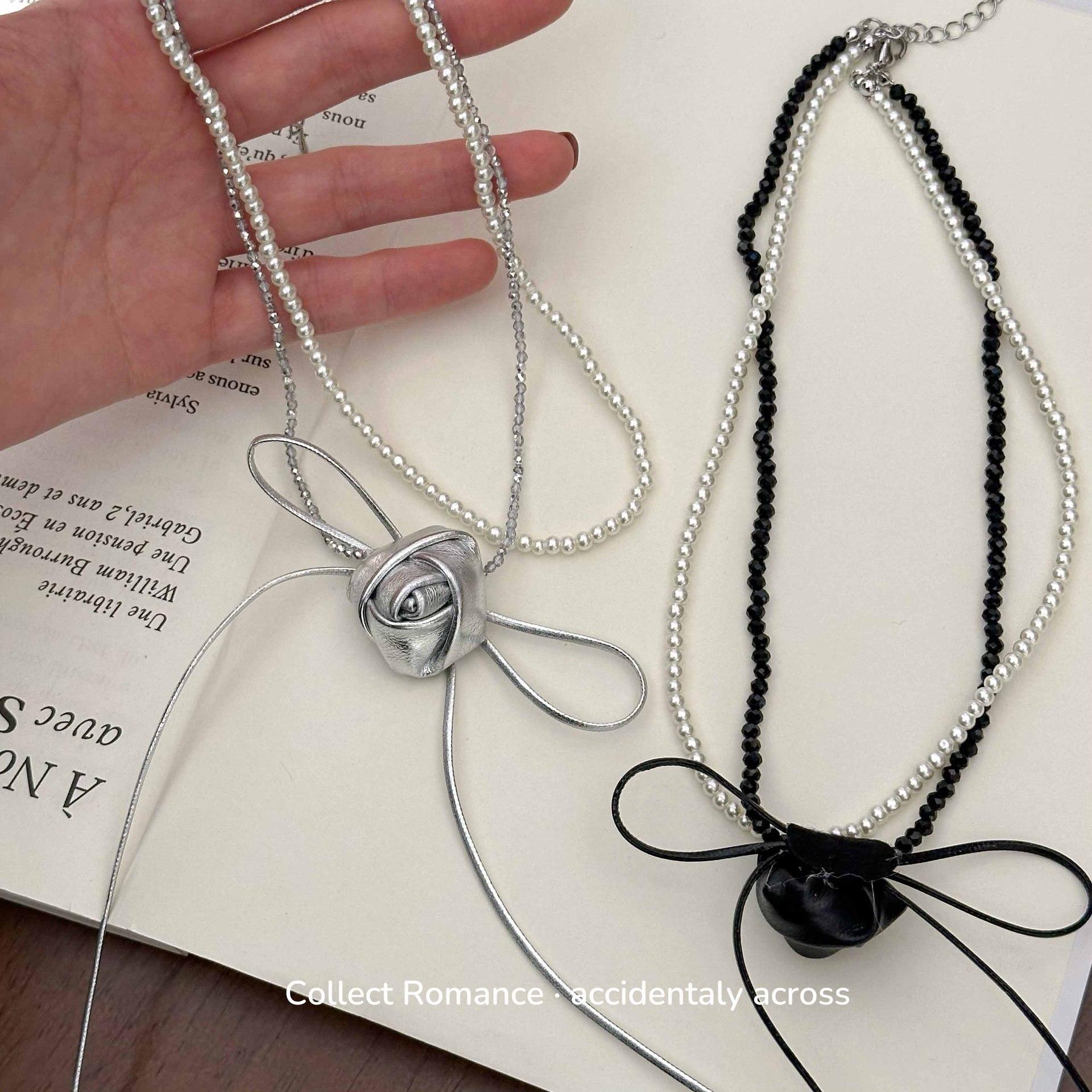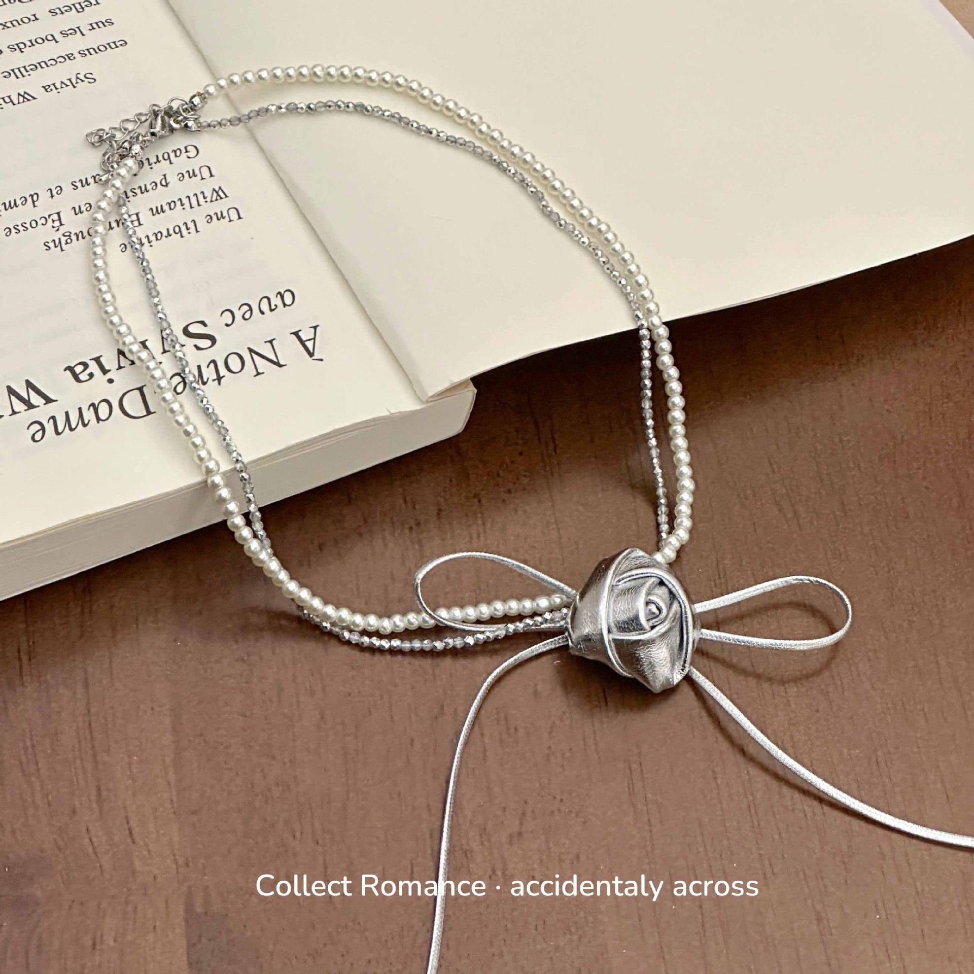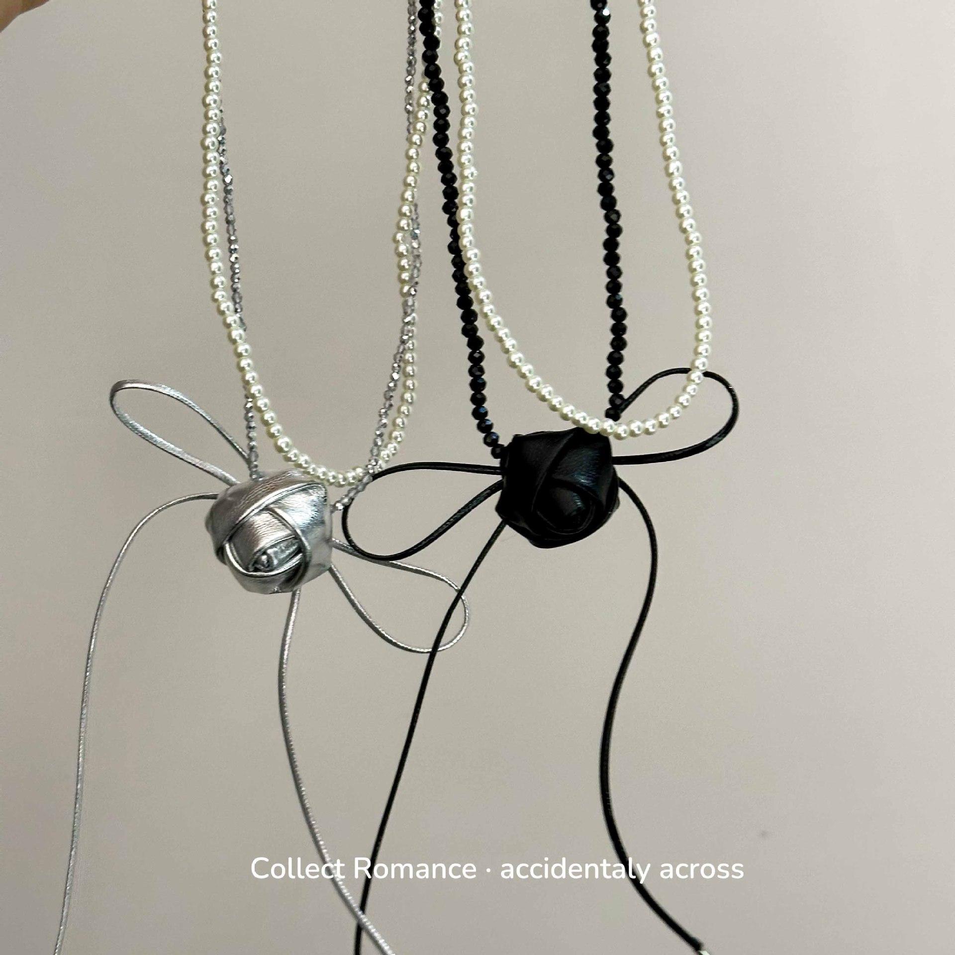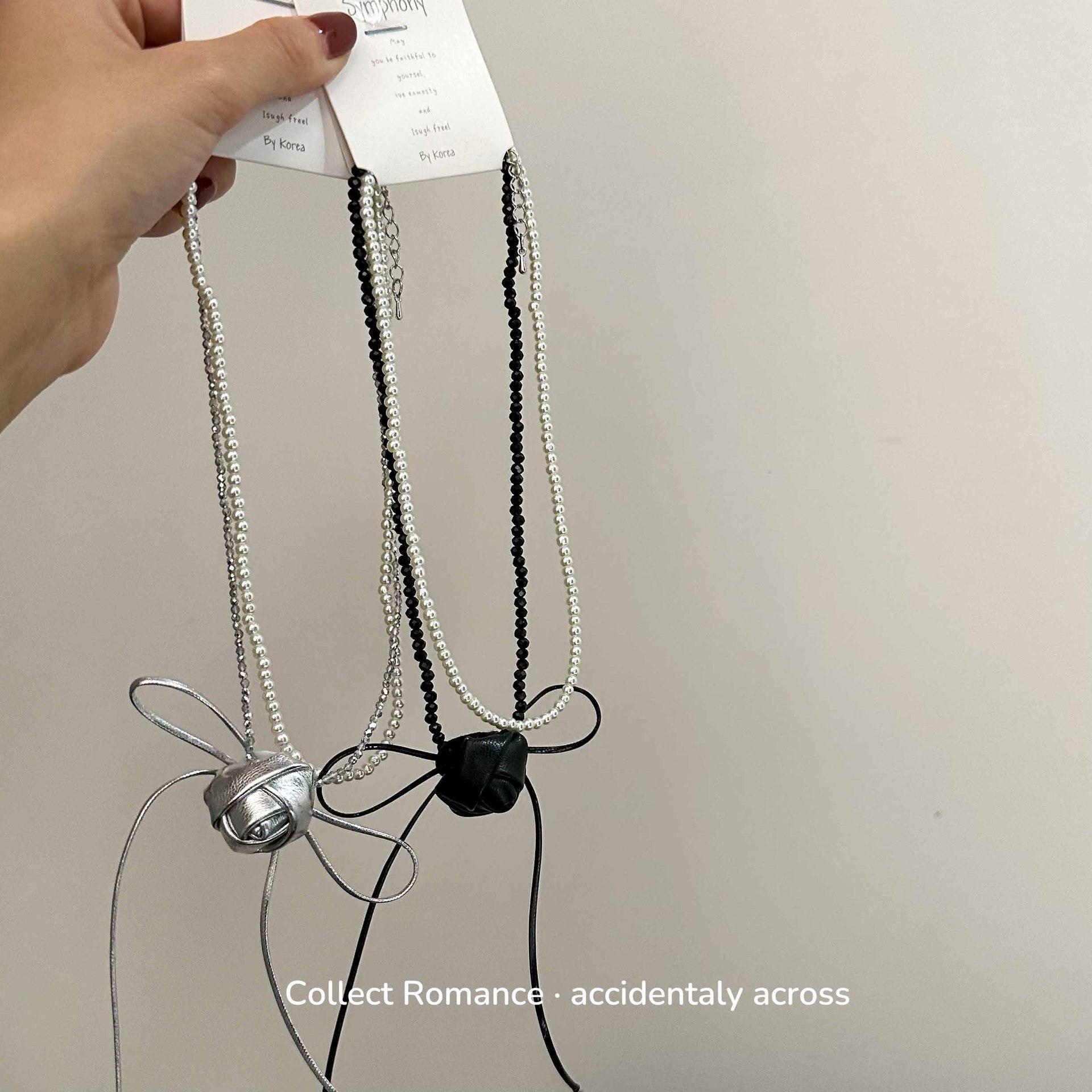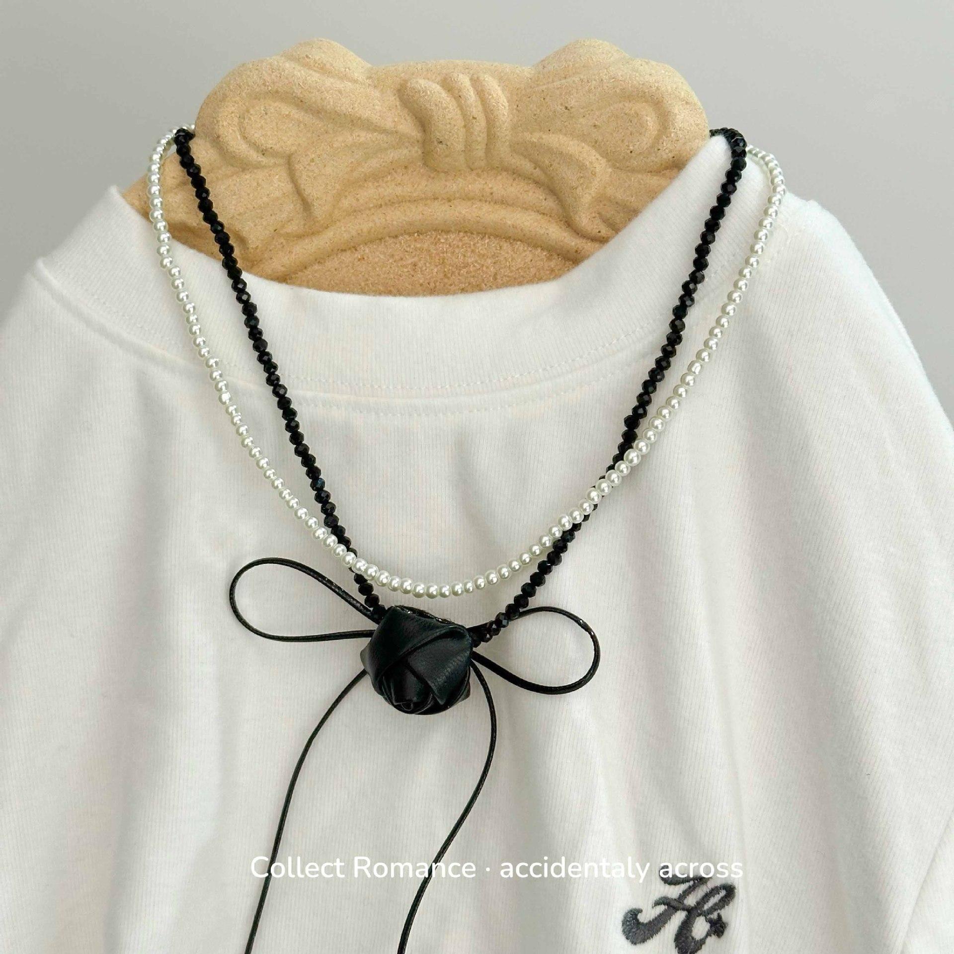 Accesorios Nuevo collar de perlas rosa Cadena de suéter de nicho única Cadena de clavícula de lujo ligera para mujer