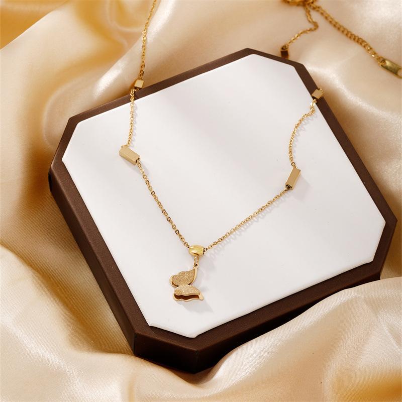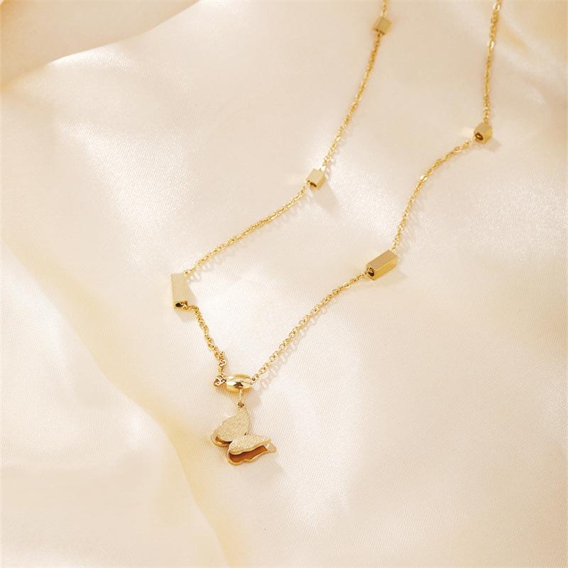 Nuevo collar de mariposa doble de alto temperamento Moxi, moda femenina, Joker, cadena de clavícula de acero inoxidable, venta al por mayor de Yiwu