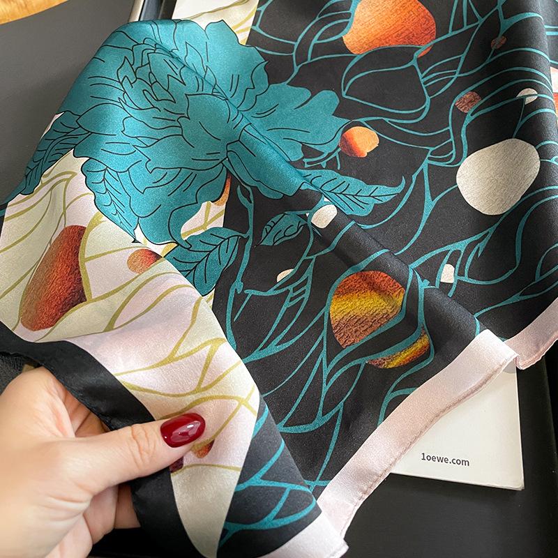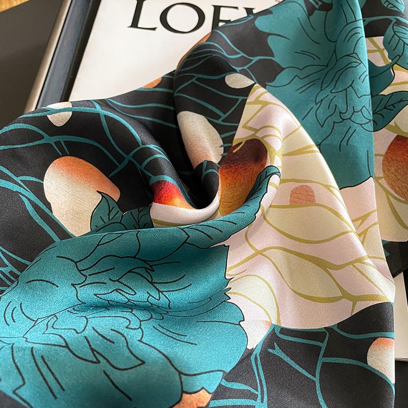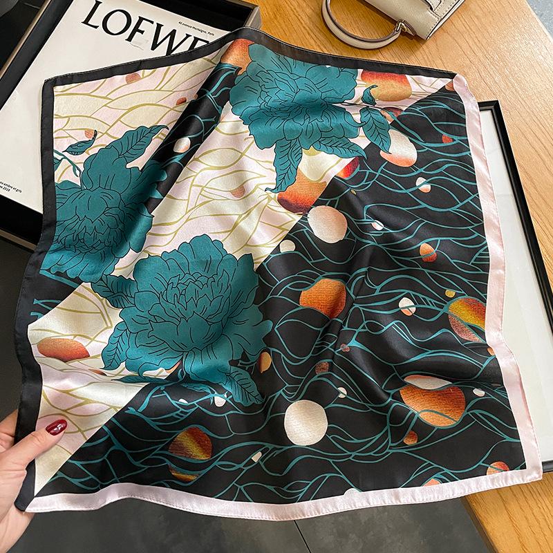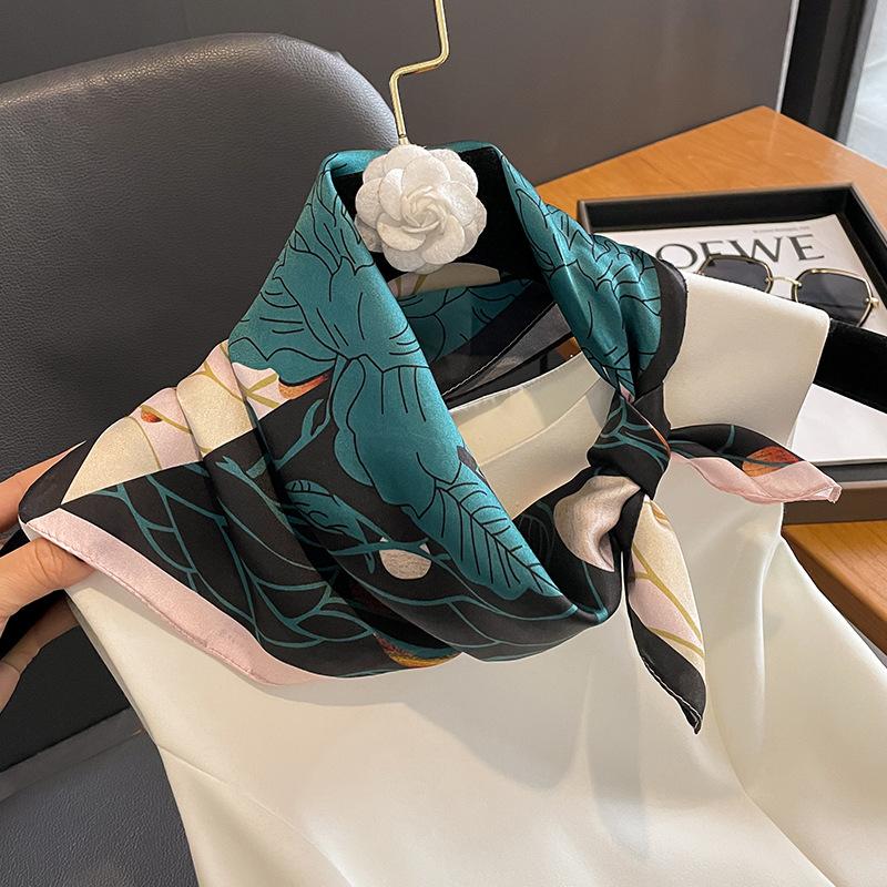 Bufanda cuadrada de seda de 53 cm para mujer, elegante, de seda morera, decorativa, estampada, primavera y otoño de 2023