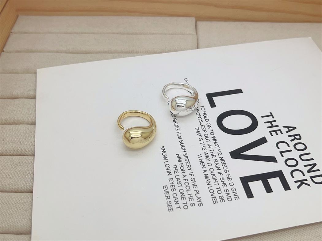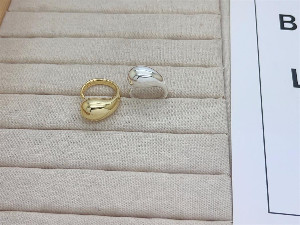 Anillo Simple de Gota de Agua para Mujer Moda Retro Exagerado Elegante Combinable Estilo Frío Plata S925 Anillo Abierto para Dedo Anillo para Dedo de Comida