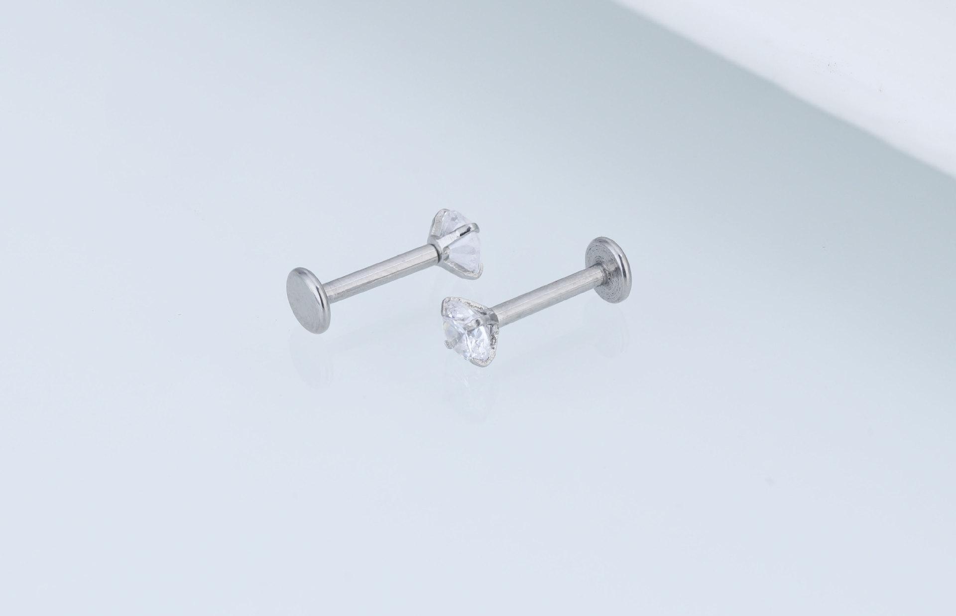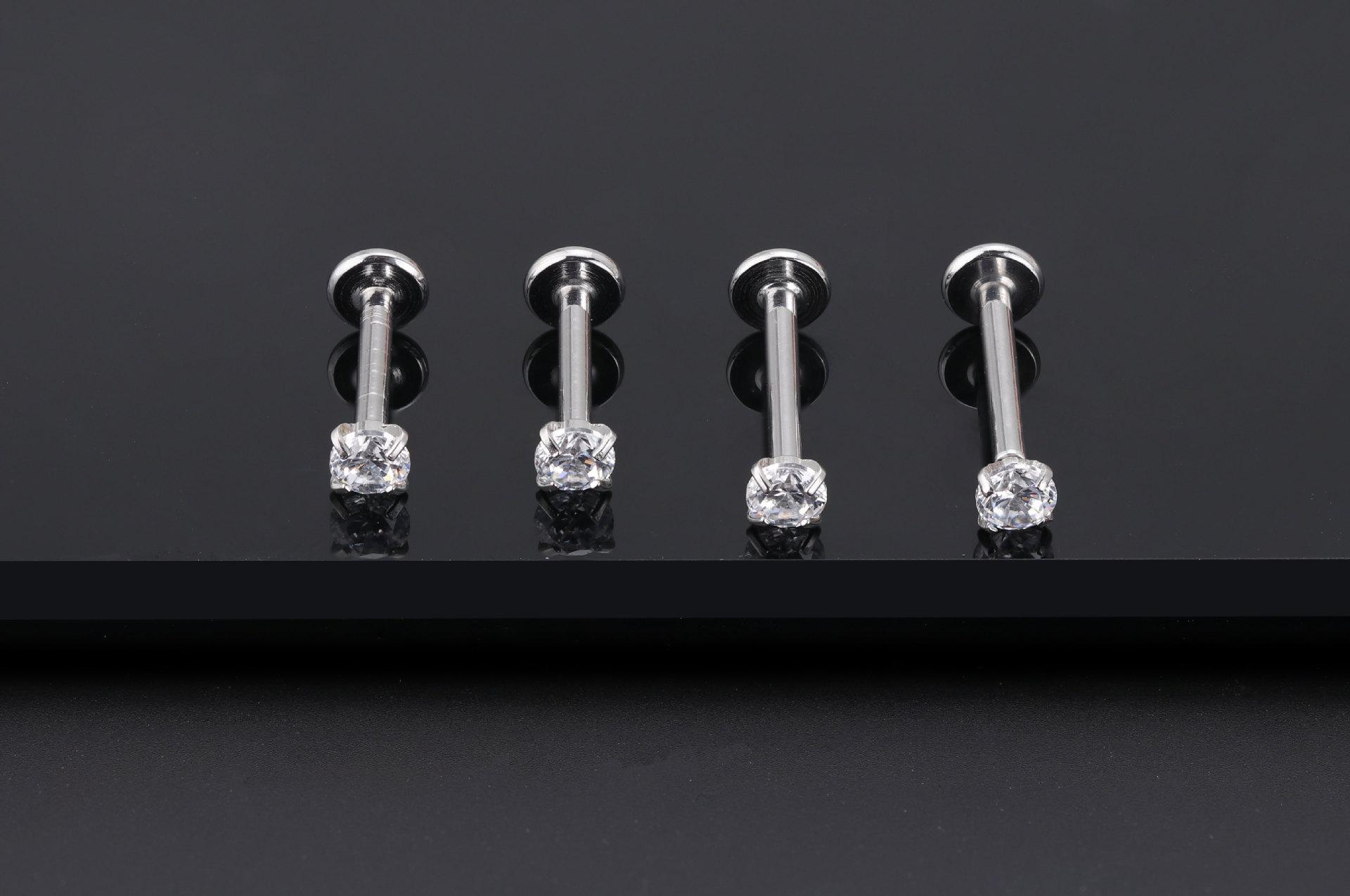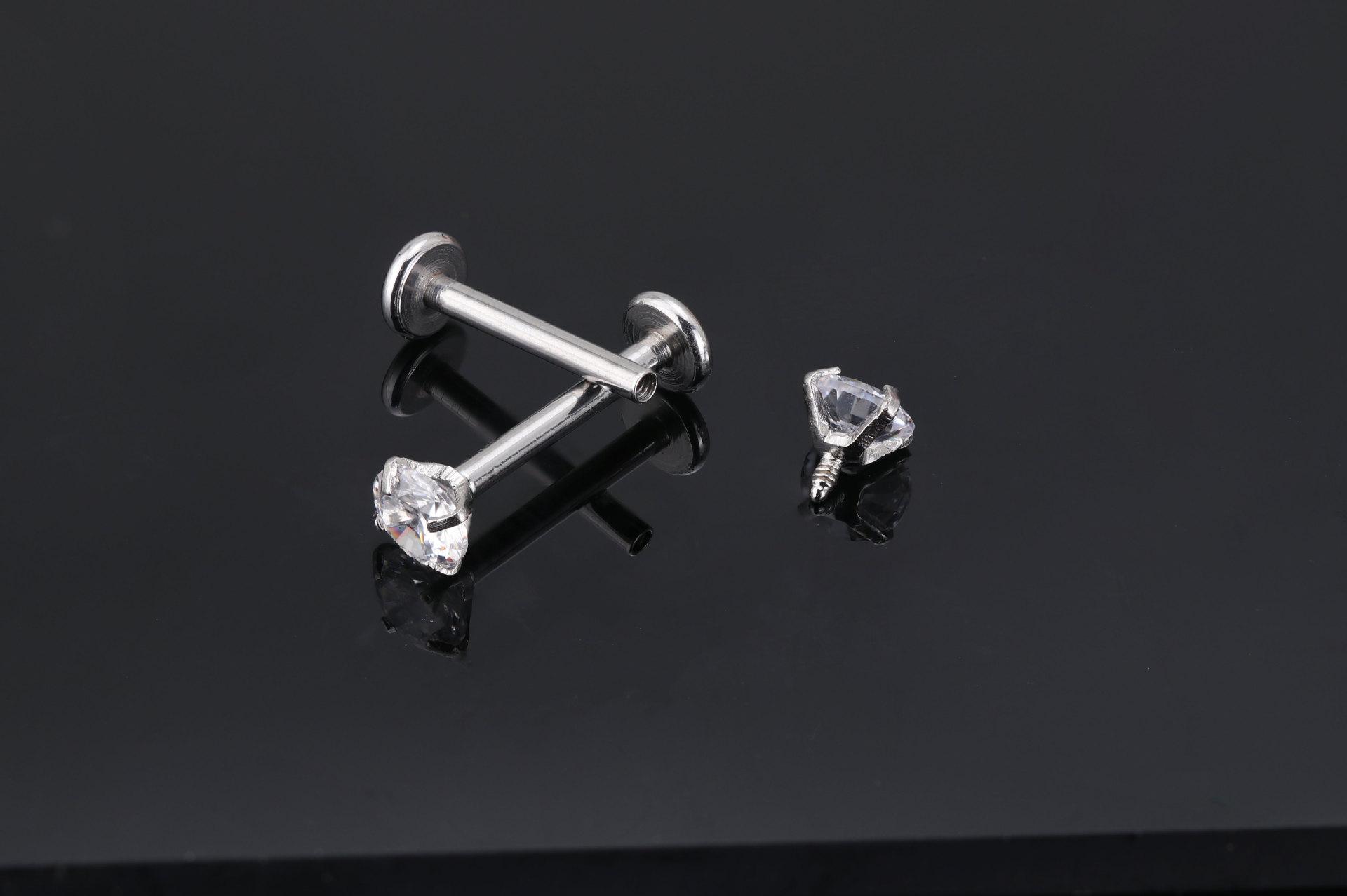 Diente interno redondo de cuatro garras circón acero inoxidable labio uña 3A uña de hueso de oreja anillo labial en forma de corazón joyería para perforación accesorios transfronterizos