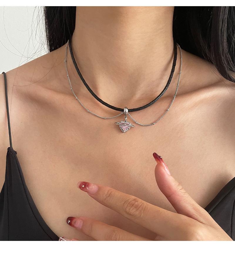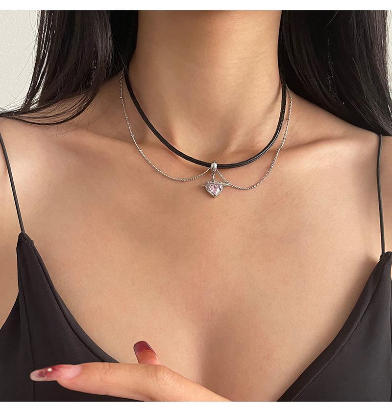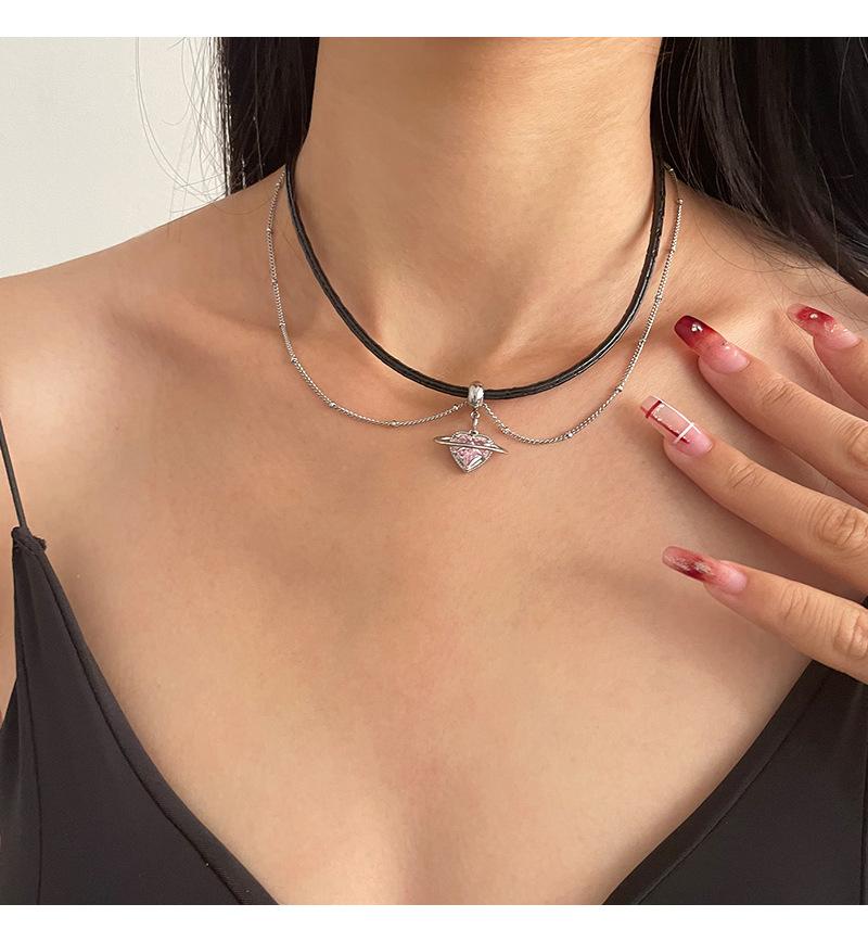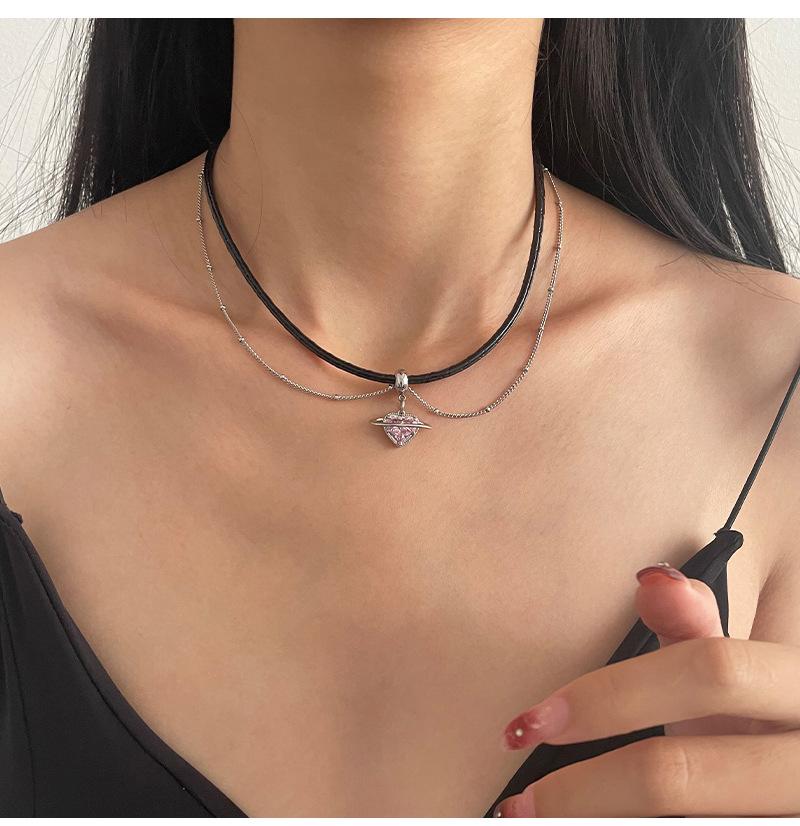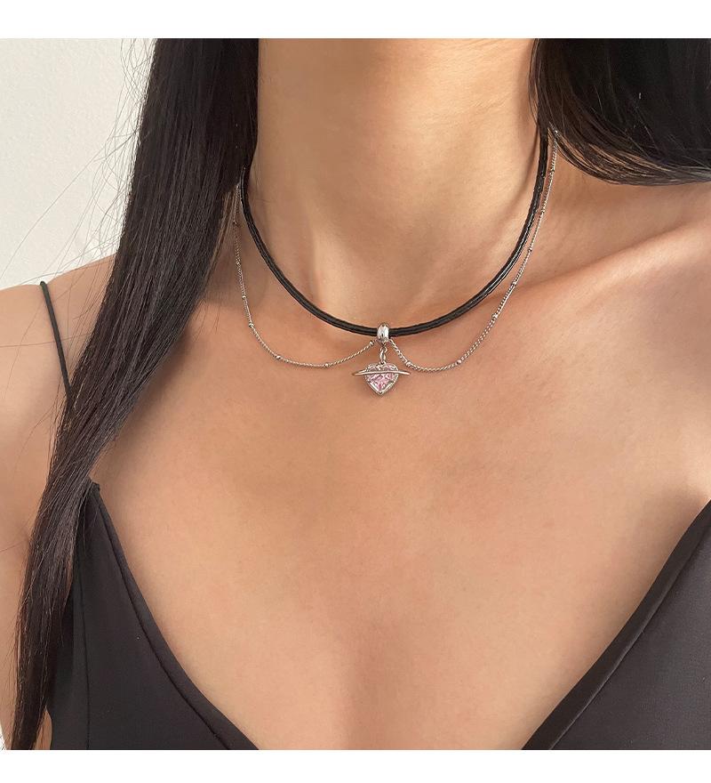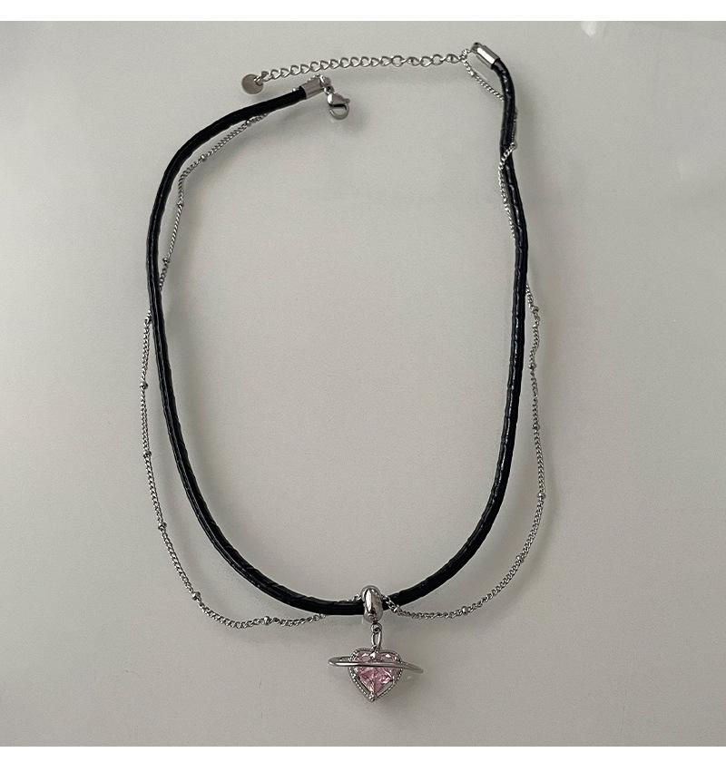 Collar de doble capa con un dulce y fresco diseño de nicho de amor rosa, gargantilla con colgante, cadena de clavícula personalizada para celebridades de Internet.