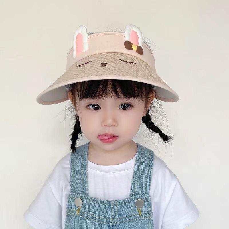 Sombrero hueco de protección solar para niños, sombrero de verano de estilo coreano con ala grande, bonito sombrero de sol para bebé con diseño de conejito de dibujos animados