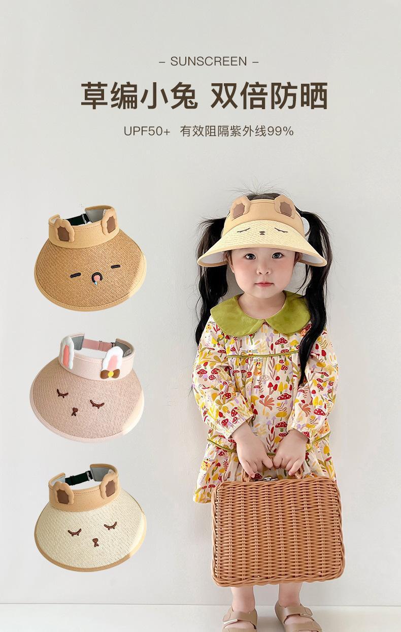 Sombrero de sol de verano para niños, transpirable, bonito, para exteriores, para bebé, de paja, con orejas de conejo, con la parte superior vacía, para la marea