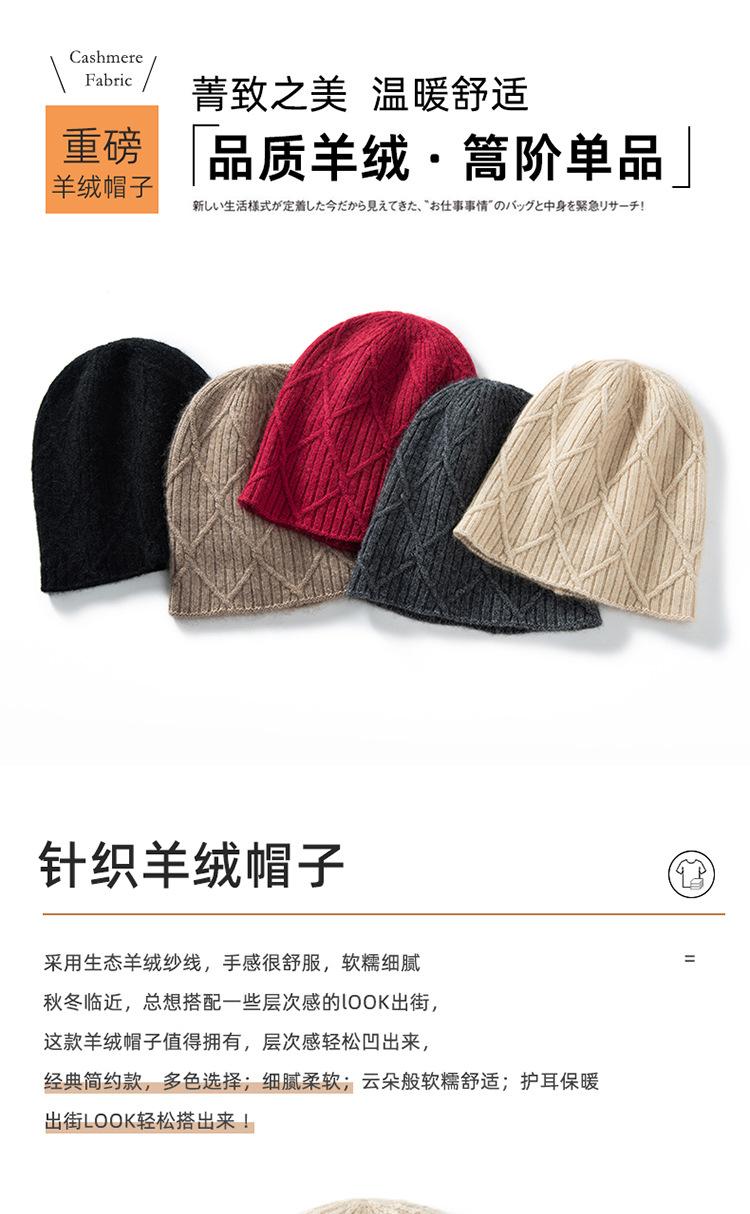 Gorro de cachemira de color puro para mujer, otoño e invierno, grueso, nuevo, versátil, estilo coreano, gorro de punto cálido de moda, con forma de cúpula, cara pequeña