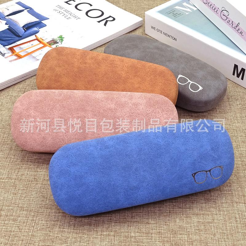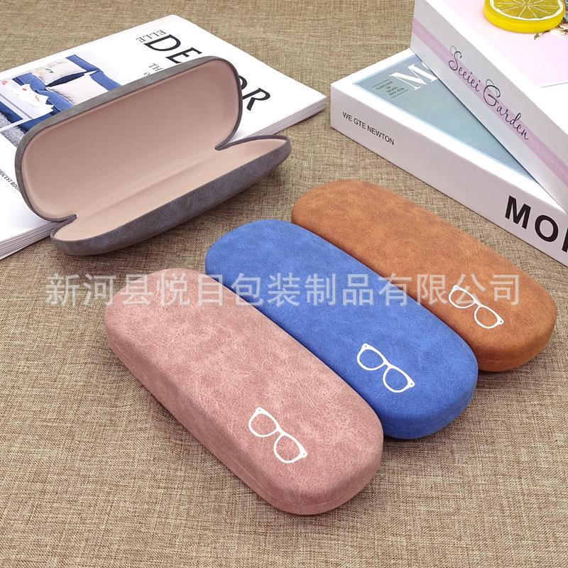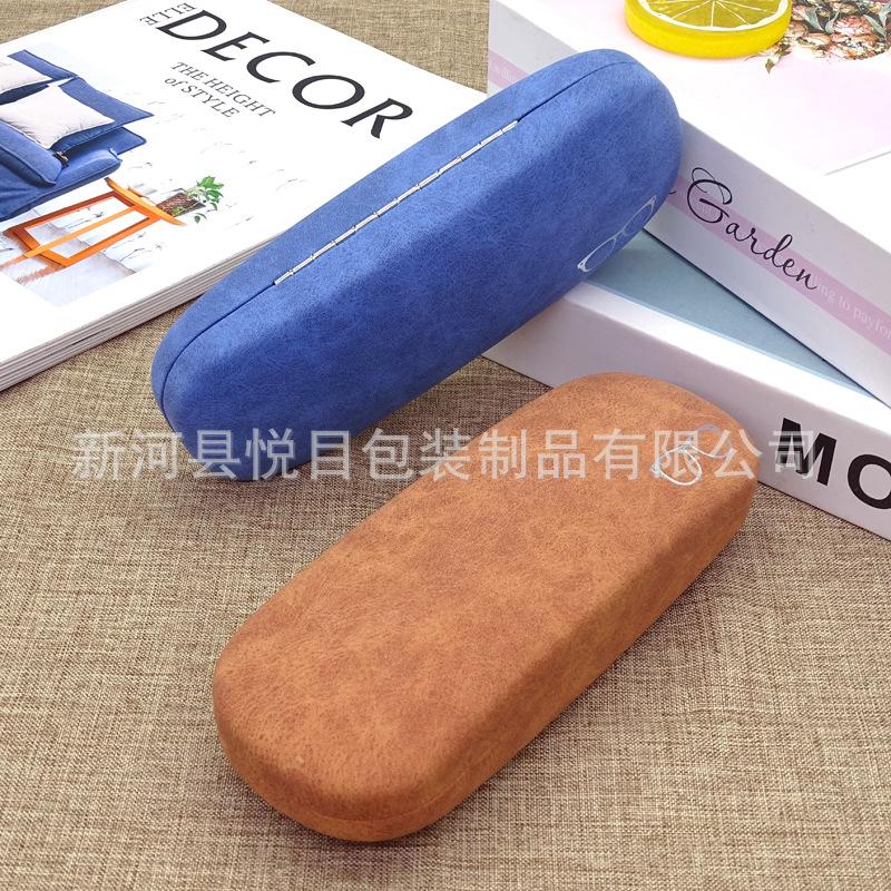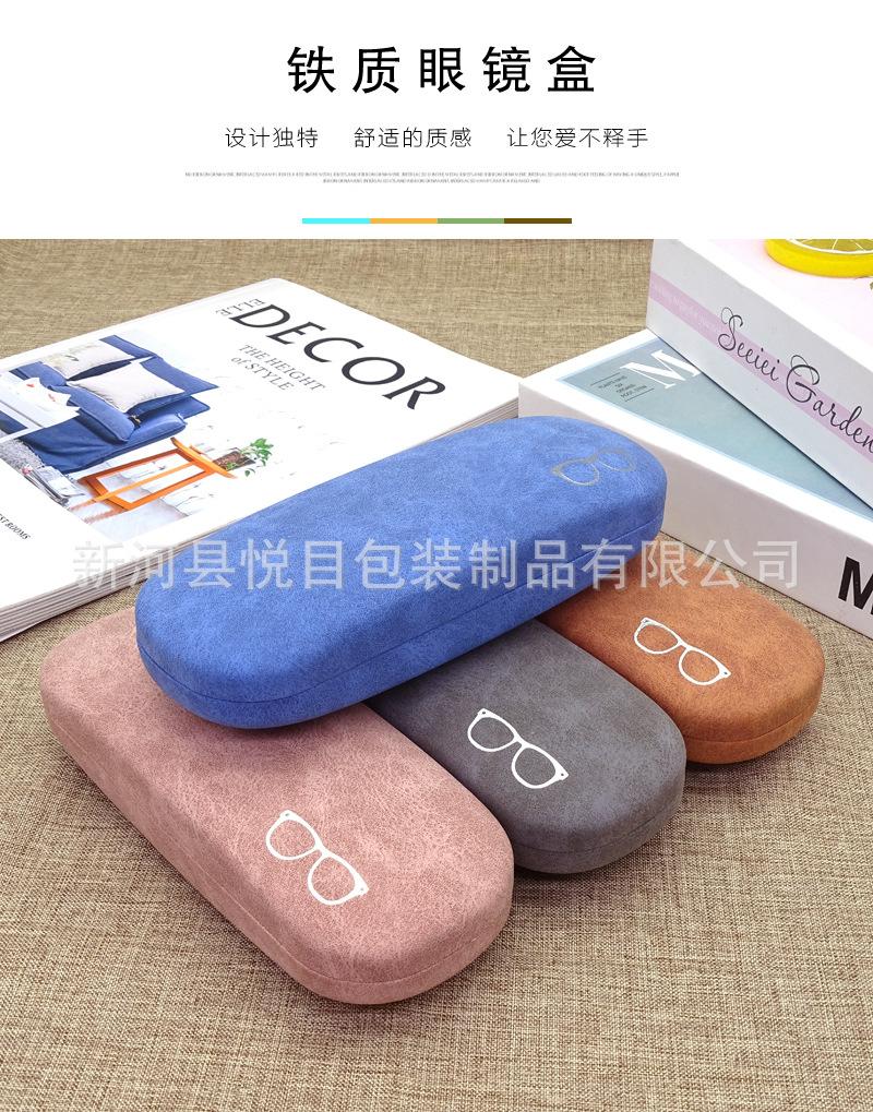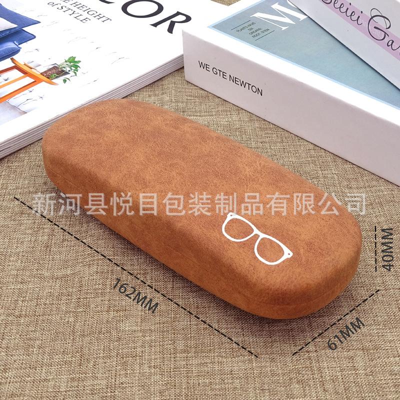 Estuche para gafas de miopía con marco de placa de caja de hierro de cuero con patrón Yangba para estudiantes, estuche para gafas ópticas al por mayor, nombre de tienda imprimible