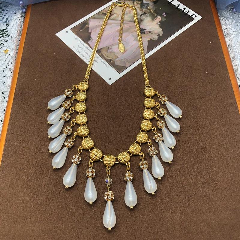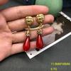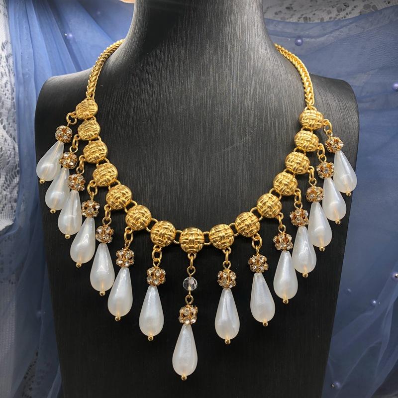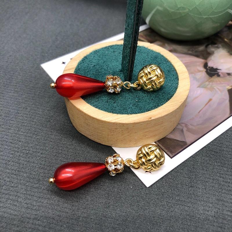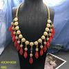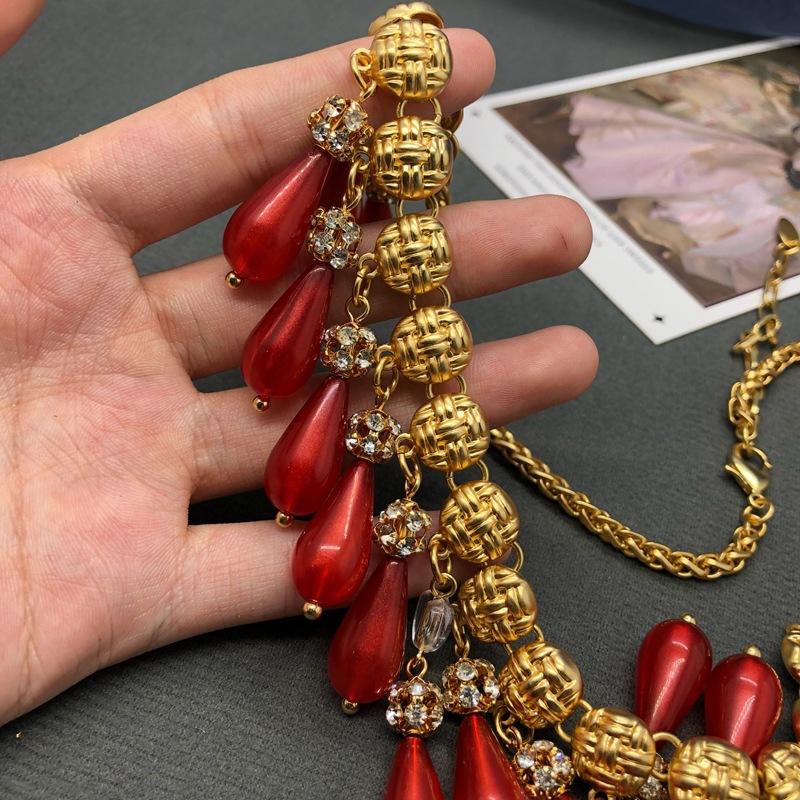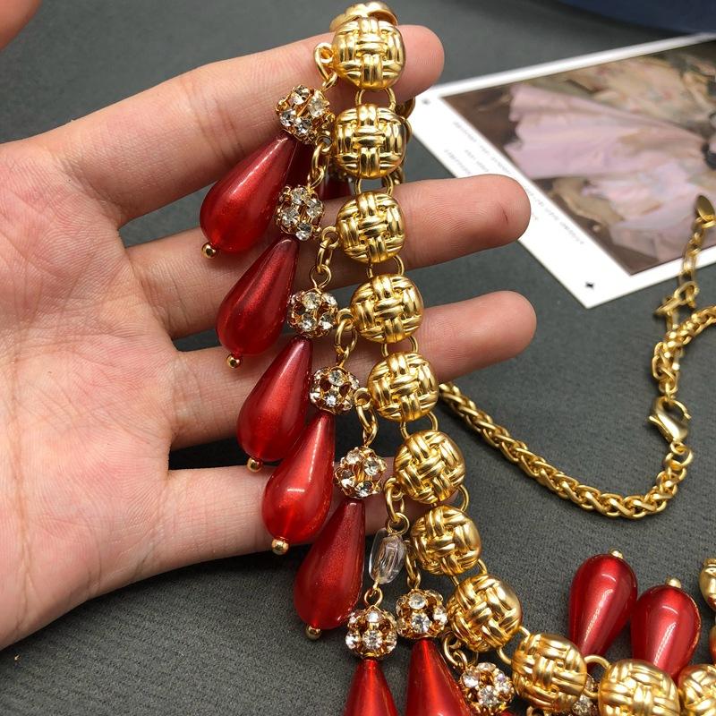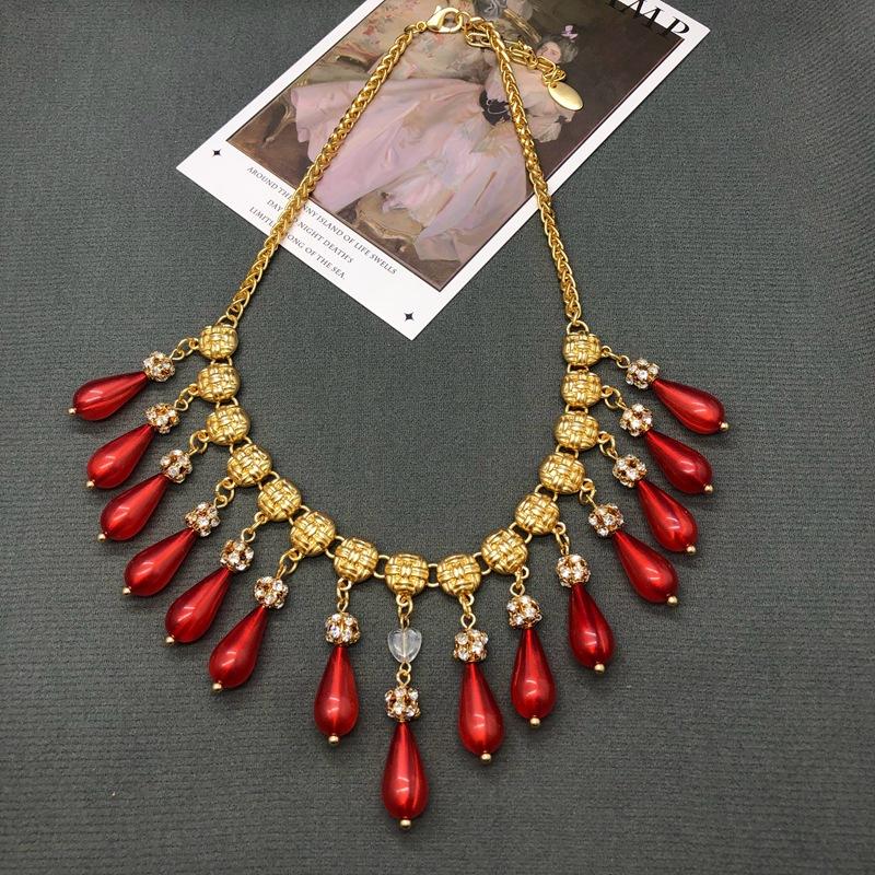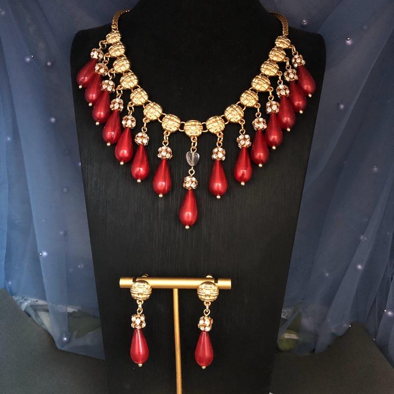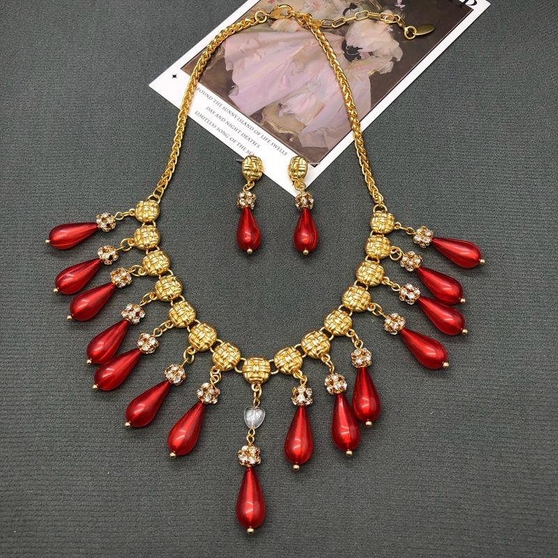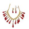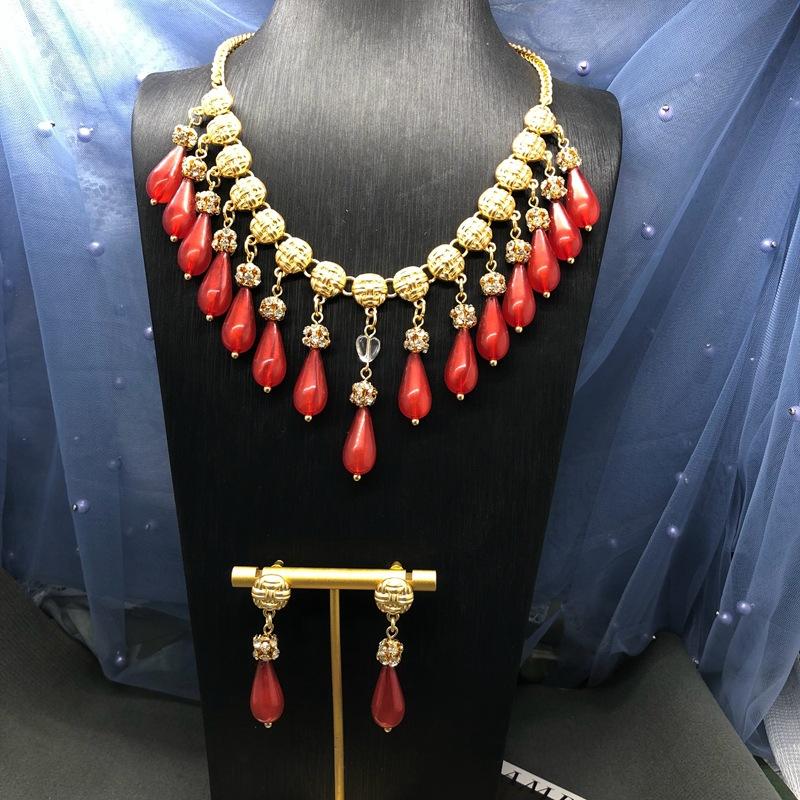 Joyería Antigua Media de Qingdao Sentido Avanzado del Diseño Nuevo Colgante de Gota de Agua Roja Borla Collar Aretes con Traje de Diamante de Piedra Preciosa
