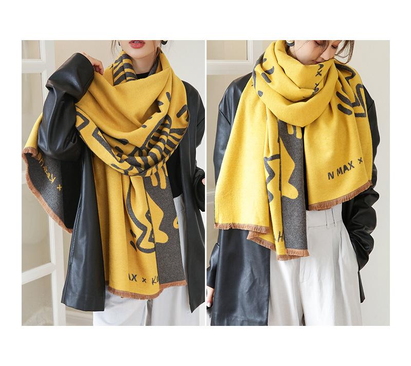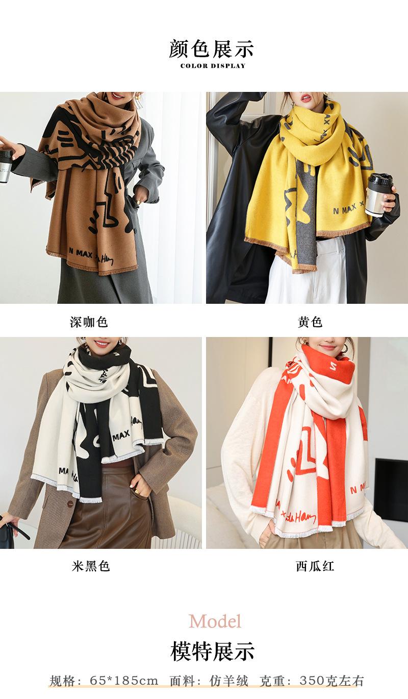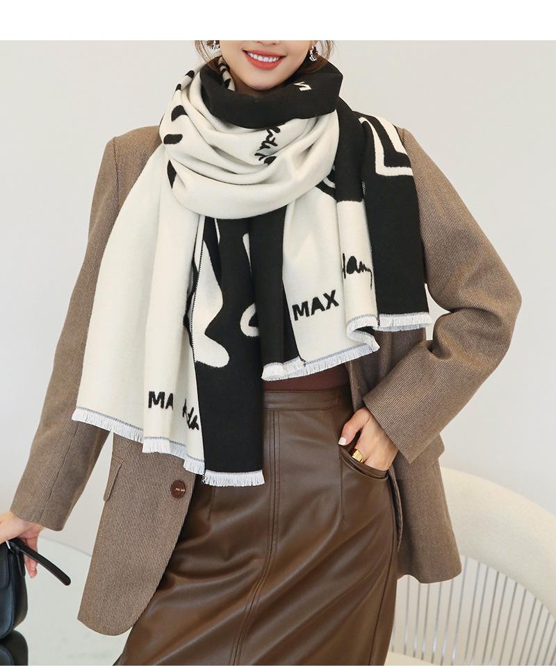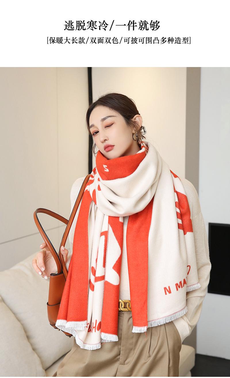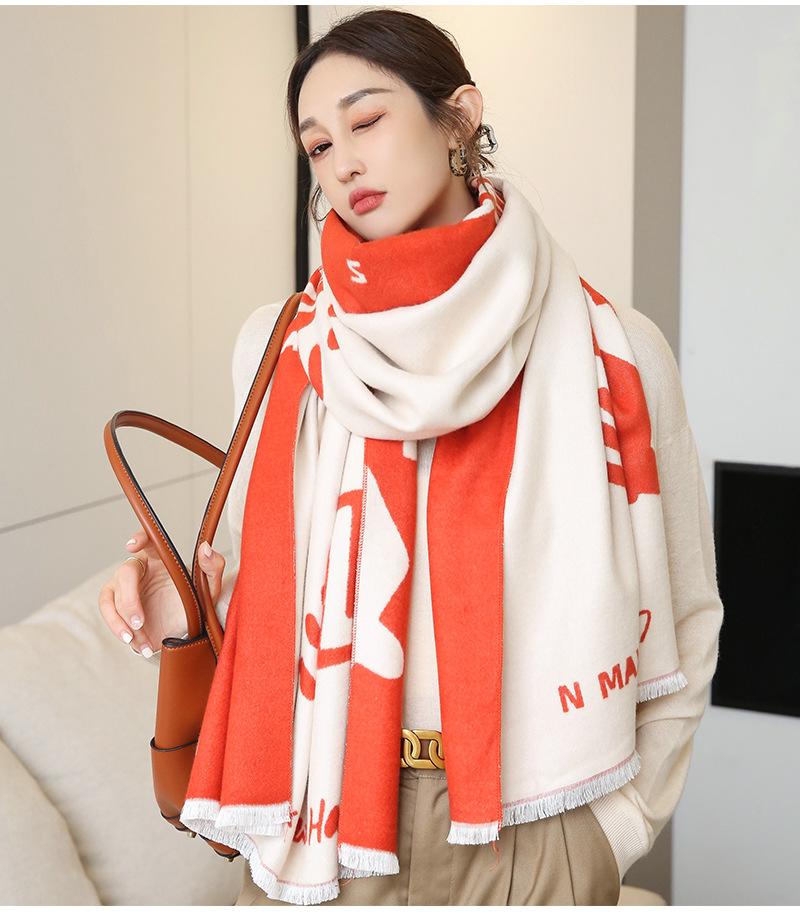 | Bufanda cálida nueva de otoño e invierno con letra H a juego de colores para mujer, chal largo grueso y cálido de doble cara de imitación de cachemira |