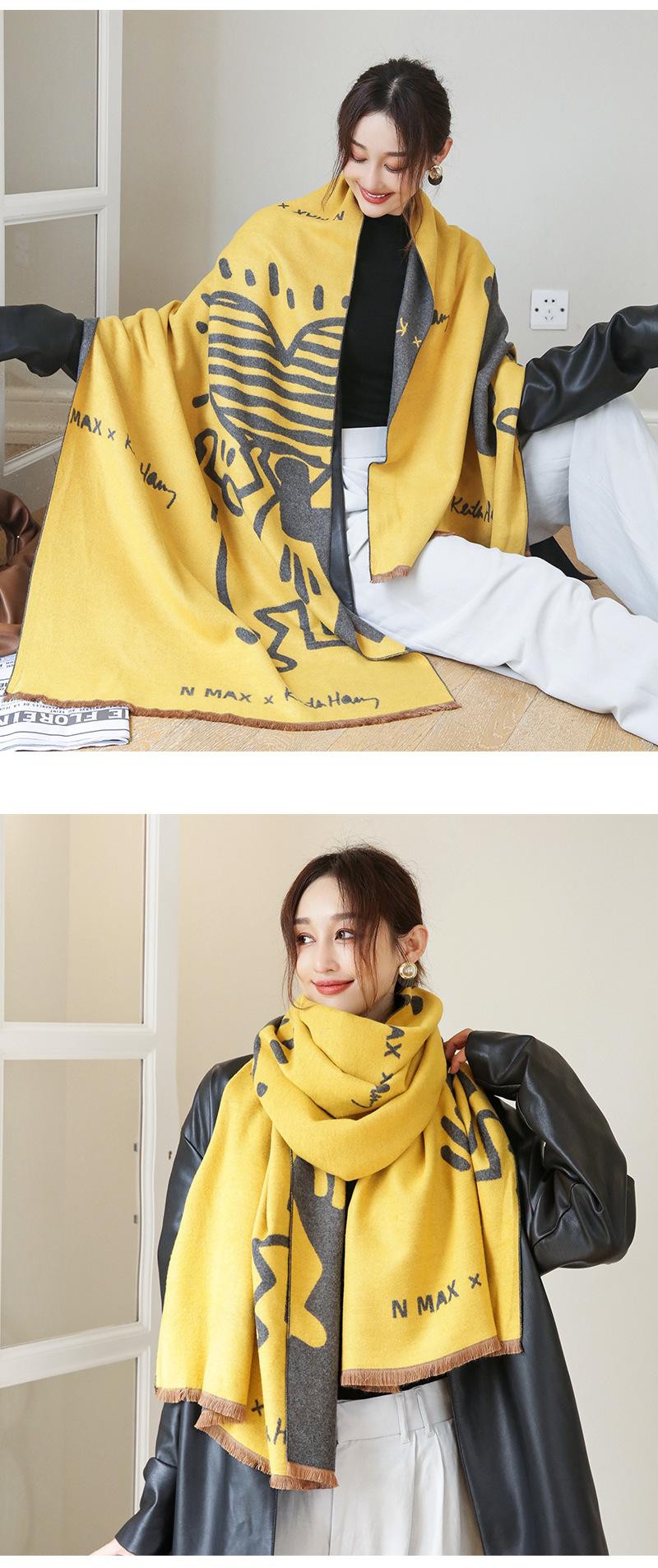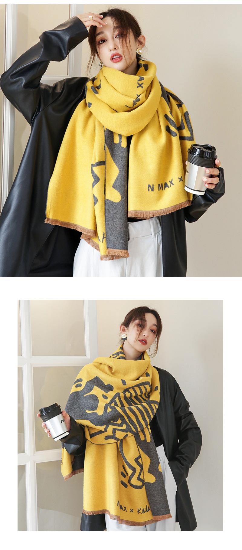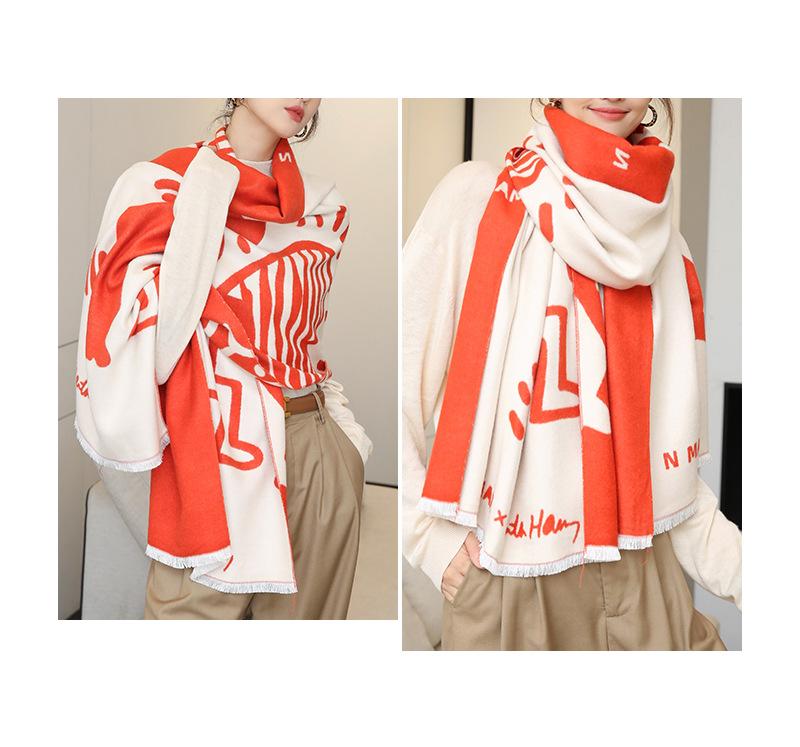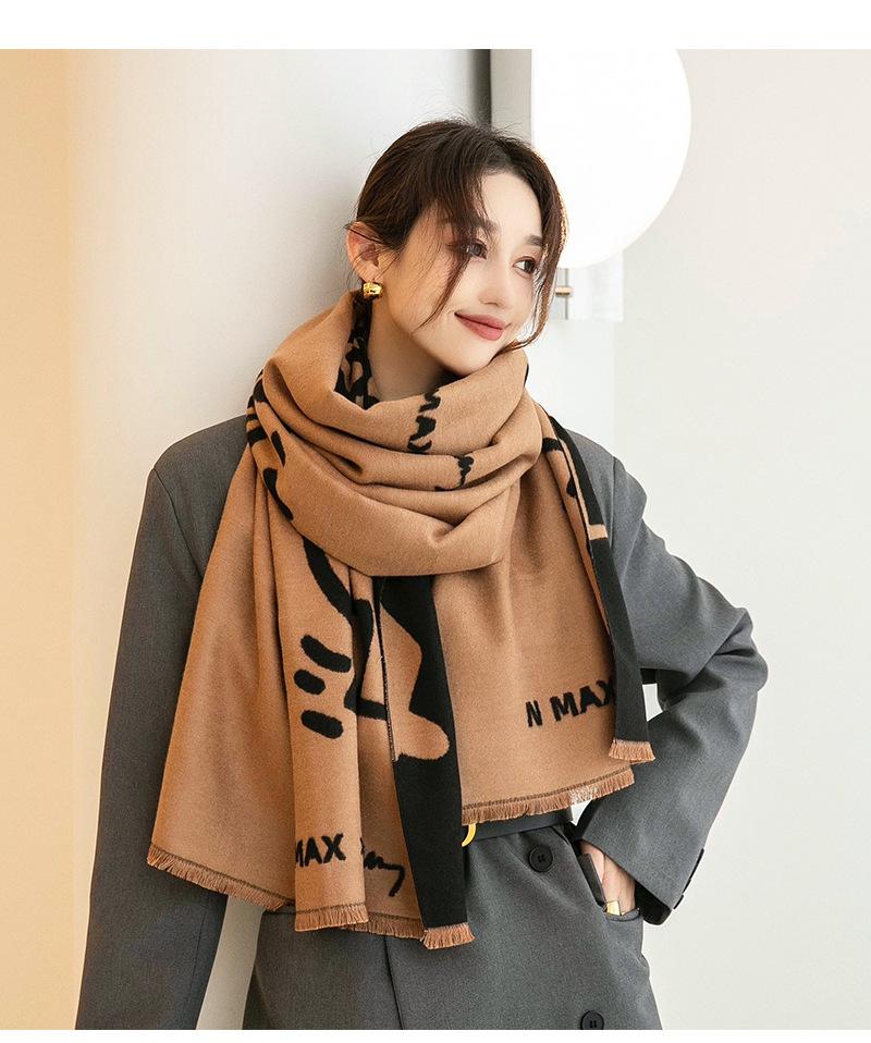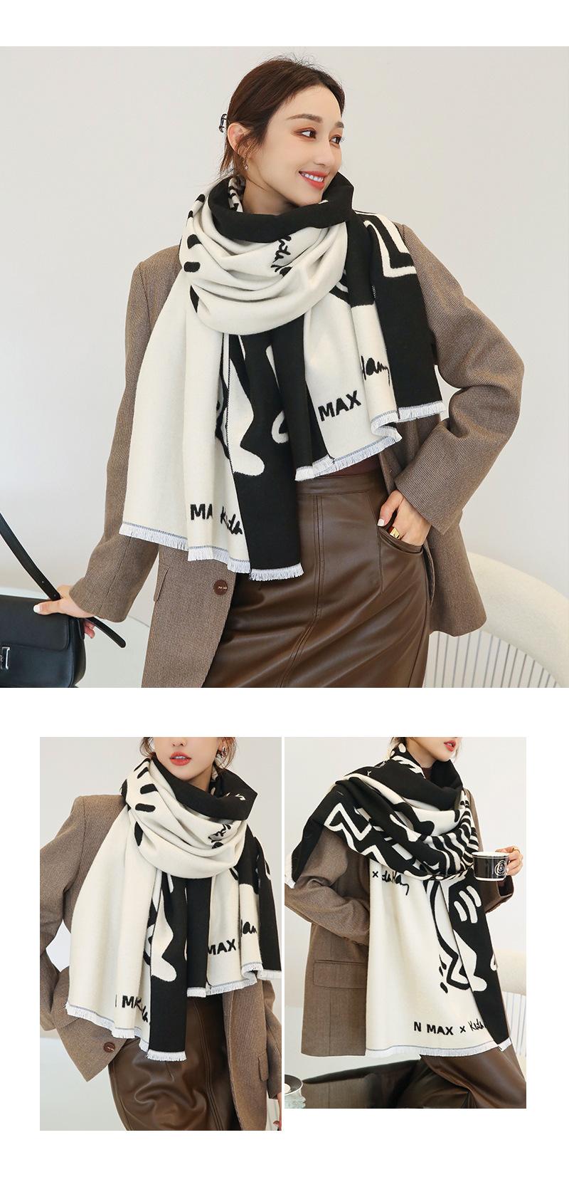 | Bufanda cálida nueva de otoño e invierno con letra H a juego de colores para mujer, chal largo grueso y cálido de doble cara de imitación de cachemira |